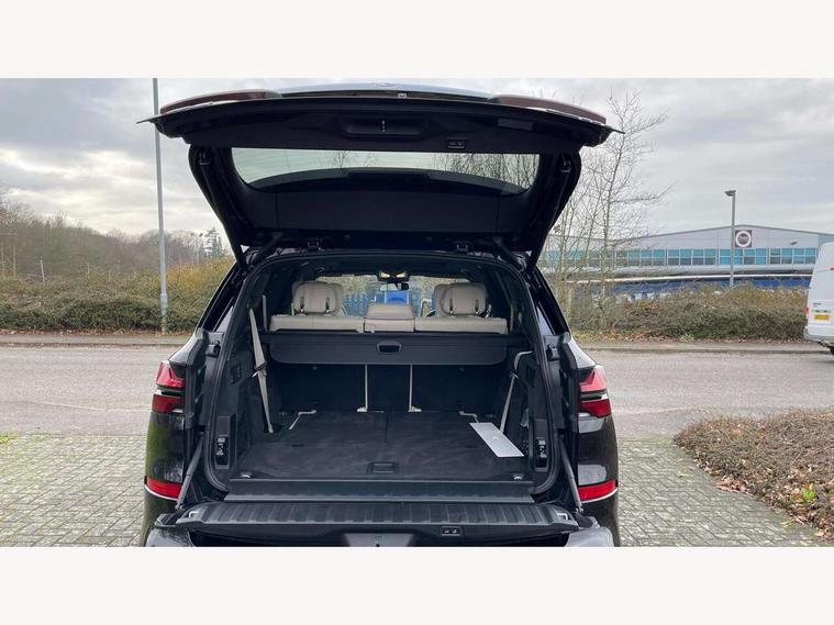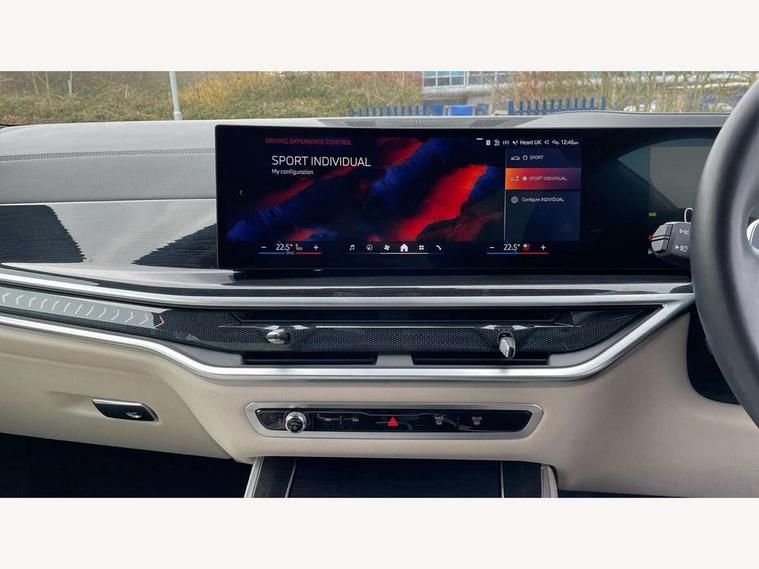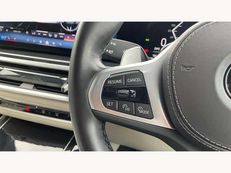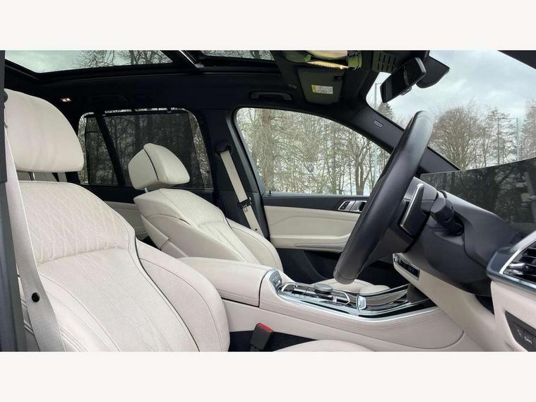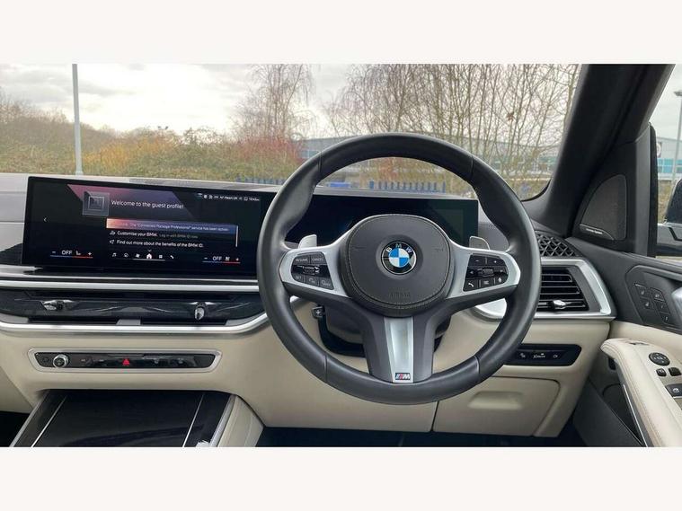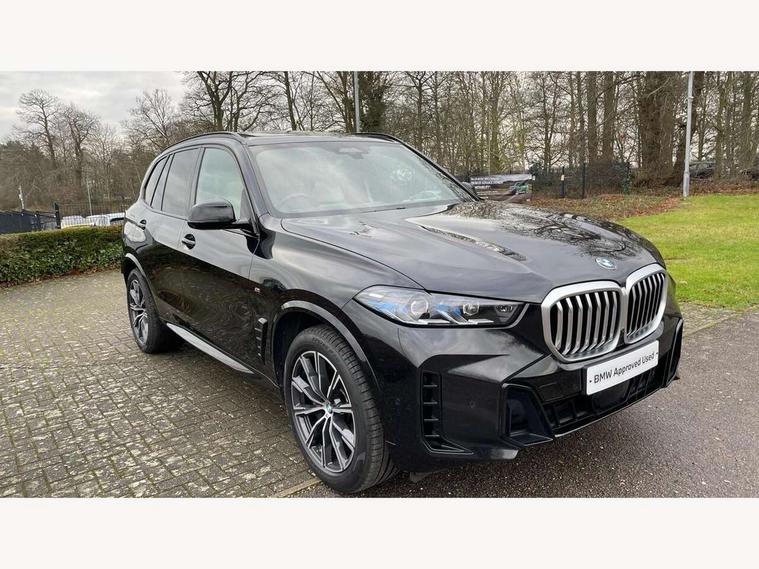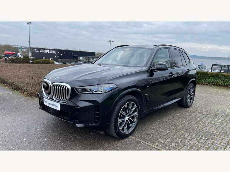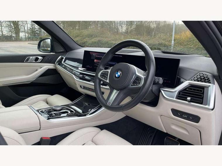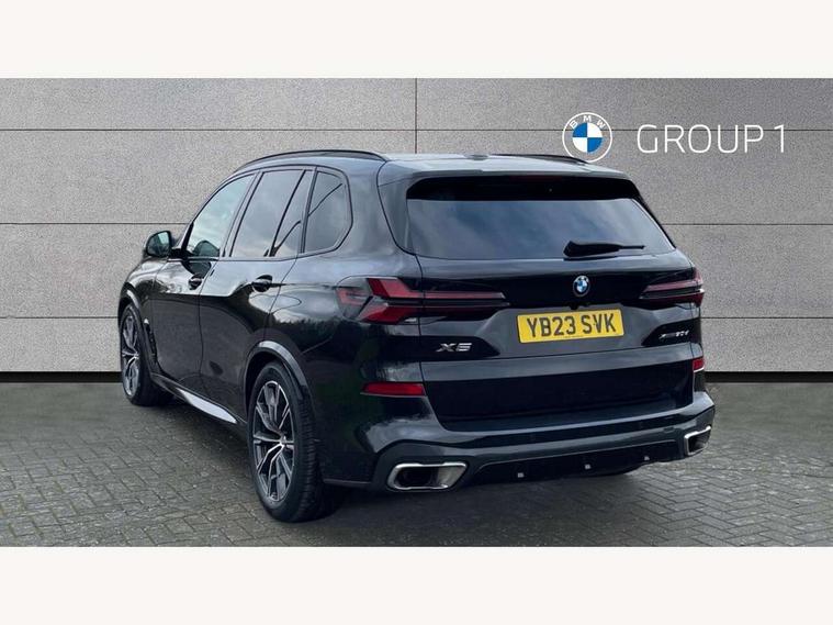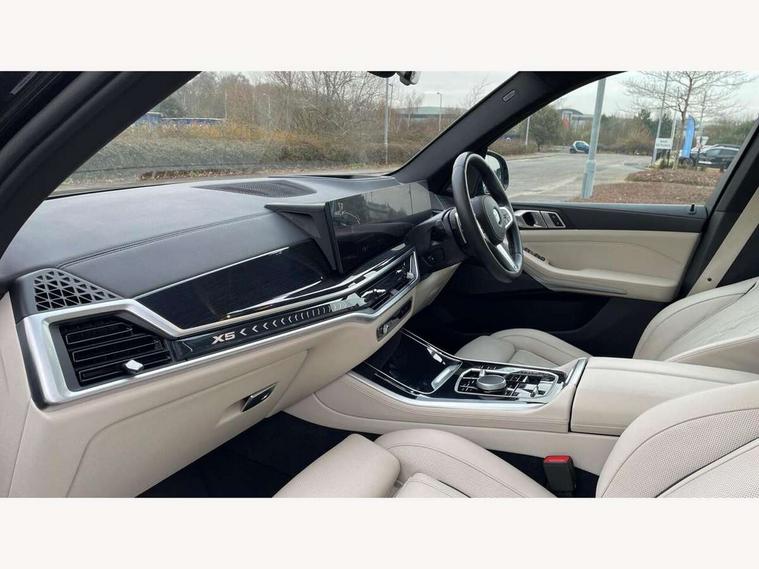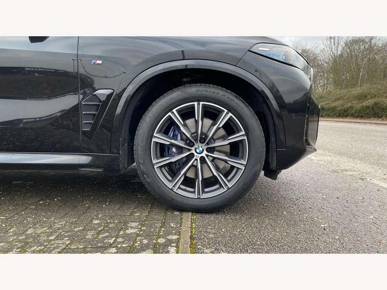 Attentiveness assist, Automatic tailgate operation, BMW ConnectedDrive online services, BMW live cockpit + with curved 12.3 instrument cluster/14.9 central display, nav/Tuner with diversity reception, RDS/4GLTE/remote software upgrade, BMW Recovery system, BMW Teleservices, Condition based service, Cruise control with brake assist, eCall emergency call system, Enhanced bluetooth with wireless charging, Integrated owner's handbook, PAS, Speed limiter, Wi-Fi hotspot, Drive performance control with ECO PRO comfort + sport mode, Eight speed steptronic sport automatic transmission and gearshift paddles on the steering wheel, Hi-Fi loudspeaker system, Adaptive LED Headlights, Front and rear electric windows, High beam assistant, High gloss black shadow line roof rails, LED daytime running lights, Rear side wing doors, Third brake light in rear spoiler, Variable intermittent rear wash/wipe, 12V - Power sockets with 2x centre console and 1x luggage compartment, 3 seat bench in 2nd row, Foldable rear centre armrest with 2 cupholders and storage compartment, Front and rear side armrest integrated into door trim, Headrests for all seats, Luggage compartment separating net, Single front passenger seat, Three spoke sport M leather steering wheel, Velour floormats, Ambient light interior pack - X5, Driving assistant pack with radar based driver assistance system - X5, Expanded exterior mirror pack - X5/X5 M, M aerodynamics pack - X5, 3 rear seatbelts, Active protection, Airbags - driver/front passenger, rear and side, first and second row seats head airbags, front passenger seat airbag deactivation + knee airbag, Anti-lock braking system (ABS), Automatic Stability Control (ASC), Brake energy regeneration, Cornering brake control (CBC), Crash sensor activating central locking release, hazard warning lights, fuel cut off, interior lighting + activation of safety battery terminal clamp, DSC - Dynamic Stability Control, Dynamic Traction Control - DTC, Electromechanical parking brake with automatic drive away release and auto hold function, Electronic brake force distribution, Hill start assistant, M Sport blue painted brake calipers with 'M' designation, Mechanical child proof lock on rear doors, Tyre pressure monitoring system, Tyre pressure sensors, Ventilated front and rear disc brakes, Warning triangle and first aid kit, Closing system with central locking, Comfort access system, Locking wheel bolts, Sensatec instrument panel,