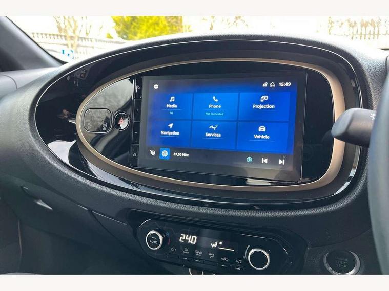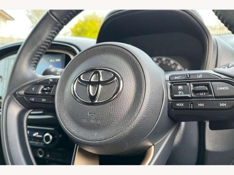 4.2" TFT colour screen, Adjustable speed limiter, Analogue speedometer, Bluetooth connectivity, Digital tachograph, Driver attention alert system, eCall emergency call system, ECO-driving indicator, Electric power steering, Front and rear parking sensors with auto brake, Intersection turn assist, Key reminder warning, Noise reduction kit, Pre collision system with emergency steering assist, Remote boot door release on key, Reversing camera with static guide lines, Smart entry and push button start, Speed limit display, Start and stop, Wireless charger, Wireless Smartphone Integration includes Apple CarPlay and Android auto, Vehicle Stability Control (VSC), 4 speakers, 9" HD multimedia display touch screen with Toyota smart connect, DAB digital audio broadcast, USB connector, Auto headlights, Auto wipers, Automatic headlights cut-off, Automatic high beam On/Off switch, Bicycle towing hook, Black fog light surrounds, Black side protection mouldings, Black wheel arch mouldings, Body colour door handles, Body coloured front bumper, Boot door scuff plate, Eclipse black rear bumper, Electric heated door mirrors, Follow me home headlights, Front and rear underruns in silver, Front fog lights, Front power windows, Gloss black door mirrors, Gloss black upper front grille, Headlight cut-off reminder, LED daytime running lights guide, LED front light guide, LED High mounted stop lamp, LED projector headlights, Manual day/night rear view mirror, Manual headlight levelling, Pagoda roof, Power adjustable door mirrors, Power back door, Privacy glass, Rain sensor, Rear combination lights LED bulb type, Rear side wing doors, Rear windscreen defogger, Rear windscreen wiper, Remote hazard lights system, Short antenna, Variable intermittent windscreen wipers, 12v power outlet - front, 2 seat bench in 2nd row, 3 spoke leather steering wheel, 50/50 split folding rear seat, Adhesive roof headlining, Adjustable speed limiter switch on steering wheel, Audio and telephone switches on steering wheel, Auto air conditioning, Black roof lining, Body colour satin anodised insert on steering wheel, Boot light, Centre room light, Chrome interior door handles, Chrome surround on air conditioning buttons, Clean air filter, Console box storage, Floor mats, Front and rear cup holders, Front head rest deco art, Front head restraints, Gear shift indicator, Height adjustable driver seat, Intelligent adaptive cruise control switch on steering wheel, ISOFIX child restraint system on rear seats, Lane departure alert switch on steering wheel, Leather gearshift knob, Light blue ambient lighting in centre console, Manual tilt steering wheel, Manually reclining and sliding driver seat, Manually reclining and sliding front passenger seat, Multimedia switches on steering wheel, Paddle shift levers on steering wheel, Partial synthetic leather upholstery, Pollen filter, Rear door pockets, Rear head restraints, Remote air-conditioning system, Satin silver insert on gear shift knob, Single compartment glovebox with lights, Single front passenger seat, Soft tonneau cover, Sun visors with mirror on driver and passenger side, Voice recognition switch on steering wheel, Toyota safety sense pack - Aygo X, Anti lock braking system + Electronic brake force distribution, Child safety door lock, Emergency brake light signal (EBS), Hill start assist control (HAC), Passenger airbag on/off switch, Seat belt reminder for front and rear seats, Supplement restraints system (SRS) - 6 airbags, Traction control, Tyre pressure warning system, Immobiliser, Remote power door locks, Black wheel centre caps, Tyre repair kit,