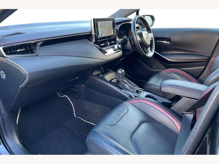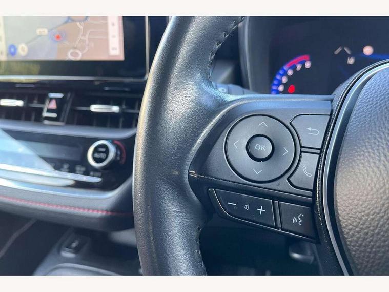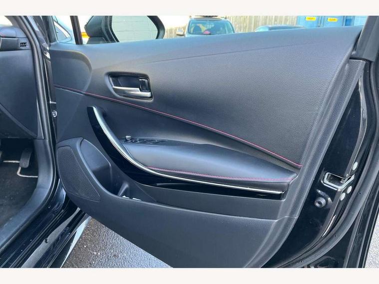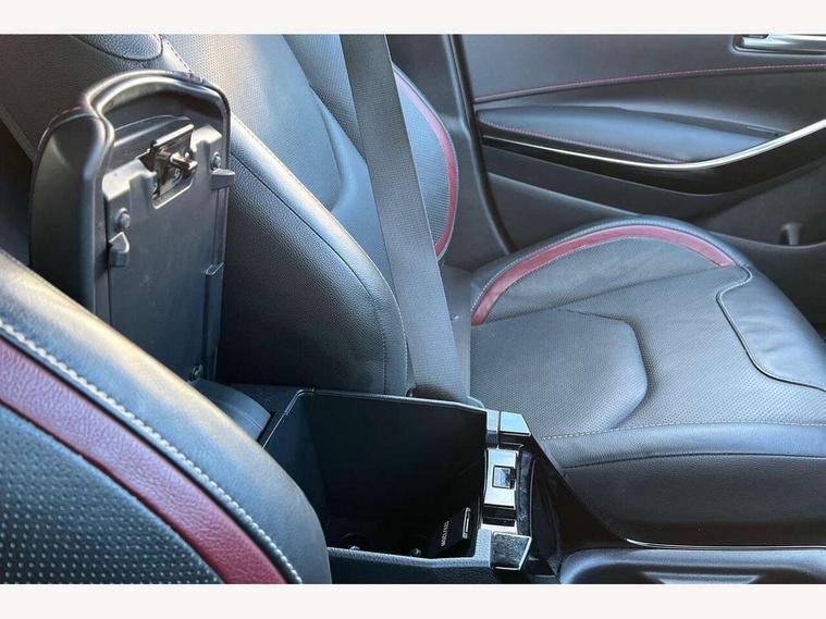 7" Multi information display screen, Bluetooth telephone connectivity, Connected car functionality upgrade, tracker, remote status and e-care, Dynamic radar cruise control (with RSA) including switch on steering wheel, E-call, Electrically assisted power steering, EV drive indicator, Intelligent park assist, Lane Departure Alert (LDA) switch on steering wheel, Memory on adjustable speed limiter, Push button start, Reversing camera, Smartphone integration with Apple CarPlay and Android auto, Gasoline particulate filter, Vehicle Stability Control (VSC), 6 speakers, 8" Touchscreen with MM19 Multimedia system and voice recognition, AM/FM radio, DAB Digital radio, Toyota touch 2 with go navigation system, USB and Aux in connectors + 12V front outlet, USB charging port in centre storage box, Anti-jam protection on power windows, Auto dimming inside rear view mirror, Auto up and down function on all power windows, Automatic folding mirrors, Automatic headlights with high beam assist, Bi-LED headlights with LED lightguide, Black toyota logo in front, Black window frames, Body colour rear spoiler, Body coloured bumpers, Body coloured door mirrors, Body coloured outside door handles, Follow me home headlights, LED daytime running lights, LED front fog lights, LED High mounted stop light, LED rear combi lights with LED lightguide, Power adjustable heated door mirrors, Power front windows, Power rear windows, Privacy glass, Rain sensing wipers, Rear bumper with chrome plated inserts, Rear side wing doors, Rear window defogger, Rear window wiper, Reverse tilting door mirrors, Satin chrome surround on lower front grille, Shark fin antenna, Time adjustment on intermittent wiper, Turning signal integrated indicators in door mirrors, Unique lower skirt, Unique side rocker with black insert, UV-filter on driver and passenger windows, 3 rear headrests, 3 seat bench in 2nd row, 3 spoke leather steering wheel + gear knob, 60/40 split folding rear seat, Adjustable speed limiter switch on steering wheel, Audio, multimedia and telephone switches on steering wheel, Blue ambient interior illumination to centre tray, front cup holders and front door trim, Boot light, Centre room light, Clean air filter, Driver and front passenger personal light, Driver and passenger assist grip, Driver and passenger seatback pockets, Driver and passenger sun visor with mirror and light, Dual zone automatic air conditioning with ECO mode switch, Front and rear cup and bottle holders, Front door pockets, Front head restraints, Front passenger seat, Full leather upholstery, Heated driver and front passenger seats, Illuminated entry system in room lamp, ISOFIX seat fixing (2 fixings on rear outer seats), Leather gear shift with satin chrome on gear shift console, Leather style armrests, Manual height adjustable for driver and front passenger seat, Paddle shifts, Parcel shelf, Pollen filter, Power adjustable lumbar support on driver seat, Power window switches with satin chrome inserts, Rear armrest with 2 cupholders, Rear passenger coat hooks (2), Satin chrome inside door handles, Shopping bag hooks in luggage compartment, Sliding armrest on centre console box, Slow opening glovebox with lights, Sports seats, Tilt/telescopic steering column, Voice recognition switch on steering wheel, Whiplash Injury Lessening (WIL) feature (active headrest) for seats, Parking pack - Corolla, Toyota safety sense 2 pack - Corolla, 3x3 point rear seatbelts, Adjustable driver and front passenger seat belt extender to top anchor point, Anti lock braking system + Electronic brake force distribution, Brake assist function, Child locks on rear doors, Downhill Assist Control (DAC), Electronic parking brake, Emergency brake light signal (EBS), Front passenger airbag on/off switch, Front seatbelt reminder, HAC-Hill-start Assist Control, Rear seat belt reminder, Seatbelt pretensioners and force limiters, Supplemental restraint system (SRS) 7 airbags - dual driver, dual side curtain, side impact and driver knee airbags, Traction control, Tyre pressure warning system, Acoustic vehicle alert system (AVAS), Alarm with motion sensor and immobilizer, Remote central locking + deadlocks, Smart entry, Satin chrome dash trim, Soft touch texture on uppder dashboard, Stitching on upper dashboard, Tyre repair kit, Unique wheel finish with red wheel cap,