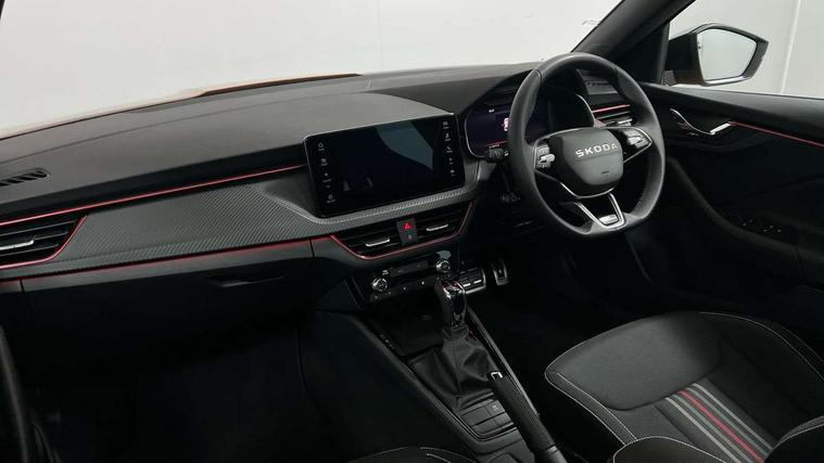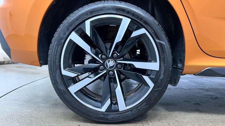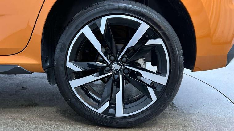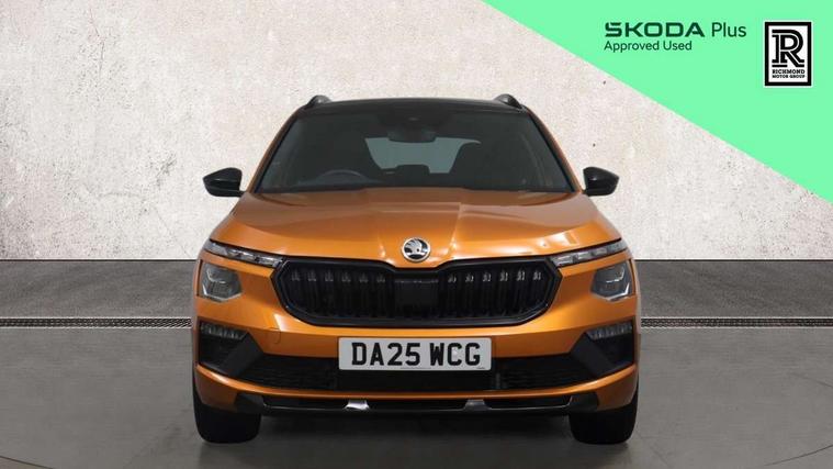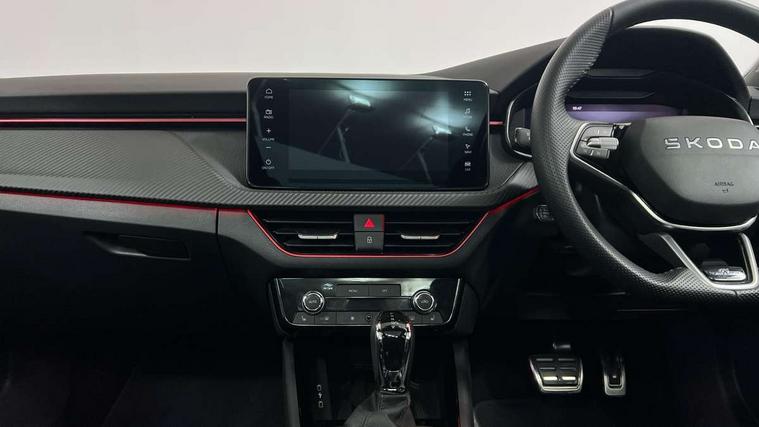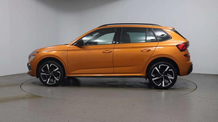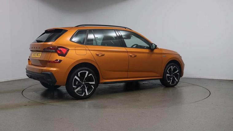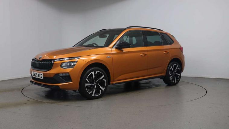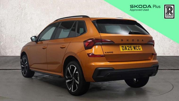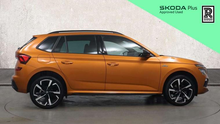 Advanced driver attention and drowsiness monitor, Bluetooth system, E-call, Front assist system, PAS, Rear parking sensors, Rear view camera, Service indicator, Speed limiter, Traffic sign recognition, Virtual cockpit with 10.25" display, Voice control system, Wireless smartlink, 4 USB C ports, 8 Speakers, 9.2" Skoda navigation display, DAB Digital radio, Auto dimming rear view mirror, Automatic headlight control with coming home and leaving home feature, Black door mirrors, Black radiator grille, Black rear diffuser, Black roof spoiler, Body colour bumpers, Body colour door handles, Boot lettering in black, Extended tailgate glass, Fixed panoramic sunroof with black roof rails, Front and rear electric windows, Heated rear window, LED daytime running lights, LED high beam, LED low beam, LED third brake light, Light sensors, Monte carlo plaque, Privacy glass, Rear side wing doors, Rear wiper, Ticket holder inside windscreen, 12V socket in luggage compartment, 3 seat bench in 2nd row, Aluminium pedals, Ambient lighting in white/red, Art leather carbon decor inserts, Art leather carbon door inserts, Black roof lining, Cargo elements, Chrome inner door handles, Driver and passenger sun visors with vanity mirror, Dual zone climate control, Front and rear roof lights, Front centre armrest, Front head restraints, Glove compartment with illumination, Height adjustable driver seat, Height adjustable front passenger seat, Ice scraper, Inner circulation control with pollen filter, ISOFIX on front passenger seat, Isofix preparation for back seats, Leather gearknob and handbrake lever, Manual lumbar support for front seats, Monte Carlo cloth upholstery, Net package and top tether hooks in boot space, Net under rear shelf, Pocket on the back of both front seats include mobile phone pockets, Rake/reach adjustable steering wheel, Reading lights, Rear centre armrests, Red hotstamping, Single front passenger seat, Sports seats, Textile floor mats, Third rear headrest, Top tether for front passenger seat, Umbrella in driver's door, Light and view plus package - Kamiq, 3x3 point rear seatbelts, Airbags - driver and front passenger, Disc brakes, ESP, Extended and predictive pedestrian/cyclist protection, Front passenger airbag deactivation switch, Front side airbags with curtain airbags, Hill hold control, Manual leather parking brake, Manual rear child locks, One tone horn, Seatbelt reminder for driver an co-driver, Traction control, Tyre pressure monitor, Anti-theft alarm system with interior monitoring, backup horn, towing protection and remote central locking with SAFE system, Anti-theft wheel bolts, Electronic engine immobilizer, 18" Ursa black diamond cut alloy wheels,