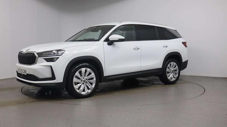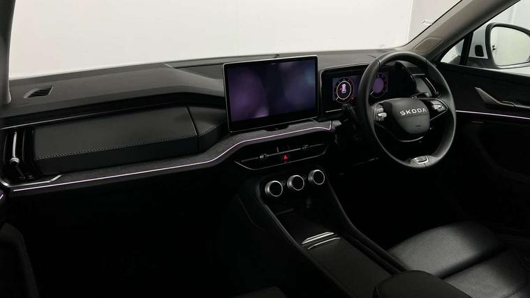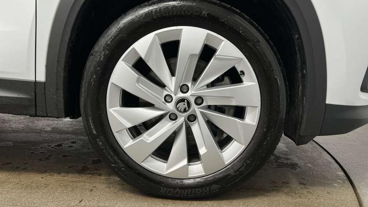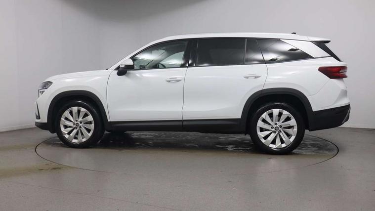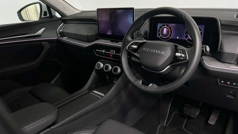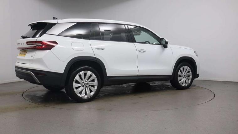 13" satellite navigation touchscreen display, Blind spot detection with door exit warning, Bluetooth system, ChatGPT functionality, Driver alert - Fatigue and drowsiness monitor, Dry display cleaner, Emergency call, Front and rear parking sensors, Front cross traffic assist, Lane assist, PAS, Rear traffic assist, Tailgate unlocking from outside, Traffic sign recognition, USB C Port x 2 in front centre console, Virtual Cockpit - 10.25" digital display, Voice control system, Wireless charging for two smartphones (15W) with cooling function, Wireless SmartLink for Apple CarPlay and Android Auto, Stop/start function, 2x USB-C in the rear, DAB Digital radio, Aero front windscreen wipers with intermittent function, Auto dimming rear view mirror, AWL (all weather lighting) and all weather light with cornering function, Black wheel arch surrounds, Body colour bumpers, Body colour door mirrors and handles, Cornering light and poor weather light, Electric folding /adjustable/separted heated/folding door mirrors, auto dimming with boarding sports and memory function, Electric front and rear windows, Exterior black decorative trims, Heat insulating glass in windshield, Heated rear window, Ice scraper in fuel tank cap, Invisible tailpipe, LED daytime running lights, LED third brake light in rear spoiler, Light assistant with automatic headlight control and coming home feature, Logo projection in door mirrors, Privacy glass, Rear roof spoiler, Rear side wing doors, Rear window wiper, Red decorative strip between rear LED lights, Safety reflectors on front and rear doors, Unique dark chrome design logo on alloy wheels, Window control switches with black trim, Windscreen wipers with rain sensor, Without engine designation, 1.5l bottle holder points in all door, 1x centre rear reading light, 2 seat bench in 3rd row, 3 configurable smart dials with 32mm coloured display, 3 seat bench in 2nd row, 4 foldable roof handles with rear coat hooks, Ambient interior lighting - Dashboard, front-door stowage compartments, front and rear door panels and footwell lighting, Automatic gear selector on steering column, Chrome interior door handles, Driver/front passenger reading lights, Fabric headlining, Fixed bench 40:60:40 split folding backrests, Front and rear floor mats, Front centre armrest with jumbo box storage compartment, cup holder and 12V socket, Height adjustable front headrests, Isofix child seat fittings in outer middle row rear seats and front passenger with top tether, Manually adjustable steering column, Pollen filter, Rear centre armrest with cupholders, Rear seat boot backrest release, Single front passenger seat, Skoda lettering on steering wheel, Storage pocket including mobile phone pockets on the backs of the front seats, Sunvisors with illuminated vanity mirrors, Three rear height adjustable headrests, Ticket holder on A Pillar, Tri zone climate control, Umbrella in door panel x1 made from sustainable materials, Upper and lower glovebox with card holder and coin compartment, USB C port by rear view mirror for charging only (15W), Exterior styling pack - Kodiaq, Auto door release and activation of warning lights in the event of an accident, Driver and front passenger airbag with knee airbag and front passenger airbag deactivation, Electric child locks, Electronic parking brake, ESC (incl. ABS+EMD+MSR+ASR+EDL+HBA+DSR+RBS+ESBS+MCB+TSA+XDS), Front assist with braking reaction to vehicles, pedestrians and cyclists, Front disc brakes, Fuel cut off safety device, Height adjustable front 3 point seatbelts + pretensioners, Hill hold assist, Junction assist with automatic emergency braking, Rear disc brakes, Safety vest holder in door, Seat belt reminder for all seats, Three point rear seat belts, Two tone horn, Tyre pressure monitor, Anti-theft wheel bolts, Immobiliser, Remote central locking with 2 keys,