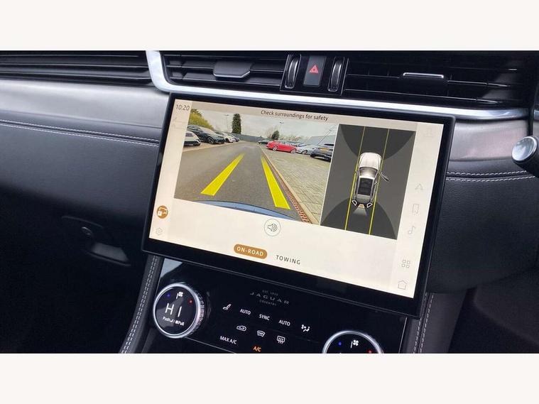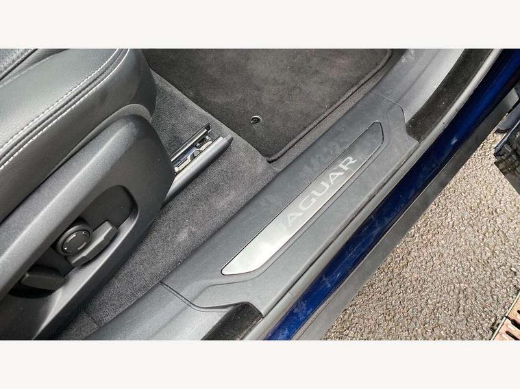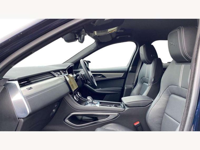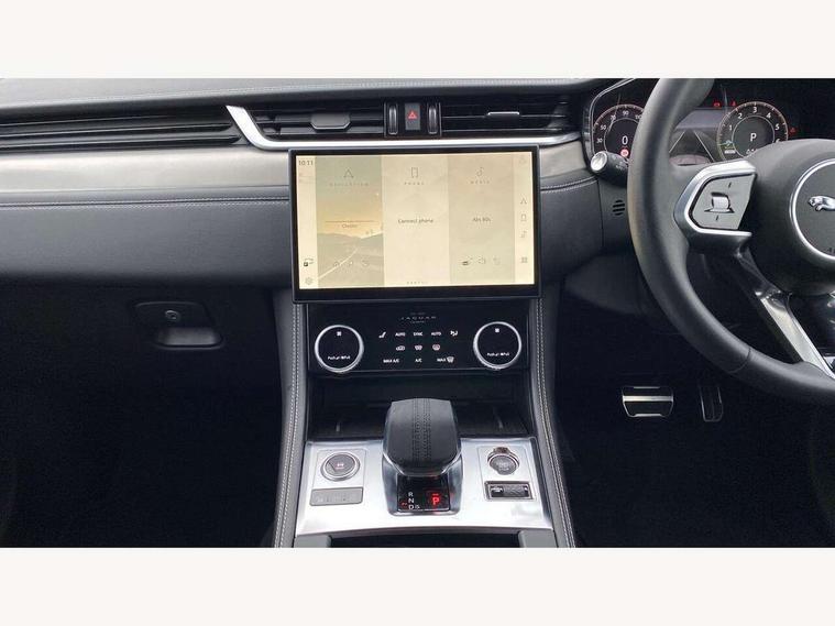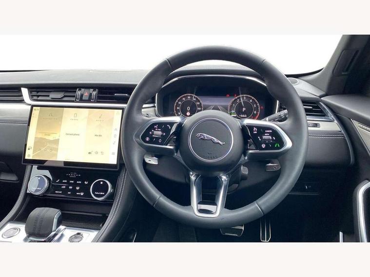 11.4" touchscreen, Android Auto, Apple car play, Blind spot assist, Bluetooth connectivity, Clear exit monitor, Driver alert system, Driver condition monitor, eCall emergency call system, Eco driving style assistant, Electric power assisted steering, InControl remote, Interactive driver display digital with 12" TFT display, Jaguar Toggle shift selector, Lane departure warning system, Lane keep assist, Outside temperature gauge, Personalisation profile management, Pivi pro connected navigation system with app interface and media storage, Pro services and wifi hotspot, Push button starter, Rear traffic monitor, Service interval indicator, Speed proportional steering, Start up sequence with movement in dials and lighting, Traffic sign recognition with adaptive speed limiter, Trip computer, Voice control system, Wireless device charging, 7 kW onboard charger, 8 speed automatic transmission, AC/DC charging, Adaptive dynamics, All terrain progress control, All Wheel Drive (AWD), Configurable dynamics, Home charging cable, Open differential with torque vectoring by braking, Public charging cable, AM/FM radio, Bluetooth streaming, DAB Radio (Digital Audio Broadcasting), Dynamic volume control, InControl apps, InControl protect, iPod integration, 3 flash lane change indicators, AHBA and animated directional indicators, Approach Illumination, Auto dimming rear view mirror, Automatic headlights, Electric heated/power fold memory door mirrors with approach lights and auto dimming driver side, Electric windows with one touch open/close and anti trap, F-Pace and R Dynamic badge, Green tinted glass, Heated front windscreen + heated washer jets, Heated rear window with timer, Jaguar script and leaper, LED High level third brake light, LED tail lights, Metal load space scuff plates, Non acoustic front windscreen, P400e AWD badge, Privacy glass (rear side windows and rear screen), R Dynamic badge on side door, Rain sensor windscreen wipers, Rear fog lights, Rear metal tread plates, Rear side wing doors, Rear wiper, Trailer stability assist, Variable front intermittent wipers, 12V power point front, 3 rear headrests, 3 seat bench in 2nd row, Additional power sockets - Two additional USB sockets in rear centre console and one 12V socket in trunk, Air distribution speed, Bright metal foot pedals, Centre armrest console, Centre console with side storage, Configurable cabin lighting, Deletion loadspace storage rails, Door sill tread plates, Fold flat front seats, Front centre armrest with storage compartment, Front door storage space, Glovebox finisher with jaguar script, Heated steering wheel, Hooks in loadspace, Illuminated glovebox, Interior front door handles with separate locking switches, ISOFIX on outer rear seats, Jaguar sense, Leather steering wheel, Luggage tie downs in loadspace, Mist sensing, Multifunction steering wheel, Overhead lighting console, Overhead stowage for sunglasses, Passive front head restraints, Premium carpet mats, Rear air vents, Rear armrest with twin cupholders, Rear centre headrest, Rear door storage space, Reversible boot floor, Satin chrome gearshift paddles, Shopping bag hook, Single front passenger seat, Sunvisors with illuminated vanity mirrors, Twin front cupholders with cover, Online Pack with data plan - F-Pace, 380mm front brakes and 325mm rear brakes, 3x3 point rear seatbelts, ABS, All surface progress control (ASPC), Brake pad warning light, DSC - Dynamic Stability Control, Electric parking brake (EPB), Emergency brake assist, Front airbags with passenger seat occupant detector, Front and rear seatbelt reminder, Front side airbags, Full length side window curtain airbag, Hill launch assist, Power operated child locks, Traction control, Tyre pressure monitoring system, Immobiliser, Keyless entry, Keyless Start, Locking wheel nuts, Perimeter alarm, Remote central locking, Valet mode,