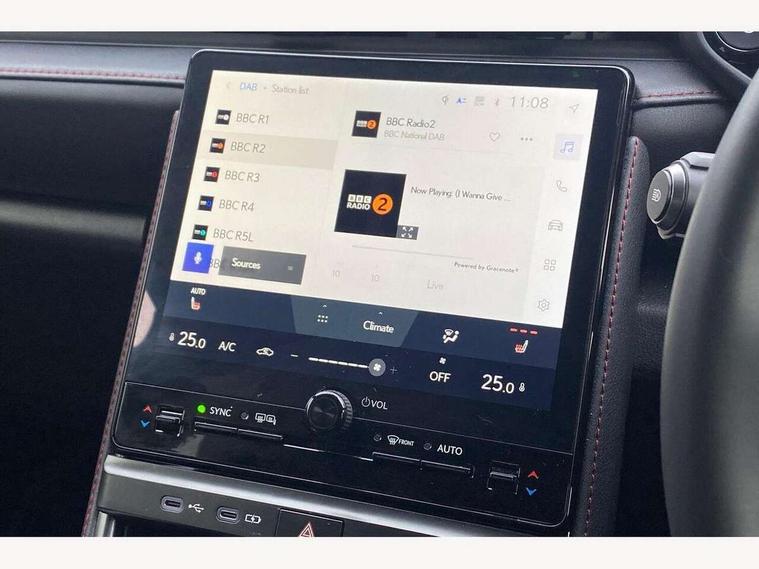 12.3" Digital instrument binnacle, Bluetooth connectivity, Cloud navigation, e-Call (emergency call), Electric power steering, Extended Lexus safety system+ 3 includes blind spot monitor, safe exit assist, camera washer and rear cross traffic alert, Front and rear parking sensors with intelligent clearance sensor, Front and rear smart entry, Head up Display, Lane change flasher function, Lexus link connected services, Lexus safety systems+ 3 includes dynamic radar cruise control, pre collision system day and night, lane tracing assist, road sign assist, Pre-collision system with driver monitor, Push button start, Rear view camera, Tailgate, Wireless Apple CarPlay and wired Android Auto, Wireless Smartphone charger, Vehicle dynamic integrated management (VDIM), 1 USB (Type-C) charging ports in bottom of the instrument panel, 1 USB (Type-C) multimedia communication ports in bottom of the instrument panel, 1 USB (Type-C) ports inside front console box, 6 speaker audio system, AM/FM and DAB radio, Lexus Link Connect with 9.8" Touchscreen, Rear side monitor, Auto dimming interior rear view mirror, Auto headlights, Black wheel arches, Electric adjustable/heated/auto folding door mirrors, Front and rear electric windows, Full body colour bumpers, LED 3rd brake light, LED daytime running lights, LED rear lights, Power back door without kick function, Privacy UV glass, rear doors and tailgate, Rain sensing wipers, Rear side wing doors, Rear wiper, Single bulb LED headlights with auto high beam, Wet arm wipers, 12V accessory connector in front console box, 3 bench rear seats in 2nd row, 3 rear headrests, 6 way manually adjustable front seats, 60/40 split folding rear seat, Aluminium scuff plates, Armrest with sliding cup holder, Centre armrest with storage, Cup holder in centre console, Driver and passenger door pocket, Driver's lumbar support, Dual zone automatic air conditioning, Front headrests, Glovebox, Heated front seats, Illuminated entry system (cabin, footwell, console and door handles), Nanoe-X Technology, Single colour ambient lighting, Single passenger seat, Storage tray under audio panel and lower tray, Synthetic leather gear lever, Synthetic leather steering wheel, Touch Sensor Buttons on Steering Wheel, Tsuyasumi interior ornamentaion, Under deck storage, 2 x Isofix child rear seat restraints, 3 point ELR (Emergency Locking Retractor) front seat belt with pretensioners, 3x3 point rear seat belts, ABS, Adjustable seatbelt anchor points, Driver and front passenger side airbags, Driver and front passenger single stage airbags, Driver knee airbag, E-Latch electric door release, Electronic parking brake, ESP, Front and rear curtain shield airbags, Front centre airbag, Manual rear child locks, Passenger airbag cut-off switch, Tyre pressure monitoring system, Alarm/anti-theft (with siren and 2 sensors), Engine immobiliser, Thatcham approved locking wheel nuts, Two motion door lock with double lock, VIN etching, Tyre repair kit,