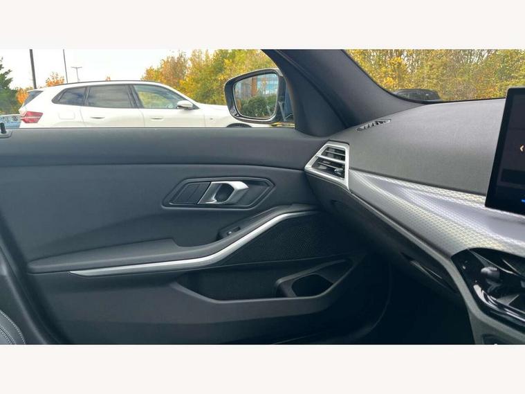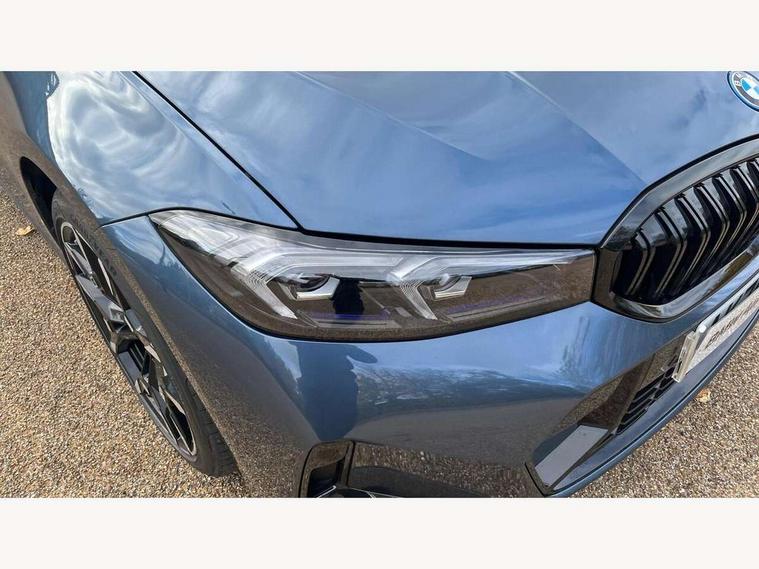 Active guard plus, Attentiveness assist, Automatic Start/stop button, Bluetooth Wi-Fi interface, BMW iDrive, BMW Teleservices, ConnectedDrive Services - last state call, Intelligent voice assist, 2 USB, 4G LTE connect, Live cockpit plus with Navigation + 12.3" instrument display + 14.9" display, Intelligent voice assist, 2 USB, 4G LTE connect, Oil sensor for level and grade, Personal e-SIM, Shifting point display, Double joint spring strut front axle, Fuel tank breather system, Plug and charge, Public mode 3 professional fast charging cable with 5m length, Steptronic Sport automatic transmission with steering wheel mounted gearshift paddles launch control and xtreme drive lever control, DAB tuner, 3rd brake light, Auto dimming rear view mirror, Automatic headlight beam throw control with load dependent regulating reaction, dynamic compensation of braking dive and acceleration squat, Bi-LED Low and high beam headlights, BMW emblem, engine compartment lid and tailgate, Body colour roof fin, Door sill strips, Electric windows - front and rear, with open/close fingertip control, anti-trap facility and comfort closing, Fading support, Follow me home headlight function, Front and rear bumper system with replaceable deformation elements, Front apron plastic in body colour, Fuel filler flap - right rear in body colour, Heat protection glazing on front windows and windscreen, High gloss chrome kidney frame with high gloss black kidney struts, LED daytime running lights, LED rear lights, LED turn indicator, Licence plate panel integrated into front bumper and tailgate, M high gloss shadow line exterior trim, Matt black B-pillar finsher, Matt black window recess cover, Model designation on right side of tailgate, One piece front bumper cover including towing eye cover in body colour, Rain sensor with automatic headlight activation, Rear boot, Rear side wing doors, Reversing lights, Side frame decorative moulding black matt, Trailer stabilisation logic, Visible exhaust tailpipe finisher, Welcome lights in interior and door handle area, Windscreen washer jets, 12V power socket in front storage compartment, 2 front cupholder in centre console with clamping elements and matt black inlay, 3 seat bench in 2nd row, 3 spoke M Sport multifunction flat bottom leather steering wheel, 3 zone automatic air conditioning, 40:20:40 split folding rear seat with loading system, Anthracite headlining, Armrest integrated in front and rear door trim + front centre console armrest, Battery in luggage compartment, BMW ID, Cruise control operation in steering wheel, Driving experience mode switch, Folding rear centre armrest with 2 cupholders, Front and rear headrests, Front and rear velour floor mats, Front reading light, Heated front seats, Height adjustable mechanically and infinitely variable steering column, Illuminated armrest storage compartment, Illuminated glove compartment, Illuminated luggage compartment, Lashing eyelets in luggage compartment, Single front passenger seat, Sunvisors with illuminated vanity mirrors and ticket pocket, Through load system, Toolkit located in luggage compartment, Connected pack professional - 3 Series Saloon/Touring, Interior and exterior mirror pack - 3 Series Touring/Saloon, M sport exterior styling pack - 3 Series Saloon/Touring, Parking assistant pack - 3 Series, 3x3 point rear seatbelts, ABS, Automatic Stability Control (ASC), BMW emergency call, Child locks on rear doors, Cornering brake control, Crash sensor activating of airbags, Unlocking doors, hazard warning lights, interior light, safety battery terminal, Drive-off assistant, Driver and front passenger with seat occupancy detection for driver's and passenger side, Driver and passenger side airbags, body protection at side and airbags deploy from seat backrests, Dry braking, DSC - Dynamic Stability Control, Dynamic brake control, Dynamic Traction Control - DTC, Electric parking brake including automatic hold function and automatic release of the parking brake when driving off, Electronic differential lock control (EDLC), Front airbag deactivation, Front airbags for driver and front passenger, Head airbags in 1st and 2nd row, head protection at side, curtain airbags open from headliner above 1st and 2nd row, Plastic fuel tank, Side impact protection, Tyre pressure sensors, Ventilated front and rear disc brakes, Warning triangle and first aid kit, Alarm system, Centre lock switch, Closing system with central locking, Electronic vehicle immobiliser, Locking wheel bolts, Tyre repair kit,
