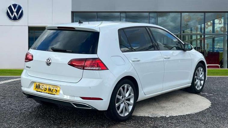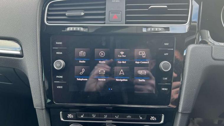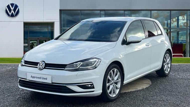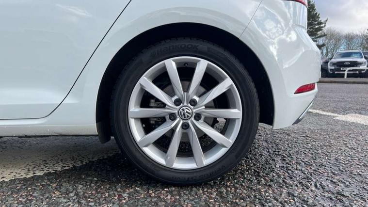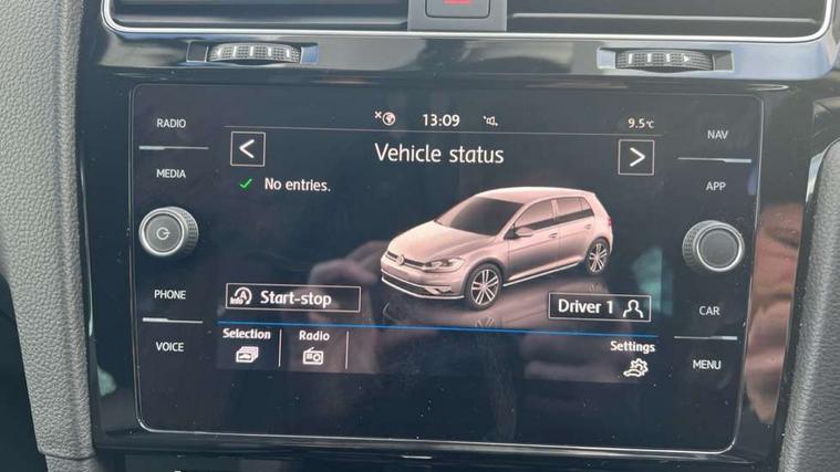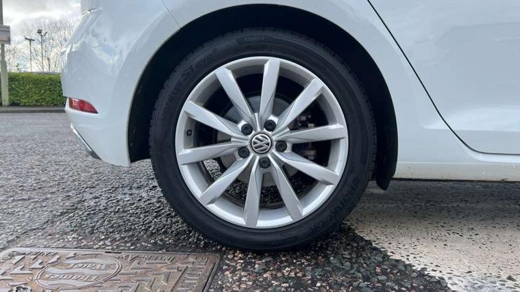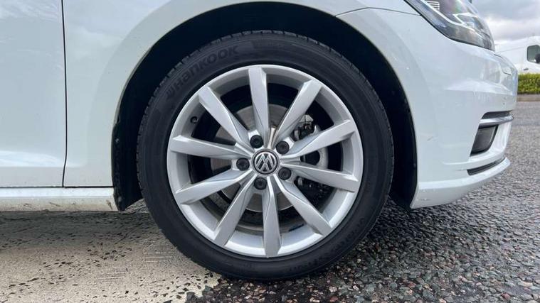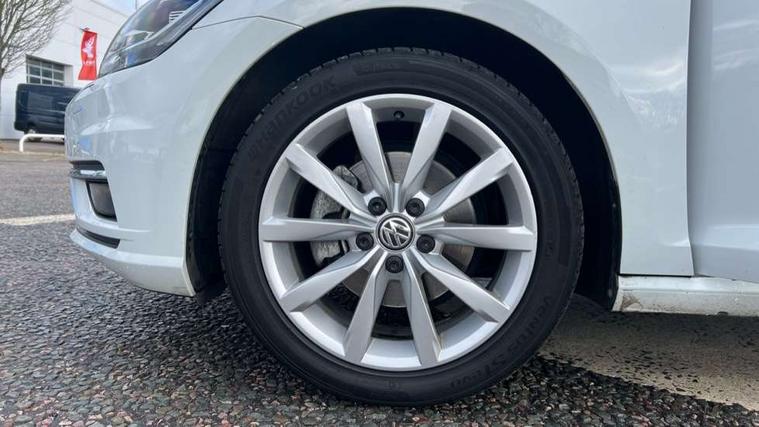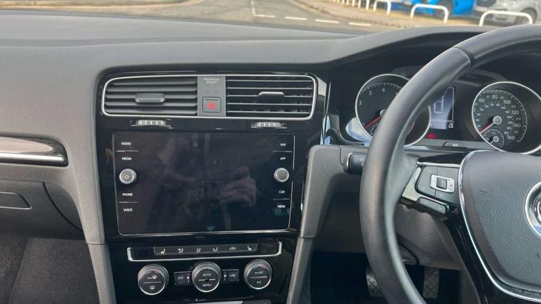 'Lights On' Reminder warning buzzer, ACC - Adaptive cruise control with front assist, forward collision warning, distance monitoring, city emergency brake and speed limiter, Bluetooth telephone and audio connection for compatible devices, Brake pad wear indicator warning light, Driver alert system, Driving Mode Selection with four preset modes - Eco, normal, sport or individual modes, Multifunction computer with visual gear change recommendation for fuel consumption, Power assisted speed sensitive electro-mechanical steering, Push tank flap, Speed limit display, Speedo, rev counter, electronic odometer, trip, service interval display, exterior temperature and fuel gauge, Stop/start system, Think blue trainer driver tips and journey analysis, Warning buzzer and light for front seatbelts unfastened, Battery regeneration during braking, XDS electronic differential lock, Composition media system, DAB Digital radio receiver, Driver Personalisation profile selection, MP3/WMA compatability, Multi device interface (MDI) via USB connection, Premium USB cable in choice of either Apple or Android smartphone compatibility, SMS Functionality, Title and cover art display, USB and SD card connectivity, Volkswagen media control, Black front air intake and radiator grille with chrome insert, Black rear diffuser, Body colour bumpers, Body colour door handles, Body colour door mirrors with integrated indicators, Chrome trimmed front air intake surrounds, Dusk sensor + automatic driving lights, Electric front windows, Electric rear windows, Electrically adjustable and heated door mirrors, Fully galvanised body, Heated rear windscreen, High level 3rd brake light incorporating LED Technology, LED front fog lights with static cornering light function, Range adjustable headlights via infotainment system with LED daytime running lights, Rear fog lamp, Rear number plate lights incorporating LED technology, Rear tinted glass 65% light absorbing from B pillar backwards, Rear window aerial, Rear window wash/wipe with intermittent wipe, Reflectors in all doors, Tailgate with integrated rear roof spoiler, Windscreen wipers/ intermittent wipe + 4 position delay, 12V socket in luggage compartment, 3 rear headrests, 4 load lashing points in luggage compartment, 60/40 split folding rear seat backrest, Bag hook in luggage compartment x 2, Climate control - 2 zone electronic air conditioning with automatic air recirculation and allergy filter, Cooled glovebox, Cover for storage compartment in centre, Dust/pollen filter, Front + rear carpet mats, Front centre armrest with storage compartment and two rear air vents, Front seat back storage pockets, Grab handles front x 2, rear x 2 with integrated coat hooks, Height and reach adjustable steering wheel, Illuminated vanity mirrors, Instrument lighting white adjustable panel illumination, Interior light delay, Isofix preparation for 2 rear child seats, Load through provision with rear centre armrest and cupholders x2, Luggage compartment lighting, Overhead storage box, Pearl grey headlining, Storage box in luggage compartment, Storage compartment in roof console with cover, Storage compartments in centre console, Storage compartments in front doors, Storage compartments in rear doors, Stowable luggage compartment cover, Sun visors, Variable boot floor, height adjustable and removable, Ambient lighting pack - Golf, Convenience Pack - Golf, Mirror pack - Golf, Winter pack - Golf, 3 rear three point seatbelts, Airbags - Driver's and front passenger's, curtain airbag, Driver's knee, front side impact and passenger's airbag deactivation switch, Anti-lock Braking System (ABS) with Hydraulic Brake Assist (HBA), Automatic post collision braking system, Child locks on rear doors, Driver/Passenger optimised head restraints, Electronic parking brake with auto hold, Electronic stability control (ESC) including Electronic differential lock (EDL) and ASR (Traction control) with deactivation via infotainment system, Front ventilated disc brakes and rear disc brakes, Pre crash preventive occupant protection, Three point height adjustable front seatbelts with tensioners, Tyre pressure loss indicator, Alarm with interior protection and deactivation via infotainment system, Electronic engine immobiliser, Chrome plated air vent surround, Chrome plated electric mirror adjustment switch surround, Chrome-plated light switch surround, Piano black decorative inserts in centre console, Tumbler decorative inserts, Steel space saver spare wheel,