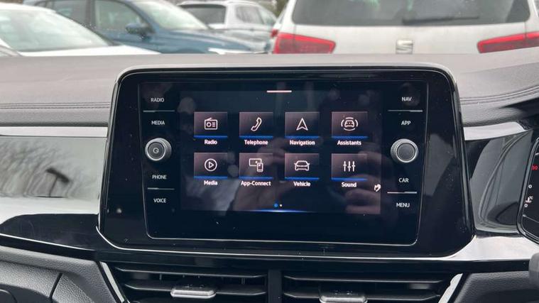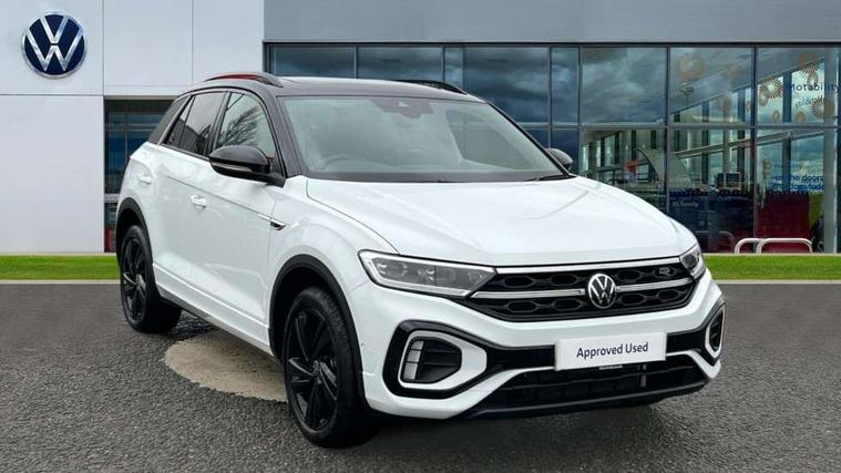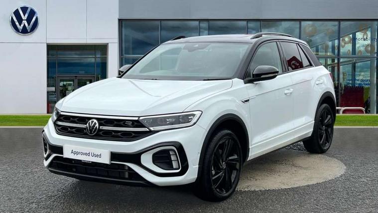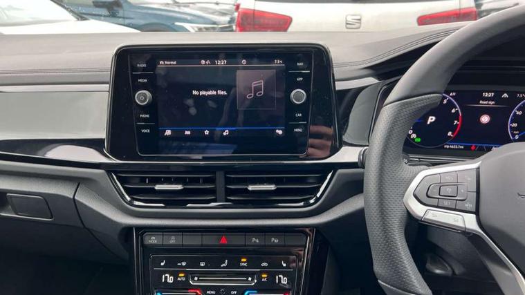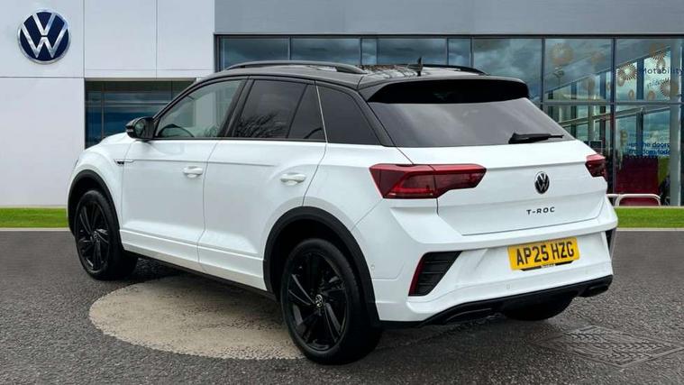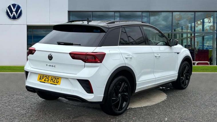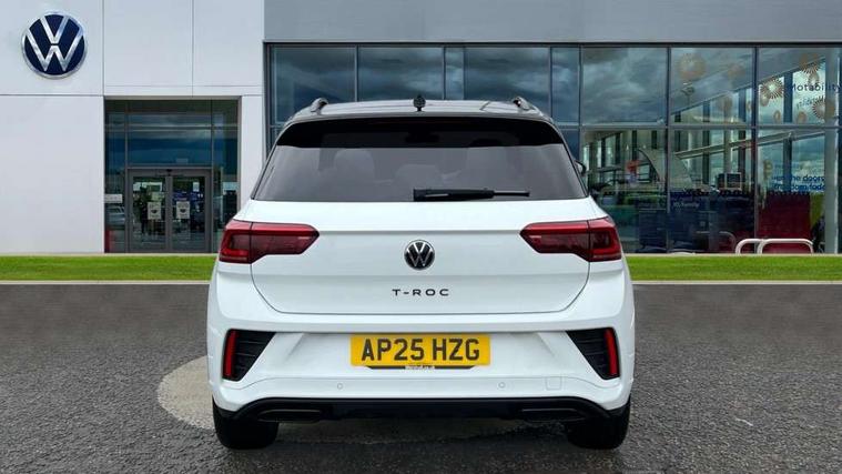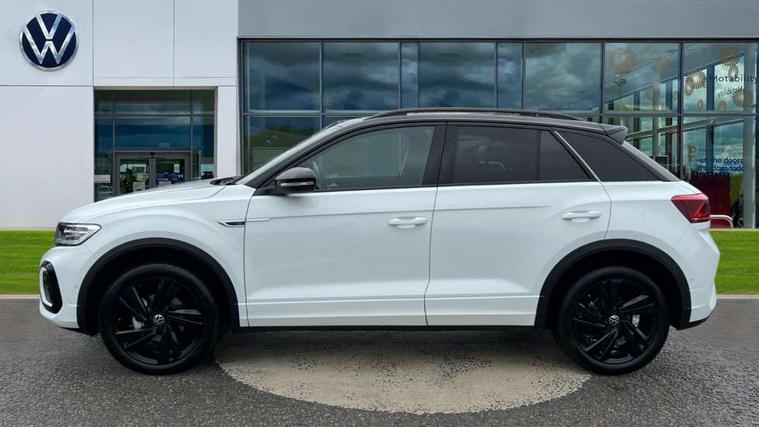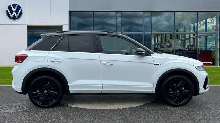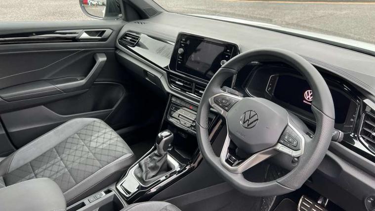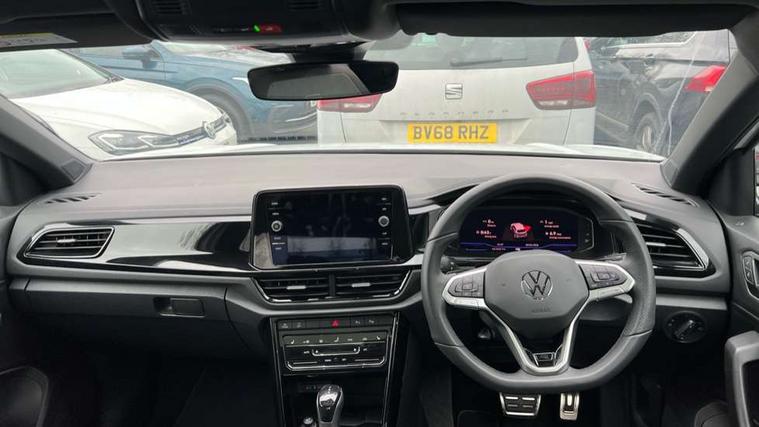 10.25" Digital cockpit pro, Advanced driver attention and drowsiness monitor, Emergency call service, Lane keeping system Lane Assist, Mobile phone interface, Modified key software - reduce switch off time for key status change to Long no motion, Online services, Park assist including front and rear parking sensors, Power assisted speed sensitive steering, Service interval indicator, Tailgate/trunk lid release from outside, Think blue trainer driver tips and journey analysis, Warning sound and light for front seatbelts unfastened, Wireless app connect, Battery regeneration during braking, Rear shock absorption chassis with increased ride height, Start/stop function with battery regeneration, DAB Digital radio, Diversity antenna for FM reception, Front and rear 6 speakers, Music playback - MP3, WMA and AAC files, Premium USB cable in choice of either Apple or Android smartphone compatibility, SD card slot, Simultaneous pairing of 2 compatible mobile devices, Title and cover art display, We Connect and We Connect Plus functionality, Auto dimming interior rear view mirror, Automatic hazard lights activation under emergency braking, Automatic headlight control with LED separate daytime running lights with coming/leaving home function, Dynamic cornering light, Electrically adjustable and heated door mirrors, Extended roof spoiler, Exterior mirrors aspherical on driver side, convex on front passenger side, External USB type C socket and charging sockets, Front windscreen wiper with intermittent wipe and 4 position delay, Heated rear window, Illuminated front grille, IQ LED matrix headlights, LED 3rd brake light, LED rear number plate lights, LED rear tail lights with dynamic turn signal, Light mode for poor weather, rain, fog or snow, Power windows with comfort operation and circuit breaker, R-Line design body coloured bumpers, Rain sensor, Rear exhaust tailpipe, Rear fog light on one side and reversing lights on both sides, Rear side wing doors, Rear wash/wipe with intermittent wipe setting, Remote electrically foldable door mirrors, puddle lights and reverse activated passenger's door mirror, 12V power socket in centre console, 3 rear head restraints, 3 seat bench in 2nd row, 4 load lashing points in luggage compartment, Air care climatronic air conditoning system with active combination filter and 2-zone temperature control, Artvelours cloth upholstery, Black roof lining, Chrome plated radiator grille inserts, air vent surrounds and light switch surrounds, Door and side trim panel with leatherette insert, Drawer under drivers seat, Driver seat height adjust, Driver's seat lumbar support, Front + rear carpet mats, Front centre armrest, Front comfort sports seats, Front cupholders x 2, Front footwell illumination, Front reading light, Front scuff plates with R Line logo, Front seat back storage pockets, Glove compartment door with light, Instrument lighting, white adjustable panel illumination, Interior ambient lighting and surround lighting, Interior light delay, Isofix child seat preparation, Leather gearshift handle, Leather wrapped multifunction steering wheel with paddle shift, Load-through provision with cup holder when folded down ('Unsplit rear seat bench, split folding backrest, with centre armrest), Luggage compartment lighting, Non-folding front passenger seat backrest, Passenger seat height adjuster, Passenger seat lumbar support, Single front passenger seat, Stainless steel pedals, Storage compartment in left and right luggage area, Storage compartment in rear doors, Storage compartments in driver and front passenger doors, Sunvisors with illuminated vanity mirrors, Variable boot floor, height adjustable and removable, Winter pack without heated windscreen washer jets - T-Roc, 3 point height adj front seatbelts + pretensioners, 3 point seatbelts in outer rear with ECE label, ABS, Child locks on rear doors, City emergency braking and pedestrian monitoring, Driver and front passenger airbag with front passenger airbag deactivation, Driver and front passenger safety-optimised head restraints, Drivers seatbelt reminder, Electronic parking brake, Electronic Stability Control (ESC) inc EDL (Electronic Differential Lock) and ASR (Traction Control), Front and rear passengers curtain airbag system including front side airbags, Front disc brakes, Hill start assist, Predictive pedestrian protection, Rear disc brakes, Two tone horn, Tyre pressure loss indicator, Volkswagen roadside assistance, Tool kit, Trims for alloy wheels, Tyre mobility kit including compressor and sealing foam,