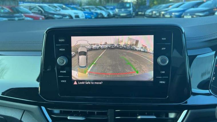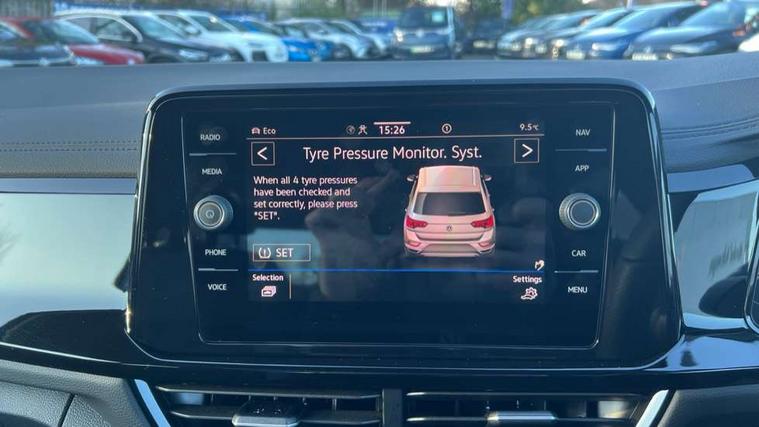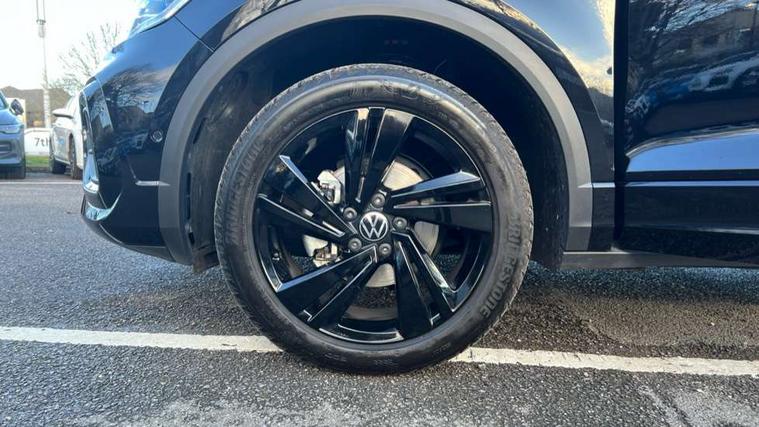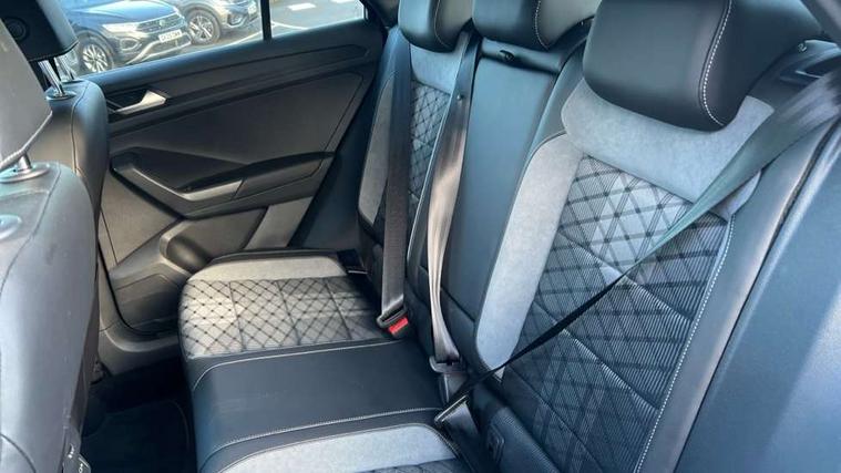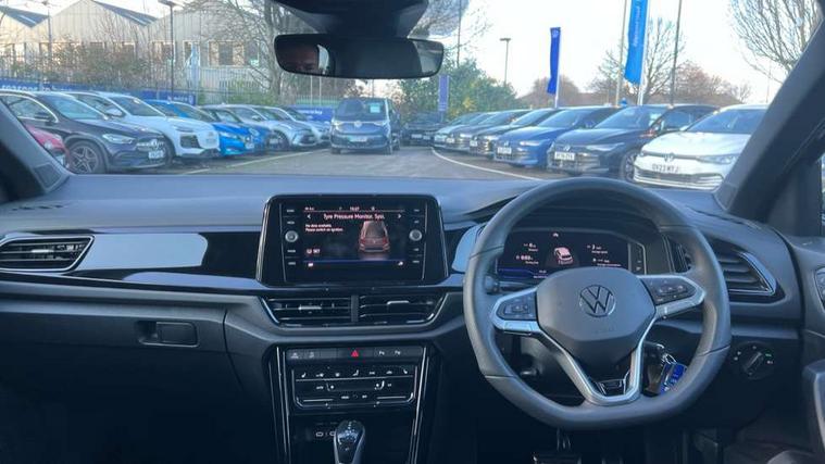 10.25" Digital cockpit pro, Advanced driver attention and drowsiness monitor, Emergency call service, Lane keeping system Lane Assist, Mobile phone interface, Modified key software - reduce switch off time for key status change to Long no motion, Online services, Park assist including front and rear parking sensors, Power assisted speed sensitive steering, Service interval indicator, Tailgate/trunk lid release from outside, Think blue trainer driver tips and journey analysis, Warning sound and light for front seatbelts unfastened, Wireless app connect, Battery regeneration during braking, Rear shock absorption chassis with increased ride height, Start/stop function with battery regeneration, DAB Digital radio, Diversity antenna for FM reception, Front and rear 6 speakers, Music playback - MP3, WMA and AAC files, Premium USB cable in choice of either Apple or Android smartphone compatibility, SD card slot, Simultaneous pairing of 2 compatible mobile devices, Title and cover art display, We Connect and We Connect Plus functionality, Auto dimming interior rear view mirror, Automatic hazard lights activation under emergency braking, Automatic headlight control with LED separate daytime running lights with coming/leaving home function, Dynamic cornering light, Electrically adjustable and heated door mirrors, Extended roof spoiler, Exterior mirrors aspherical on driver side, convex on front passenger side, External USB type C socket and charging sockets, Front windscreen wiper with intermittent wipe and 4 position delay, Heated rear window, Illuminated front grille, IQ LED matrix headlights, LED 3rd brake light, LED rear number plate lights, LED rear tail lights with dynamic turn signal, Light mode for poor weather, rain, fog or snow, Power windows with comfort operation and circuit breaker, R-Line design body coloured bumpers, Rain sensor, Rear exhaust tailpipe, Rear fog light on one side and reversing lights on both sides, Rear side wing doors, Rear wash/wipe with intermittent wipe setting, Remote electrically foldable door mirrors, puddle lights and reverse activated passenger's door mirror, 12V power socket in centre console, 3 rear head restraints, 3 seat bench in 2nd row, 4 load lashing points in luggage compartment, Air care climatronic air conditoning system with active combination filter and 2-zone temperature control, Artvelours cloth upholstery, Black roof lining, Chrome plated radiator grille inserts, air vent surrounds and light switch surrounds, Door and side trim panel with leatherette insert, Drawer under drivers seat, Driver seat height adjust, Driver's seat lumbar support, Front + rear carpet mats, Front centre armrest, Front comfort sports seats, Front cupholders x 2, Front footwell illumination, Front reading light, Front scuff plates with R Line logo, Front seat back storage pockets, Glove compartment door with light, Instrument lighting, white adjustable panel illumination, Interior ambient lighting and surround lighting, Interior light delay, Isofix child seat preparation, Leather gearshift handle, Leather wrapped multifunction steering wheel with paddle shift, Load-through provision with cup holder when folded down ('Unsplit rear seat bench, split folding backrest, with centre armrest), Luggage compartment lighting, Non-folding front passenger seat backrest, Passenger seat height adjuster, Passenger seat lumbar support, Single front passenger seat, Stainless steel pedals, Storage compartment in left and right luggage area, Storage compartment in rear doors, Storage compartments in driver and front passenger doors, Sunvisors with illuminated vanity mirrors, Variable boot floor, height adjustable and removable, Winter pack without heated windscreen washer jets - T-Roc, 3 point height adj front seatbelts + pretensioners, 3 point seatbelts in outer rear with ECE label, ABS, Child locks on rear doors, City emergency braking and pedestrian monitoring, Driver and front passenger airbag with front passenger airbag deactivation, Driver and front passenger safety-optimised head restraints, Drivers seatbelt reminder, Electronic parking brake, Electronic Stability Control (ESC) inc EDL (Electronic Differential Lock) and ASR (Traction Control), Front and rear passengers curtain airbag system including front side airbags, Front disc brakes, Hill start assist, Predictive pedestrian protection, Rear disc brakes, Two tone horn, Tyre pressure loss indicator, Volkswagen roadside assistance, Tool kit, Trims for alloy wheels, Tyre mobility kit including compressor and sealing foam,