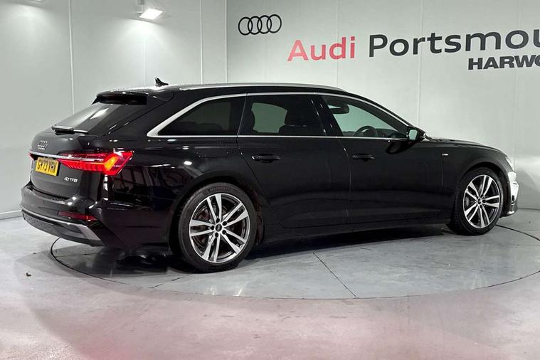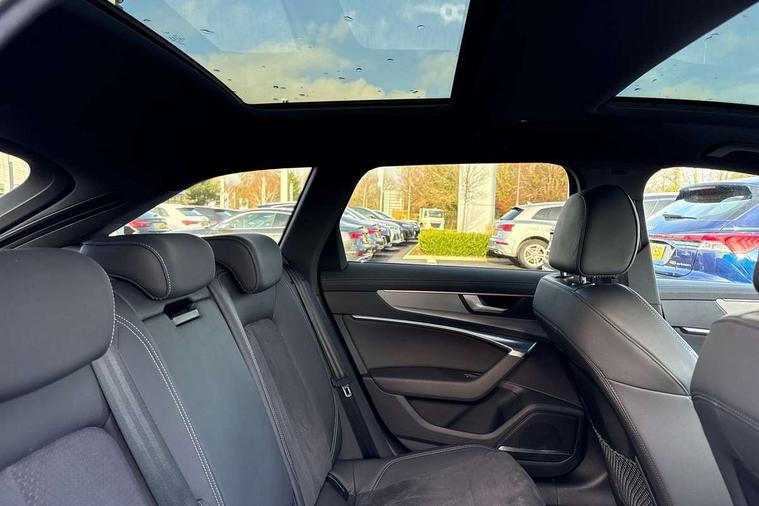 Audi connect safety and service (e-call), Audi connect with Amazon Alexa Integration, Audi drive select, Audi parking system plus - acoustic and visual park assist system for front and rear, Audi virtual cockpit, Automatic start/stop system with coasting functionality, Bluetooth interface, Camera based traffic sign recognition, Lane departure warning system, MMI navigation plus with 10.1" and 8.6" touch screens, Power operated tailgate, Progressive steering, Rear view camera, Service interval indicator, Smartphone interface includes wireless Apple carplay/Android Auto, Voice control system, Sports suspension, Audi front music interface, Audi sound system, Auxiliary input socket, DAB Digital radio, USB connection, Aluminium roof rails, Body colour rear roof spoiler, Body coloured door mirrors, Electric front/rear windows, Electrically adjustable heated and folding + automatically dimming exterior mirrors with memory function, Frameless auto dimming interior rear view mirror, Front intermittent wipers, Heat insulating darkened glass in side and rear windows, Heat insulating glass in windshield, LED rear lights with dynamic indicators, LED signature front daytime running light, LED third brake light, Matrix LED headlights, Matt black rear diffuser with diffuser strip and tailpipes in chrome, Matt black side air intake grille with inlay in matt aluminium, Privacy glass, Radiator grille in anthracite black matt, single frame in chrome and horizontal struts in matt aluminium silver, Rain and light sensors, Rear side wing doors, Rear wiper, 2 zone deluxe electronic climate control, 3 spoke high multi-function perforated leather steering wheel with contrast stitching and shift paddles, 40/20/40 split folding 3 rear seat bench in 3 parts with rear centre armrest, Audi phone box light, Black cloth headlining, Electrically adjustable front seats including seat height, fore/aft position, backrest angle and 4-way lumbar with memory for driver's seat, Front and rear floor mats, Front centre armrest, Front head restraints, Heated front seats, Height/reach adjust steering wheel, Illuminated door sill trims with S logo, Illuminated sun visors with vanity mirrors, Leather gear knob, Luggage compartment system, Rear headrests, Single front passenger seat, Stainless steel pedals and foot rest, Tool kit and car jack, LED Interior Ambient Lighting Pack - A6, Non smoking pack - A6, S line exterior style pack - A6, 3 point seatbelts on all seats, Airbags - Front side, front and rear including head, Audi pre-sense front, EBD - Electronic brakeforce distribution, Electromechanical parking brake, Electronic Stability Control (ESC) including ABS, ASR and EDL, Extended pedestrian protection measures, ISOFIX child seat mounting for front passenger seat and ISOFIX child seat mounting with Top Tether for outer rear seats, Manual child proof rear door locks, Seatbelt monitoring, Tyre pressure warning light, Warning triangle and first aid kit, Anti theft alarm with tow away protection, Anti-theft wheel bolts and wheel loosening detection, Immobiliser, Keyless Go, Remote central locking, Matt brushed aluminium inlays,