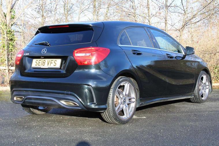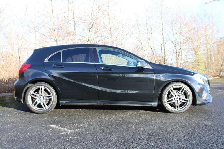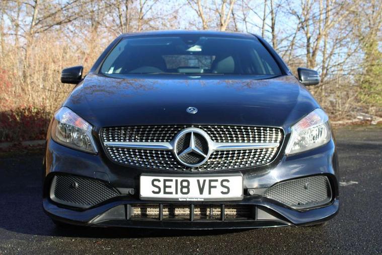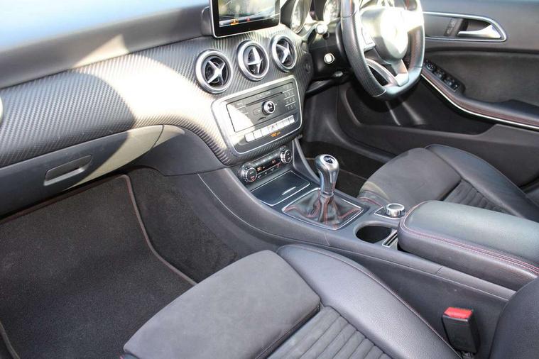 8" colour display screen, Attention assist, Bluetooth interface for hands free telephone, Bulb failure indicator, Collision prevention assist plus, DYNAMIC SELECT with a choice of driving modes (ECO, Comfort, Sport, Sport+ and Individual), External temperature gauge, Low fluid warning light, Reversing camera, Service indicator (ASSYST PLUS), Smartphone integration with Apple CarPlay, Speed dependent sports steering system, Speedtronic cruise control, Trip computer, Lowered suspension, Media interface, Mercedes Audio 20 radio/single CD + telephone keypad, USB port, Adaptive brake lights, AMG body styling, Body colour bumpers, Body colour door handles, Body colour side skirt, Daytime running lights, Diamond radiator grille with chrome pins and silver louvre + chrome insert, Electric adjustable heated door mirrors, Electric front windows, Electric rear windows, Headlamp assist, Heated rear window with timer, LED tail lights, Rain sensor windscreen wipers, Rear wiper, Twin Trapezoidal tailpipes, 1/3 to 2/3 split folding rear seats, 12V socket, 3 Spoke sports multifunction flat bottomed leather steering wheel, Ambient lighting, AMG floor mats with red stitching, Artico man-made leather/Dinamica upholstery, Auto Mercedes-Benz child seat recognition sensor, Black headlining, Brushed stainless steel sports pedals, Dual zone automatic climate control, Footwell lights, Front and rear reading lights, Front centre armrest with storage compartment, Front head restraints, Front sport seats, Height adjustable front seats, Height/reach adjustable steering column, Illuminated door sills, Illuminated glovebox, Illuminated storage compartment, Isofix rear child seat preparation, Leather gearshift, Load securing rings in luggage compartment, Luggage compartment cover, Rear head restraints, Storage compartment under load area floor, Sunvisors with illuminated vanity mirrors, Twin front cupholders, Seat comfort pack - A Class, 3 rear 3 point seatbelts, ABS with Brake Assist, Active bonnet, Adaptive brake system, Brake calipers with Mercedes-Benz lettering + perforated brake discs, Child proof door locks, Crash responsive emergency lighting, Drivers knee airbag, Dual stage driver/passenger airbags, Electronic parking brake, ESP with ASR, Front and rear seatbelt reminder, Front head airbags, Front passenger seat occupancy sensor, Front side airbags, Hill start assist, Tyre pressure monitoring system, Warning triangle and first aid kit, Window airbags, Alarm system/interior protection/immobiliser, Remote central locking, Carbon effect trim, Chrome air vent surrounds, Tirefit sealant with electric air pump,