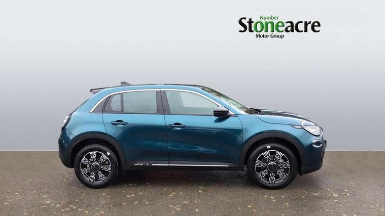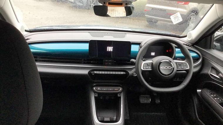 7" TFT digital cluster, Bluetooth connectivity, BSRF connectivity box, Connected services, Cruise control, Drowsy driver detection, Emergency E-call assist, Engine emission level default, GSR II step 1, Intelligent speed assist, Lane keeping assistant (LKA), Odometer, Power assist steering, Rain and dusk sensors, Rear parking sensors, Traffic sign recognition, Wireless apple car play/android Auto, Without drive mode selector, L2-AGM 12V battery, 1st Row USB type-A and USB type-C, 4 speaker audio system, Radio, Uconnect infotainment 10.25" touchscreen with DAB, All power windows express Up/Down, Auto dimming frameless rear view mirror, Automatic headlights, Body coloured door handles, Chrome day light openings, Electric adjustable door mirrors, Exterior chrome accents, Front and rear Chromed 600 logo, Gloss black finish B pillar, Gloss black shark fin antenna, Glossy black door mirrors, Heated windscreen wiper blade area, LED 3rd brake light, LED daytime running lights, LED Fog lamps with cornering function, LED front signature lighting, LED front turn indicators and position lights, LED rear lights, LED rear signature lighting, LED reflector headlamps, Matt black side skirts with 600 chromed logo, Rear bumper embossed 600 logo, Rear roof spoiler, Rear side wing doors, Rear wiper, 2 Spoke synthetic leather steering wheel with audio control, 3 rear headrests, 3 seat bench in 2nd row, 4 way manually adjustable passenger seat, 6 way manually adjustable drivers seat, Auxilliary 12V power socket, Body colour dashboard fascia, Chrome interior door handles, Dark metachrome dashboard ring, English handbook, Front centre armrest, Front headrests, Front passenger grab handle, Front seatback pockets, ISOFIX attachment on front passenger and rear passenger seats, Manual climate control, Metachrome central compartment bezel, Monogram fabric upholstery, Paddle shifts, Partial body cover for shipment, Predisposal for accessory upgrade to default tunnel pad cover (dedicated prnd bezel), Rear seat 40/60 split, Single front passenger seat, Smart 15L storage central tunnel with tunnel pad cover, Sunvisor label ciao Fiat, Sunvisors with vanity mirrors, 3x3 point rear seatbelts, 6 airbags, ABS, Autonomous Emergency Brake (AEB) & Vulnerable Road User (VRU) Protection, Child locks on rear doors, Electronic parking brake with auto hold, ESC (Electronic Stability Control), Front passenger airbag deactivation, Seatbelt reminder and pretensioners for all seats, Anti-theft volumetric alarm, Anti-theft wheel bolts, Keyless Go, 17" Diamond cut alloy wheels, Fix and go puncture repair kit,