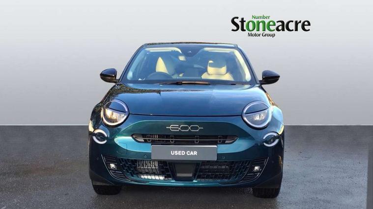 360 degree parking sensors with 180 degree rear view camera, 7" TFT digital cluster, Autonomous driving level 2: Adaptive cruise control with stop & go and lane centering, Blind spot detection, Bluetooth connectivity, BSRF connectivity box, Connected services, Drowsy driver detection, Emergency E-call assist, Engine emission level default, GSR II step 1, Hands free power liftgate, Intelligent speed assist, Lane keeping assistant (LKA), Odometer, Power assist steering, Rain and dusk sensors, Semi-automatic parking with Visiopark 1 system, Traffic sign recognition, Wireless apple car play/android Auto, Wireless charging pad for smartphones, Without drive mode selector, L2-AGM 12V battery, 1st Row USB type-A and USB type-C, 2nd Row USB type-C, 6 speaker audio system, Radio, Uconnect infotainment 10.25" touchscreen with integrated navigation system and DAB, All power windows express Up/Down, Auto dimming frameless rear view mirror, Automatic headlights, Automatic high/low beam, Body coloured door handles, Chrome day light openings, Chromed exhaust tip, Electric adjustable/heated/folding door mirrors, Exterior chrome accents, Front and rear Chromed 600 logo, Gloss black finish B pillar, Gloss black shark fin antenna, Glossy black door mirrors, Heated windscreen wiper blade area, LED 3rd brake light, LED daytime running lights, LED Fog lamps with cornering function, LED front signature lighting, LED front turn indicators and position lights, LED rear lights, LED rear signature lighting, LED reflector headlamps, Matt black side skirts with 600 chromed logo, Privacy glass, Puddle lights, Rear bumper embossed 600 logo, Rear roof spoiler, Rear side wing doors, Rear wiper, 2 Spoke synthetic leather steering wheel with audio control, 3 rear headrests, 3 seat bench in 2nd row, 6 way manually adjustable front passenger seat, 6 way power adjustable driver seat with lumbar support and massage function, Adjustable trunk floor, Automatic climate control, Auxilliary 12V power socket, Cargo flex fit, Chrome interior door handles, Dark metachrome dashboard ring, English handbook, Front centre armrest, Front headrests, Front passenger grab handle, Front seatback pockets, Heated front seats, ISOFIX attachment on front passenger and rear passenger seats, Matt Ivory painted dashboard fascia, Metachrome central compartment bezel, Monogram Synthetic leather upholstery, Paddle shifts, Partial body cover for shipment, Predisposal for accessory upgrade to default tunnel pad cover (dedicated prnd bezel), Rear seat 40/60 split, Single front passenger seat, Smart 15L storage central tunnel with La prima tunnel pad cover, Sunvisor label ciao Fiat, Sunvisors with vanity mirrors, Velour floor mats, 3x3 point rear seatbelts, 6 airbags, ABS, Autonomous Emergency Brake (AEB) & Vulnerable Road User (VRU) Protection, Child locks on rear doors, Electronic parking brake with auto hold, ESC (Electronic Stability Control), Front passenger airbag deactivation, Seatbelt reminder and pretensioners for all seats, Anti-theft volumetric alarm, Anti-theft wheel bolts, Passive entry and keyless go, 18" Diamond cut alloy wheels, Fix and go puncture repair kit,