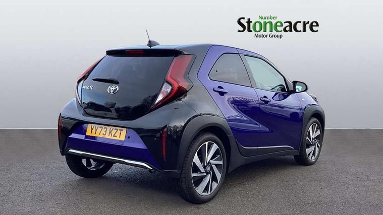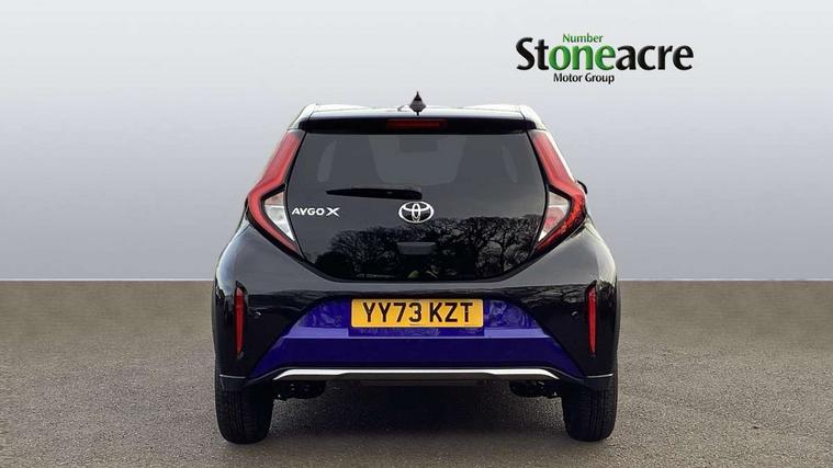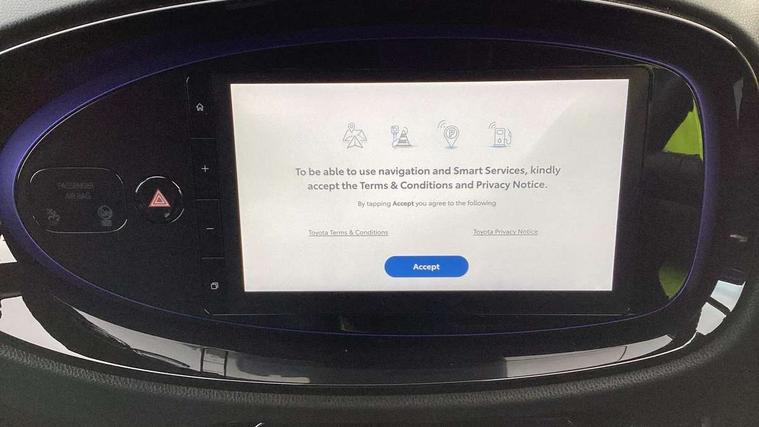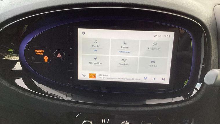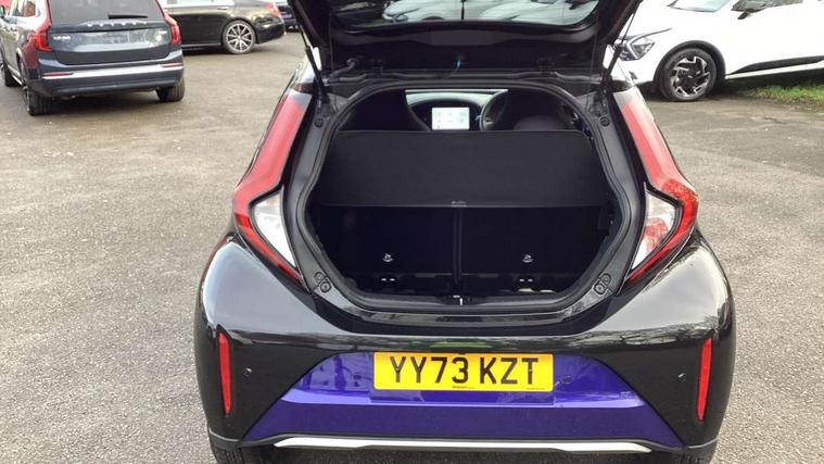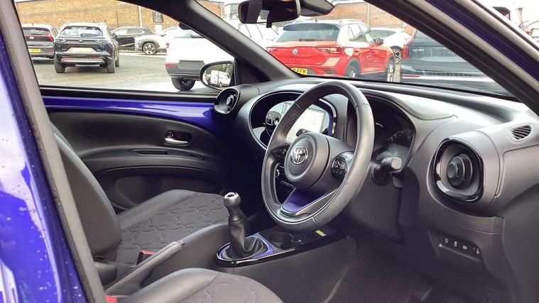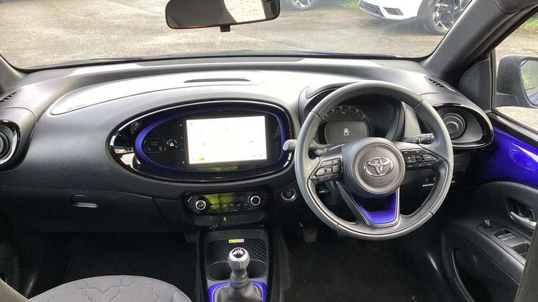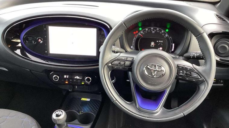 4.2" TFT colour screen, Adjustable speed limiter, Analogue speedometer, Bluetooth connectivity, Digital tachograph, Driver attention alert system, eCall emergency call system, Electric power steering, Front and rear parking sensors with auto brake, Intersection turn assist, Key reminder warning, Noise reduction kit, Pre collision system with emergency steering assist, Remote boot door release on key, Reversing camera with static guide lines, Smart entry and push button start, Speed limit display, Start and stop, Wireless charger, Wireless Smartphone Integration includes Apple CarPlay and Android auto, Vehicle Stability Control (VSC), 4 speakers, 9" HD multimedia display touch screen with Toyota smart connect, DAB digital audio broadcast, USB connector, Auto headlights, Auto wipers, Automatic headlights cut-off, Automatic high beam On/Off switch, Bicycle towing hook, Black fog light surrounds, Black side protection mouldings, Black wheel arch mouldings, Body colour door handles, Body coloured front bumper, Boot door scuff plate, Eclipse black rear bumper, Electric heated door mirrors, Follow me home headlights, Front and rear underruns in silver, Front fog lights, Front power windows, Gloss black door mirrors, Gloss black upper front grille, Headlight cut-off reminder, LED daytime running lights guide, LED front light guide, LED High mounted stop lamp, LED projector headlights, Manual day/night rear view mirror, Manual headlight levelling, Pagoda roof, Power adjustable door mirrors, Power back door, Privacy glass, Rain sensor, Rear combination lights LED bulb type, Rear side wing doors, Rear windscreen defogger, Rear windscreen wiper, Remote hazard lights system, Short antenna, Variable intermittent windscreen wipers, 12v power outlet - front, 2 seat bench in 2nd row, 3 spoke leather steering wheel, 50/50 split folding rear seat, Adhesive roof headlining, Adjustable speed limiter switch on steering wheel, Audio and telephone switches on steering wheel, Auto air conditioning, Black roof lining, Body colour satin anodised insert on steering wheel, Boot light, Centre room light, Chrome interior door handles, Chrome surround on air conditioning buttons, Clean air filter, Console box storage, Floor mats, Front and rear cup holders, Front head rest deco art, Front head restraints, Height adjustable driver seat, Intelligent adaptive cruise control switch on steering wheel, ISOFIX child restraint system on rear seats, Lane departure alert switch on steering wheel, Leather gearshift knob, Light blue ambient lighting in centre console, Manual tilt steering wheel, Manually reclining and sliding driver seat, Manually reclining and sliding front passenger seat, Multimedia switches on steering wheel, Partial synthetic leather upholstery, Pollen filter, Rear door pockets, Rear head restraints, Satin silver insert on gear shift knob, Single compartment glovebox with lights, Single front passenger seat, Soft tonneau cover, Sun visors with mirror on driver and passenger side, Voice recognition switch on steering wheel, Toyota safety sense pack - Aygo X, Anti lock braking system + Electronic brake force distribution, Child safety door lock, Emergency brake light signal (EBS), Hill start assist control (HAC), Passenger airbag on/off switch, Seat belt reminder for front and rear seats, Supplement restraints system (SRS) - 6 airbags, Traction control, Tyre pressure warning system, Immobiliser, Remote power door locks, Black wheel centre caps, Tyre repair kit,