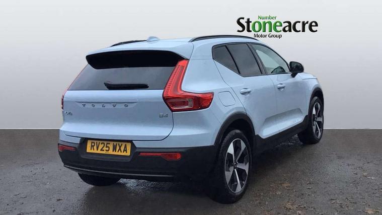 12.3" Progressive Driver Display, 9" centre console portrait touch screen, Adjustable steering wheel force, Android auto (Wired), Apple carplay (wired), Bluetooth handsfree system, Driver alert control, Driver assistance (pilot assist and adaptive cruise control), Driver awareness - Blind spot information system with steer assist, cross traffic alert with autobrake and rear collision warning and mitigation, E-call, Front park assist, Google automotive services - Enabled entertainment apps, navigation with google maps, voice recognition with google assistant, Hands free power tailgate, Intelligent speed assistance, Lane keeping aid, Oncoming Lane Mitigation, Rear park assist, Speed sensitive steering, Volvo cars services with app - Driving journal, emergency and breakdown call, engine remote start, remote door locking/unlocking and vehicle dashboard, Wireless/Inductive Mobile Phone Charging, Automatic transmission with start/stop and manual change functions, Dynamic chassis, DAB Digital radio, Steering wheel mounted remote controls, Adaptive brake lights with high level LED brake lights, Auto dimming feature for exterior door mirrors, Auto dimming interior mirror, Automatic headlamp levelling, Automatic LED Headlights + Active high beam incorporating daytime running lights, Front aluminium tread plates, Front and rear electric windows, High gloss black front and rear skid plate, High gloss black front bumper deco, High gloss black mesh front grille with high gloss black surround, High gloss black window trim, Home safe and approach lighting, Integrated roof rails in high gloss black, LED front fog lights, Puddle lights, Rain sensor with automatic windscreen wiper activation, Rear side wing doors, Rear wiper, Roof antenna, Roof spoiler, Visible VIN plate, 12V socket in front tunnel console and luggage compartment, 2-Zone electronic climate control with CleanZone air quality system and pollen filter, 3 seat bench in 2nd row, 3 Spoke tailored steering wheel with chrome trim, 60/40 versatile split folding rear seat, Centre console cupholders and storage, Charcoal headlining, Connect textile/microtech upholstery, Flexible load floor and grocery bag holder, Floor mats, Front cabin courtesy lights, Front door pocket, front cupholder, ambient front door, rear reading, rear courtesy, instrument panel and tailgate lighting, Front footwell illumination, Front headrests, Front reading lights, Front seat cushion extensions, Front side step illumination (under door), Glovebox bag hook, Heated front seats, Height adjustable passenger seat, Height/reach adjustable steering column, High gloss centre tunnel deco, Illuminated glovebox, Illuminated luggage compartment, Illuminated vanity mirrors + ticket holder, Integrated waste bin, Isofix attachments on outer rear seats, Load cover, Load protection net, Multi directional lumbar support for driver and passenger seat, Power driver seat with memory + exterior mirrors memory, Rear armrest with cupholders, Rear headrests, Single front passenger seat, Underfloor cargo storage, Climate pack without heated front seats - XC40, 3x3 point rear seatbelts, City safety with steering support with Pedestrian + cyclist + front collision warning with full auto brake and rear auto brake, Driver and passenger airbags, Drivers knee airbag, Electronic parking brake with auto hold, First aid kit, Front and outer rear seatbelt reminder and pretensioners, Front seats SIPS airbags, Hill descent control, Hill start assist, Inflatable curtain, Passenger airbag cut-off device, Power child locks on rear doors, Road sign information display, Run off Road Protection, SIPS (Side Impact Protection System), Slippery road and hazard light alert, Stability and Traction Control with Spin control, Engine Drag Control and Corner Traction Control, Tyre pressure monitoring system, Vehicle deceleration control with Anti-lock Brake System, Electronic Brake Distribution and Emergency Brake Assist, Warning triangle, WHIPS whiplash protection system - front, 2 x Key integrated remote control central locking including with deadlocking system and auto open/close windows, Anti-theft alarm including immobiliser/volume sensor + level sensor, Keyless drive includes keyless entry and keyless start, Locking wheel nuts,