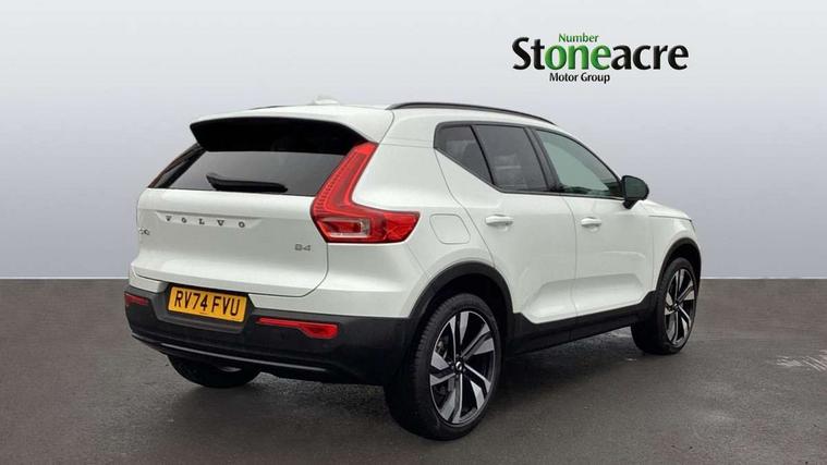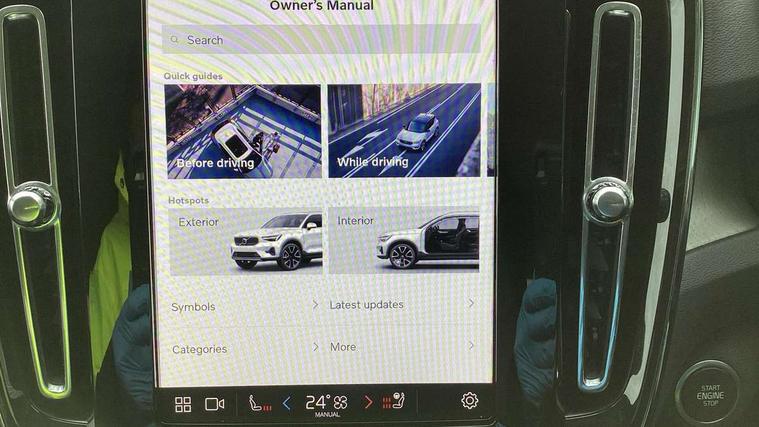12.3" Progressive Driver Display, 360 degree surround view parking camera with side proximity sensors, 9" centre console portrait touch screen, Adjustable steering wheel force, Android auto (Wired), Apple carplay (wired), Bluetooth handsfree system, Driver alert control, Driver assistance (pilot assist and adaptive cruise control), Driver awareness - Blind spot information system with steer assist, cross traffic alert with autobrake and rear collision warning and mitigation, E-call, Front park assist, Google automotive services - Enabled entertainment apps, navigation with google maps, voice recognition with google assistant, Hands free power tailgate, Intelligent speed assistance, Lane keeping aid, Oncoming Lane Mitigation, Rear park assist, Speed sensitive steering, Volvo cars services with app - Driving journal, emergency and breakdown call, engine remote start, remote door locking/unlocking and vehicle dashboard, Wireless/Inductive Mobile Phone Charging, Automatic transmission with start/stop and manual change functions, Dynamic chassis, DAB Digital radio, Premium Sound by Harman Kardon, Dolby Pro Logic II Surround Sound, Dirac Unison, 12 speakers/600W and subwoofer, Steering wheel mounted remote controls, Active bending pixel LED headlights with adaptive shadow technology, Active high beam incorporating daytime running lights, Adaptive brake lights with high level LED brake lights, Auto dimming feature for exterior door mirrors, Auto dimming interior mirror, Automatic headlamp levelling, Dark tinted windows - rear side windows and rear screen, Front aluminium tread plates, Front and rear electric windows, Headlight cleaning system, High gloss black front and rear skid plate, High gloss black front bumper deco, High gloss black mesh front grille with high gloss black surround, High gloss black window trim, Home safe and approach lighting, Integrated roof rails in high gloss black, LED front fog lights with cornering function, Power glass tilt and slide panoramic sunroof with sun curtain, Puddle lights, Rain sensor with automatic windscreen wiper activation, Rear side wing doors, Rear wiper, Roof antenna, Roof spoiler, Visible VIN plate, 12V socket in front tunnel console and luggage compartment, 2-Zone electronic climate control with CleanZone air quality system and pollen filter, 3 seat bench in 2nd row, 3 Spoke tailored steering wheel with chrome trim, 60/40 versatile split folding rear seat, Centre console cupholders and storage, Flexible load floor and grocery bag holder, Floor mats, Front cabin courtesy lights, Front door pocket, front cupholder, ambient front door, rear reading, rear courtesy, instrument panel and tailgate lighting, Front footwell illumination, Front headrests, Front reading lights, Front seat cushion extensions, Front side step illumination (under door), Glovebox bag hook, Heated front seats, Height/reach adjustable steering column, High gloss centre tunnel deco, Illuminated glovebox, Illuminated luggage compartment, Illuminated vanity mirrors + ticket holder, Integrated waste bin, Isofix attachments on outer rear seats, Load cover, Load protection net, Multi directional lumbar support for driver and passenger seat, Power driver seat with memory + exterior mirrors memory, Power folding rear headrests, Power passenger seat, Rear armrest with cupholders, Single front passenger seat, Underfloor cargo storage, Climate pack without heated front seats - XC40, 3x3 point rear seatbelts, City safety with steering support with Pedestrian + cyclist + front collision warning with full auto brake and rear auto brake, Driver and passenger airbags, Drivers knee airbag, Electronic parking brake with auto hold, First aid kit, Front and outer rear seatbelt reminder and pretensioners, Front seats SIPS airbags, Hill descent control, Hill start assist, Inflatable curtain, Passenger airbag cut-off device, Power child locks on rear doors, Road sign information display, Run off Road Protection, SIPS (Side Impact Protection System), Slippery road and hazard light alert, Stability and Traction Control with Spin control, Engine Drag Control and Corner Traction Control, Tyre pressure monitoring system, Vehicle deceleration control with Anti-lock Brake System, Electronic Brake Distribution and Emergency Brake Assist, Warning triangle, WHIPS whiplash protection system - front, 2 x Key integrated remote control central locking including with deadlocking system and auto open/close windows and sunroof, Anti-theft alarm including immobiliser/volume sensor + level sensor, Keyless drive includes keyless entry and keyless start, Locking wheel nuts,