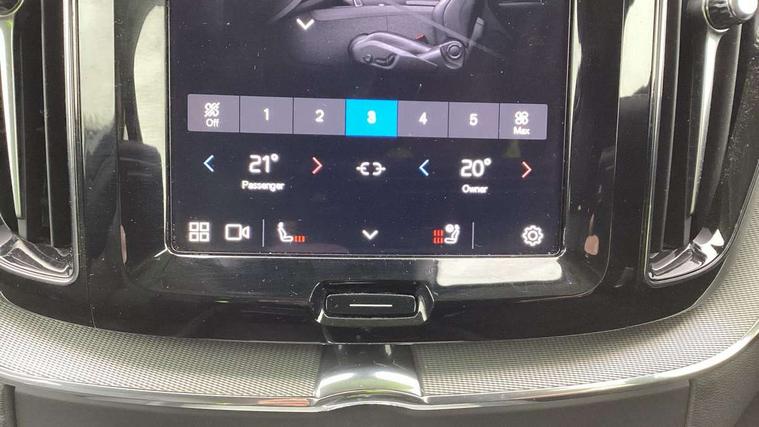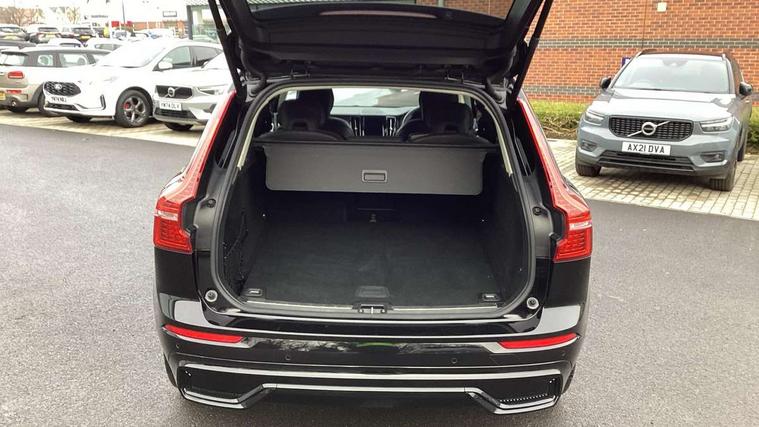11.2" centre console touch screen, 12.3" Progressive Driver Display, 360 degree surround view parking camera with side proximity sensors, Adaptive cruise control, Adjustable steering wheel force, Android auto (Wired), Apple carplay (wired), Bluetooth handsfree system, Drive mode settings, Driver alert control with lane keeping aid, Emergency services call system, Front and rear park assist, Google Automotive Services, Intelligent speed assistance, Oncoming Lane Mitigation, PAS, Power operated tailgate with handsfree opening and closing, Service interval indicator, Speed limiter, Speed sensitive steering, Trip computer, Volvo cars services with app, Volvo on call with App, Wireless/Inductive Mobile Phone Charging, 2 phase on board charger 6.4kW (home charging limited to 3.7kW), 6m 3 phase 16amp Type 2 / mode 3 charge cable, 8 speed automatic transmission with start/stop + manual change functions, Electric rear axle drive, Recharging port located in nearside front wing, DAB Digital radio, Low speed exterior sound speaker, Premium Sound by Harman Kardon, dirac unison, dolby pro logic II surround sound, 13 speakers/600W output and fresh air subwoofer, Steering wheel remote infotainment controls, Adaptive brake lights with high level LED brake lights, Auto dimming interior + exterior mirrors, Automatic headlight levelling system, Automatic LED Headlights + Active high beam incorporating daytime running lights, Electric adjustable/heated/auto power folding door mirrors, Electric front+rear windows, Front aluminium tread plates, Heated front windscreen, High gloss black door mirrors and window surround, High gloss black front and rear bumper decoratives, High gloss black mesh front grille with high gloss black surround, Home safe and approach lighting, Integrated roof rails in high gloss black, Puddle lights, Rain sensor with automatic windscreen wiper activation, Rear side wing doors, Rear wiper, Roof antenna, Roof spoiler, Tinted windscreen, Visible VIN plate, 12V socket in front tunnel console and luggage compartment, 2 zone electronic climate control with Clean zone air quality system and pollen filter, 3 seat bench in 2nd row, 3 Spoke tailored steering wheel with chrome trim, A-pillar parking ticket holder, Air purifier particulate matter (PM) 2.5 filter, B Pillar ventilation, Bright metal luggage scuff plate, Centre console cupholders and storage, Charcoal floor mats, Front and rear courtesy lights, Front and rear door pocket illumination, Front cupholder illumination, Front footwell illumination, Front reading lights, Front seat cushion extensions, Glovebox compartment with illumination, Head restraints for all seats, Heated front seats, Heated steering wheel, Height/reach adjustable steering column, Illuminated luggage compartment, Illuminated vanity mirrors + ticket holder, Inner door release handle illumination, ISOFIX attachment on outer rear seats, Load cover, Load protection net, Multi directional lumbar support, Power driver seat with memory + exterior mirrors memory, Power height adjustable passenger seat, Power passenger seat with memory, Quilted nordico leather upholstery, Rear armrest with cupholder, Rear footwell and front and rear side step illumination, Rear reading lights, Rear seat concealed storage, Single front passenger seat, Tailgate illumination and ambient door lighting, Underfloor stowage compartment, Versatile split folding rear seat - 60/40, Driver assist pack without Adaptive cruise control - XC60, 5 three point seatbelts, City safety with steering support with Pedestrian + cyclist + front collision warning with full auto brake and rear auto brake, Drivers knee airbag, Dual stage driver/passenger airbags, Electronic parking brake with auto hold, First aid kit, Front seats SIPS airbags, Hill descent control - Off-road drive mode, Hill start assist, IC (Inflatable Curtains) - Full Length, Passenger airbag cut-off device, Power child locks on rear doors, Road sign information display, Run off Road Mitigation, Run off Road Protection, Seatbelt reminder and pretensioners, SIPS (Side Impact Protection System), Slippery road and hazard light alert, Stability and Traction Control with Spin control, Engine Drag Control and Corner Traction Control, Tyre pressure monitoring system, Vehicle deceleration control with Anti-lock Brake System, Electronic Brake Distribution and Emergency Brake Assist, Warning triangle, WHIPS whiplash protection system - front, Anti-theft alarm including immobiliser/volume sensor + level sensor, Key integrated remote control central locking + fuel flap with deadlocking system and auto open/close power windows, Keyless Drive (includes Keyless Entry and Keyless Start), Locking wheel nuts, Private locking for tailgate, Summer tyres, Tyre sealant kit + 12v compressor,