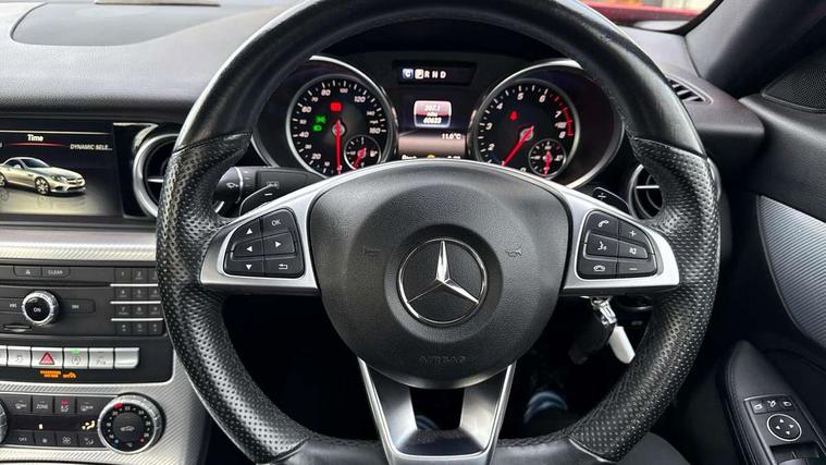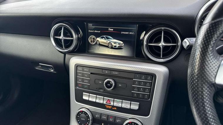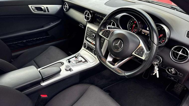 Attention assist, Bluetooth system, DYNAMIC SELECT with a choice of driving modes (ECO, Comfort, Sport, Sport+ and Individual), Outside temperature gauge, Power Steering, Remote boot release, Service indicator (ASSYST), Speedtronic cruise control, Trip computer, Sport exhaust system, 2 USB ports in centre console, DAB Digital radio, Media interface, Adaptive brake lights, Automatic headlamp activation, Body colour bumpers, Body coloured door mirrors, Electric front windows, Electrically adjustable and heated door mirrors, Electro hydraulic vario roof, LED daytime running lights, Wind deflector, 3 spoke flat bottom multifunction leather steering wheel, Active head restraints, Auto Mercedes-Benz child seat recognition sensor, Brushed stainless steel sports pedals with rubber studs, Driver/front passenger seat height adjustment, Front centre armrest, Lockable glovebox, Sports seats, Steering wheel gearshift paddles, ABS with Brake Assist, Adaptive brake system, Driver/front passenger head+thorax airbag, Dual stage driver/passenger airbags, Electronic parking brake, ESP with Acceleration skid control (ASR), Seatbelt pretensioners, Tyre pressure monitoring system, Warning triangle and first aid kit, Alarm system/interior protection/immobiliser, Tyre sealant kit,