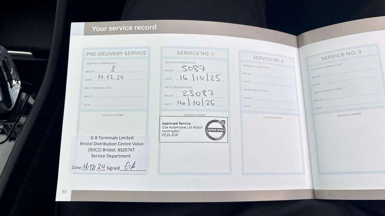 12.3" Progressive Driver Display, 360 degree surround view parking camera with side proximity sensors, 9" centre console portrait touch screen, Adjustable steering wheel force, Apple carplay (wired), Bluetooth handsfree system, Driver alert control, Driver assistance (pilot assist and adaptive cruise control), Driver awareness - Blind spot information system with steer assist, cross traffic alert with autobrake and rear collision warning and mitigation, E-call, Google automotive services - Enabled entertainment apps, navigation with google maps, voice recognition with google assistant, Hands free power tailgate, Intelligent speed assistance, Lane keeping aid, Oncoming Lane Mitigation, Speed sensitive steering, Volvo cars services with app - Driving journal, emergency and breakdown call, engine remote start, remote door locking/unlocking and vehicle dashboard, Wireless/Inductive Mobile Phone Charging, Automatic transmission with start/stop and manual change functions, Dynamic chassis, DAB Digital radio, Premium Sound by Harman Kardon, Dolby Pro Logic II Surround Sound, Dirac Unison, 12 speakers/600W and subwoofer, Steering wheel mounted remote controls, Active bending pixel LED headlights with adaptive shadow technology, Active high beam incorporating daytime running lights, Adaptive brake lights with high level LED brake lights, Auto dimming feature for exterior door mirrors, Auto dimming interior mirror, Automatic headlamp levelling, Dark tinted windows - rear side windows and rear screen, Front aluminium tread plates, Front and rear electric windows, Headlight cleaning system, High gloss black front and rear skid plate, High gloss black front bumper deco, High gloss black mesh front grille with high gloss black surround, High gloss black window trim, Home safe and approach lighting, Integrated roof rails in high gloss black, LED front fog lights with cornering function, Power glass tilt and slide panoramic sunroof with sun curtain, Puddle lights, Rain sensor with automatic windscreen wiper activation, Rear side wing doors, Rear wiper, Roof antenna, Roof spoiler, Visible VIN plate, 12V socket in front tunnel console and luggage compartment, 2-Zone electronic climate control with CleanZone air quality system and pollen filter, 3 seat bench in 2nd row, 3 Spoke tailored steering wheel with chrome trim, 60/40 versatile split folding rear seat, Centre console cupholders and storage, Flexible load floor and grocery bag holder, Floor mats, Front cabin courtesy lights, Front door pocket, front cupholder, ambient front door, rear reading, rear courtesy, instrument panel and tailgate lighting, Front footwell illumination, Front headrests, Front reading lights, Front seat cushion extensions, Front side step illumination (under door), Glovebox bag hook, Heated front seats, Height/reach adjustable steering column, High gloss centre tunnel deco, Illuminated glovebox, Illuminated luggage compartment, Illuminated vanity mirrors + ticket holder, Integrated waste bin, Isofix attachments on outer rear seats, Load cover, Load protection net, Multi directional lumbar support for driver and passenger seat, Power driver seat with memory + exterior mirrors memory, Power folding rear headrests, Power passenger seat, Rear armrest with cupholders, Single front passenger seat, Underfloor cargo storage, Climate pack without heated front seats - XC40, 3x3 point rear seatbelts, City safety with steering support with Pedestrian + cyclist + front collision warning with full auto brake and rear auto brake, Driver and passenger airbags, Drivers knee airbag, Electronic parking brake with auto hold, First aid kit, Front and outer rear seatbelt reminder and pretensioners, Front seats SIPS airbags, Hill descent control, Hill start assist, Inflatable curtain, Passenger airbag cut-off device, Power child locks on rear doors, Road sign information display, Run off Road Protection, SIPS (Side Impact Protection System), Slippery road and hazard light alert, Stability and Traction Control with Spin control, Engine Drag Control and Corner Traction Control, Tyre pressure monitoring system, Vehicle deceleration control with Anti-lock Brake System, Electronic Brake Distribution and Emergency Brake Assist, Warning triangle, WHIPS whiplash protection system - front, 2 x Key integrated remote control central locking including with deadlocking system and auto open/close windows and sunroof, Anti-theft alarm including immobiliser/volume sensor + level sensor, Keyless drive includes keyless entry and keyless start, Locking wheel nuts,