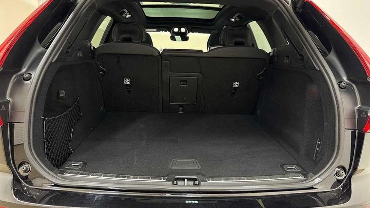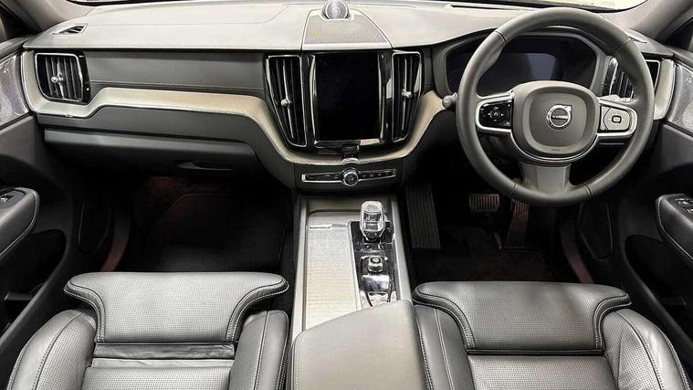 12.3" Progressive Driver Display, 360 degree surround view parking camera with side proximity sensors, 9" centre console touch screen, Adjustable steering wheel force, Apple carplay (wired), Bluetooth handsfree system, Driver alert control with lane keeping aid, Emergency services call system, Front and rear park assist, Google Automotive Services, Intelligent speed assistance, Oncoming Lane Mitigation, PAS, Power operated tailgate with handsfree opening and closing, Service interval indicator, Speed limiter, Speed sensitive steering, Trip computer, Volvo cars services with app, Volvo on call with App, Wireless/Inductive Mobile Phone Charging, 8 speed automatic transmission with start/stop + manual change functions, Active four-C chassis + four corner adaptive damper with electronic rear air suspension, DAB Digital radio, Premium Sound by Bowers and Wilkins, dirac live, dolby pro logic II surround sound, 14 speakers/1100W output and subwoofer, Steering wheel remote infotainment controls, Active bending headlights with adaptive shadow technology, Adaptive brake lights with high level LED brake lights, Auto dimming interior + exterior mirrors, Automatic headlight levelling system, Automatic LED Headlights + Active high beam incorporating daytime running lights, Dark tinted windows for rear side windows and cargo area, Electric adjustable/heated/auto power folding door mirrors, Electric front+rear windows, Front aluminium tread plates, Headlight cleaning system, High gloss black door mirrors and window surround, High gloss black front and rear bumper decoratives, High gloss black front grille, Surround, Strikethrough and Ironmark, High gloss black rear model, engine and volvo logo badges, Home safe and approach lighting, Integrated roof rails in high gloss black, LED front fog lights with static cornering light function, Metallic paint, Power glass tilt and slide panoramic sunroof with sun curtain, Puddle lights, Rain sensor with automatic windscreen wiper activation, Rear side wing doors, Rear wiper, Roof antenna, Roof spoiler, Tinted windscreen, Visible VIN plate, 12V socket in front tunnel console and luggage compartment, 3 seat bench in 2nd row, 3 Spoke tailored steering wheel with chrome trim, 4 Zone electronic climate control, A-pillar parking ticket holder, Air purifier particulate matter (PM) 2.5 filter, B Pillar ventilation, Bright metal luggage scuff plate, Centre console cupholders and storage, Charcoal floor mats, Charcoal headlining, Front and rear courtesy lights, Front and rear door pocket illumination, Front cupholder illumination, Front footwell illumination, Front headrests, Front reading lights, Front seat cushion extensions, Glovebox compartment with illumination, Heated front seats, Heated steering wheel, Height/reach adjustable steering column, Illuminated luggage compartment, Illuminated vanity mirrors + ticket holder, ISOFIX attachment on outer rear seats, Load cover, Load protection net, Multi directional lumbar support, Nappa soft leather perforated and ventilated upholstery with front seat backrest massage and power side support, Power driver seat with memory + exterior mirrors memory, Power folding rear headrests, Power height adjustable passenger seat, Power passenger seat with memory, Rear armrest with cupholder, Rear footwell and front and rear side step illumination, Rear reading lights, Rear seat concealed storage, Single front passenger seat, Tailgate illumination and ambient door lighting, Underfloor stowage compartment, Versatile split folding rear seat - 60/40, Driver assist pack with Driver awareness - XC60, 5 three point seatbelts, City safety with steering support with Pedestrian + cyclist + front collision warning with full auto brake and rear auto brake, Drivers knee airbag, Dual stage driver/passenger airbags, Electronic parking brake with auto hold, First aid kit, Front seats SIPS airbags, Hill descent control - Off-road drive mode, Hill start assist, IC (Inflatable Curtains) - Full Length, Passenger airbag cut-off device, Power child locks on rear doors, Run off Road Mitigation, Run off Road Protection, Seatbelt reminder and pretensioners, SIPS (Side Impact Protection System), Slippery road and hazard light alert, Stability and Traction Control with Spin control, Engine Drag Control and Corner Traction Control, Tyre pressure monitoring system, Vehicle deceleration control with Anti-lock Brake System, Electronic Brake Distribution and Emergency Brake Assist, Warning triangle, WHIPS whiplash protection system - front, Anti-theft alarm including immobiliser/volume sensor + level sensor, Key integrated remote control central locking + fuel flap with deadlocking system and auto open/close power windows, Keyless Drive (includes Keyless Entry and Keyless Start), Locking wheel nuts, Private locking for tailgate, Tailored instrument panel with contrast stitching, 21" 5 Double spoke high gloss black alloy wheels,