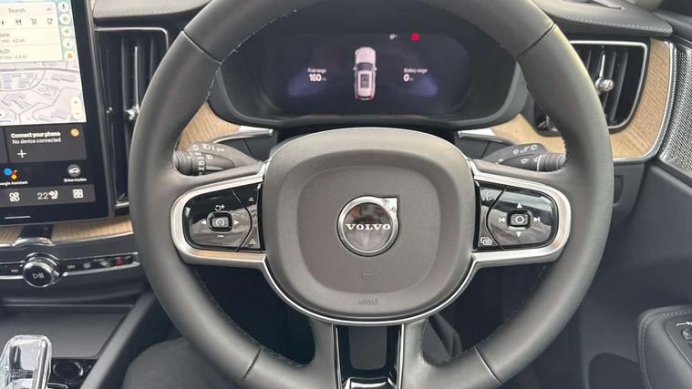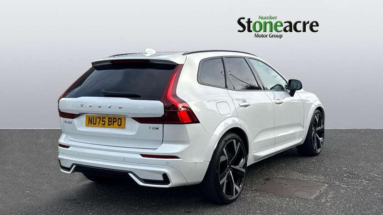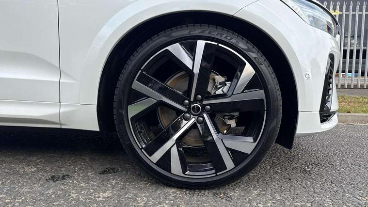 11.2" centre console touch screen, 12.3" Progressive Driver Display, 360 degree surround view parking camera with side proximity sensors, Adaptive cruise control, Adjustable steering wheel force, Android auto (Wired), Apple carplay (wired), Bluetooth handsfree system, Drive mode settings, Driver alert control with lane keeping aid, Emergency services call system, Front and rear park assist, Google Automotive Services, Intelligent speed assistance, Oncoming Lane Mitigation, PAS, Power operated tailgate with handsfree opening and closing, Service interval indicator, Speed limiter, Speed sensitive steering, Trip computer, Volvo cars services with app, Volvo on call with App, Wireless/Inductive Mobile Phone Charging, 2 phase on board charger 6.4kW (home charging limited to 3.7kW), 6m 3 phase 16amp Type 2 / mode 3 charge cable, 8 speed automatic transmission with start/stop + manual change functions, Active four-C chassis + four corner adaptive damper with electronic rear air suspension, Electric rear axle drive, Recharging port located in nearside front wing, DAB Digital radio, Low speed exterior sound speaker, Premium Sound by Bowers and Wilkins, dirac live, dolby pro logic II surround sound, 14 speakers/1100W output and subwoofer, Steering wheel remote infotainment controls, Active bending headlights with adaptive shadow technology, Adaptive brake lights with high level LED brake lights, Auto dimming interior + exterior mirrors, Automatic headlight levelling system, Automatic LED Headlights + Active high beam incorporating daytime running lights, Dark tinted windows for rear side windows and cargo area, Electric adjustable/heated/auto power folding door mirrors, Electric front+rear windows, Front aluminium tread plates, Headlight cleaning system, High gloss black door mirrors and window surround, High gloss black front and rear bumper decoratives, High gloss black mesh front grille with high gloss black surround, Home safe and approach lighting, Integrated roof rails in high gloss black, Power glass tilt and slide panoramic sunroof with sun curtain, Puddle lights, Rain sensor with automatic windscreen wiper activation, Rear side wing doors, Rear wiper, Roof antenna, Roof spoiler, Tinted windscreen, Visible VIN plate, 12V socket in front tunnel console and luggage compartment, 2 zone electronic climate control with Clean zone air quality system and pollen filter, 3 seat bench in 2nd row, A-pillar parking ticket holder, Air purifier particulate matter (PM) 2.5 filter, B Pillar ventilation, Bright metal luggage scuff plate, Centre console cupholders and storage, Charcoal floor mats, Front and rear courtesy lights, Front and rear door pocket illumination, Front cupholder illumination, Front footwell illumination, Front reading lights, Front seat cushion extensions, Glovebox compartment with illumination, Head restraints for all seats, Heated front seats, Heated steering wheel, Height/reach adjustable steering column, Illuminated luggage compartment, Illuminated vanity mirrors + ticket holder, Inner door release handle illumination, ISOFIX attachment on outer rear seats, Load cover, Load protection net, Multi directional lumbar support, Power driver seat with memory + exterior mirrors memory, Power folding rear headrests, Power passenger seat with memory, Rear armrest with cupholder, Rear footwell and front and rear side step illumination, Rear reading lights, Rear seat concealed storage, Single front passenger seat, Tailgate illumination and ambient door lighting, Underfloor stowage compartment, Versatile split folding rear seat - 60/40, Driver assist pack without Adaptive cruise control - XC60, 5 three point seatbelts, City safety with steering support with Pedestrian + cyclist + front collision warning with full auto brake and rear auto brake, Drivers knee airbag, Dual stage driver/passenger airbags, Electronic parking brake with auto hold, First aid kit, Front seats SIPS airbags, Hill descent control - Off-road drive mode, Hill start assist, IC (Inflatable Curtains) - Full Length, Passenger airbag cut-off device, Power child locks on rear doors, Run off Road Mitigation, Run off Road Protection, Seatbelt reminder and pretensioners, SIPS (Side Impact Protection System), Slippery road and hazard light alert, Stability and Traction Control with Spin control, Engine Drag Control and Corner Traction Control, Tyre pressure monitoring system, Vehicle deceleration control with Anti-lock Brake System, Electronic Brake Distribution and Emergency Brake Assist, Warning triangle, WHIPS whiplash protection system - front, Anti-theft alarm including immobiliser/volume sensor + level sensor, Key integrated remote control central locking + fuel flap with deadlocking system and auto open/close power windows, Keyless Drive (includes Keyless Entry and Keyless Start), Locking wheel nuts, Private locking for tailgate, Tailored instrument panel with contrast stitching, Summer tyres, Tyre sealant kit + 12v compressor,