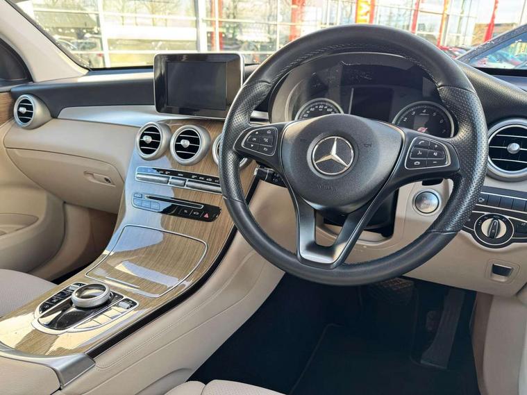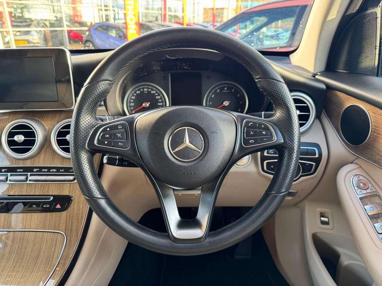 7" colour screen, Active park assist with parktronic system, Attention assist, Bluetooth interface for hands free telephone, Collision prevention assist plus, Crosswind Assist, DYNAMIC SELECT with a choice of driving modes (ECO, Comfort, Sport, Sport+ and Individual), Garmin Map Pilot navigation system with SD card, touchpad and voice control, Instrument cluster with 5.5-inch TFT multi-function display, Multi function trip computer, Outside temperature gauge, Power opening/closing tailgate, Remote boot release, Service indicator (ASSYST), Speed sensitive steering, 66 litre fuel tank, 5 speakers, DAB Digital radio, Frontbass loudspeakers, Mercedes Audio 20 radio/single CD + telephone keypad, USB connection, Adaptive brake lights, Aerodynamic rear spoiler, Aluminium roof rails, Automatic headlights, Body colour door mirrors, Body coloured bumpers, Chrome exterior trim, Electric panoramic sunroof with sunblind, Electric windows one touch open/close, Electrically adjustable and heated door mirrors, Exhaust tailpipe finisher, LED daytime running lights, LED rear lamps, Privacy glass (to rear of B post), Rain sensor windscreen wipers, Range adjustable headlights, Rear wiper, Tinted glass all round, 2 cupholders in front centre console, 2 way rear head restraints, 3 spoke leather steering wheel, 4 way adjustable front head restraints, 4 way electric lumbar support for driver and front passenger, 40:20:40 split folding rear seats, Ambient lighting, Auto Mercedes-Benz child seat recognition sensor, Automatic climate control, Dividing net - rear, Electric front seat height adjustment, Front armrest with storage box, Front door sills with Mercedes Benz lettering, Gearshift paddles, Heated front seats, Height/reach adjustable steering column, Lockable/illuminated glovebox, Multifunction steering wheel, Rear top tether child seat ISOFIX attachment, Sunvisors with illuminated vanity mirrors, Velour floormats, Easy-pack load compartment cover, Interior lighting pack - GLC, Memory pack - GLC, Mirror pack - GLC, Storage pack - GLC, 3 rear 3 point seatbelts, ABS with Brake Assist, Active bonnet, Adaptive brake system, Child proof door locks, Drivers knee airbag, Dual stage driver/passenger airbags, Electronic parking brake, ESP with ASR, Front and rear seatbelt reminder, Front passenger seat occupancy sensor, Front side airbags, Hill hold function, Tyre pressure monitoring system, Warning triangle and first aid kit, Window airbags, Alarm system/interior protection/immobiliser, Automatic door locking, Keyless entry and keyless start, Remote central locking, Tyre inflation kit,