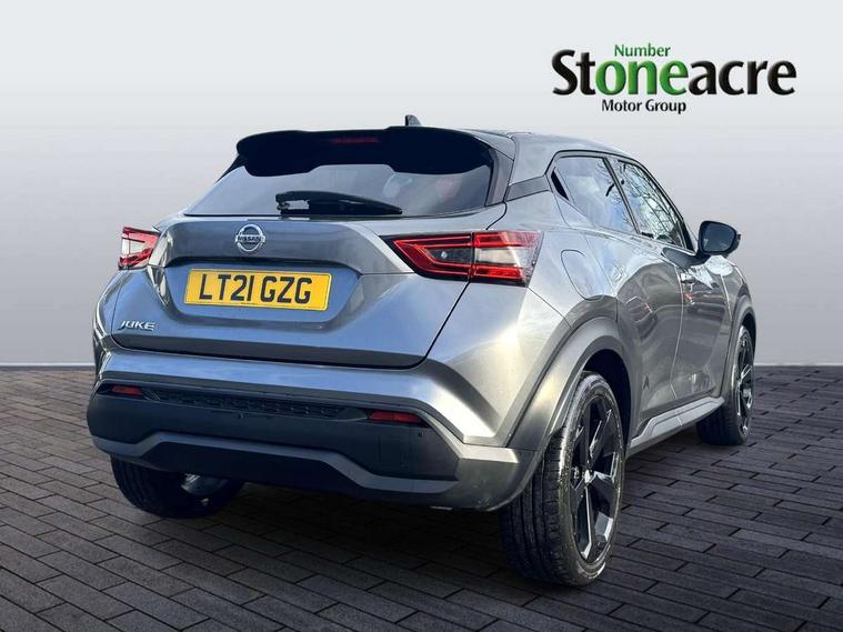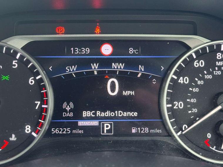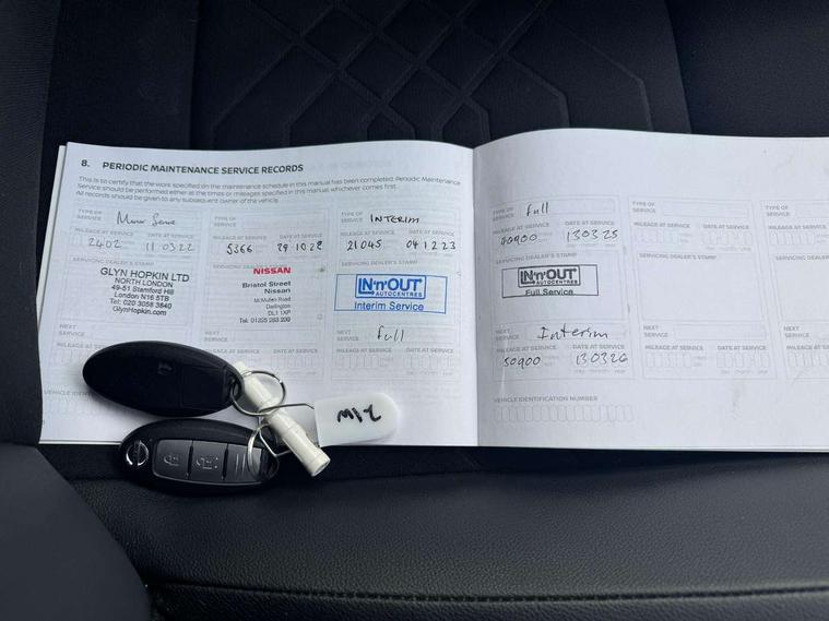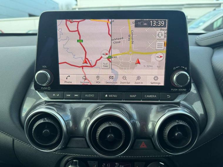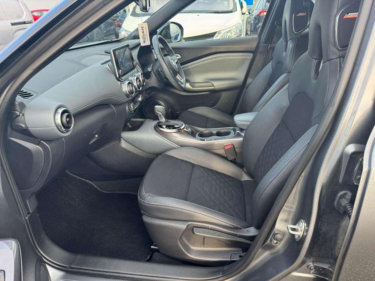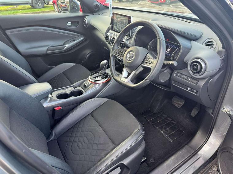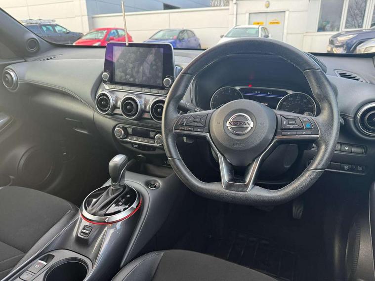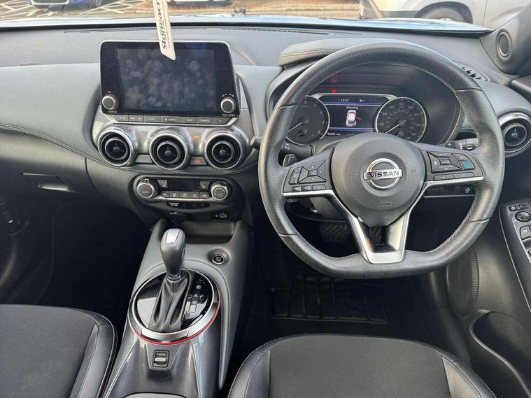 7" full colour TFT screen combimeter, 8" infotainment colour display with touch screen, Apple CarPlay and Google Android auto, Drive modes select (Eco, normal and sport), Emergency and breakdown call, Front parking sensor, Idle start/stop system, Intelligent lane intervention, Lane departure warning system, Nissan connect nav with TomTom traffic, Nissan connect services and Wifi connection, Outside temperature sensor, Power Steering, Rear parking sensor, Traffic sign recognition, Trip computer, Gasoline particulate filter, Bluetooth system, USB, Aux-in and 12V socket, Bose personal plus audio system with 8 speakers(4 speakers and 2 headrest speaker for driver and passenger seats), Bose personal sound stage control, DAB Digital radio, Rear console USB port, Auto dimming interior rear view mirror, Automatic hazard signal with emergency stop signal, Body colour bumpers, Body colour door handles, Electrically adjustable door mirrors with integrated indicators, Follow me home headlights, Front and rear electric window with one touch driver window, Heated and auto folding door mirrors, High beam assist, LED daytime running lights, LED front fog lights, LED headlamps, LED rear fog lamp, LED rear lamps, Rain sensor windscreen wipers, Rear privacy glass, Rear spoiler, Rear wiper, Thermaclear heated windscreen, Three blink turn signal, 3 height adjustable rear headrests, 60/40 split folding rear seat, Automatic climate control, Card holder on driver sunvisor, Cloth/Synthetic leather upholstery, Door ambient lighting, Driver and passenger sliding and reclining seats, Driver seat back pocket, Driver side rear coat hanger, Driver/passenger sunvisors and vanity mirrors, Front and rear cabin lighting, Front armrest, Front door pockets with bottle holders, Front head restraints, Front passenger isofix child seat anchorage point, Front/rear passenger grab handles, Gear console ambient circle lighting, Grey synthetic leather kneepad, Heated front seats, Height adjustable driver's seat, Height adjustable passenger seat, Internal chrome door handles, Leather gearshift knob, Leather steering wheel, Luggage board, Luggage space lighting, Monoform sporty seats, Multifunction steering wheel, Passenger seat back pocket, Rear door bottle holders, Steering wheel mounted gearshift paddles, Telescopic steering wheel adjustment, Two cupholders in front centre console, Two rear isofix child seat anchorage points with top tether, Voice recognition switch on steering wheel, Welcome light and console tray ambient lighting, ProPilot pack - Juke, ABS with EBD and brake assist, Active ride control, Active Trace Control, Driver and passenger airbags, Driver and passenger side airbags, Electric handbrake with auto hold function, Electronic Stability Programme (ESP), Front and rear curtain airbags, Height adjustable seatbelts, Hill start assist, Intelligent emergency braking with pedestrian and cyclist recognition, Seatbelt reminder for driver/front passenger and rear seats, Single tone horn, Three 3 point rear seatbelts, Traction control, Tyre pressure monitoring system, VDC Dynamic Vehicle Control, Ventilated rear brake discs, Alarm, Immobiliser, Intelligent Key with push button starter, Remote central locking,