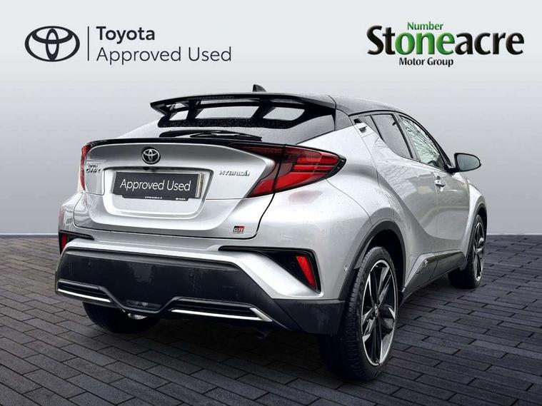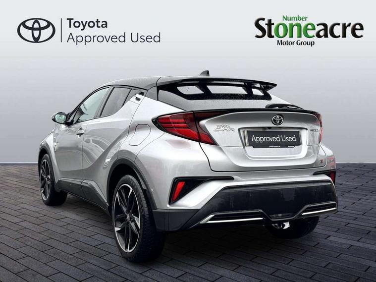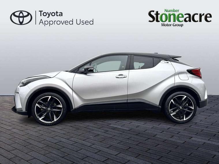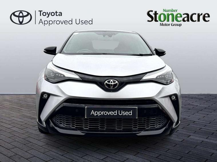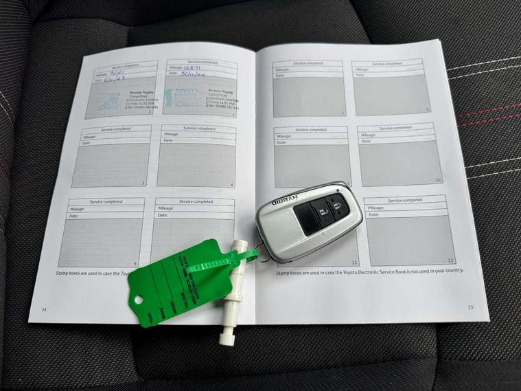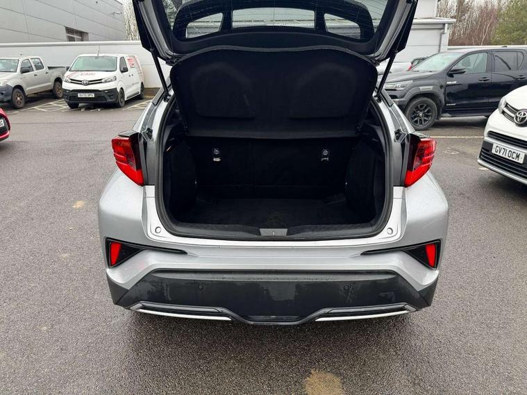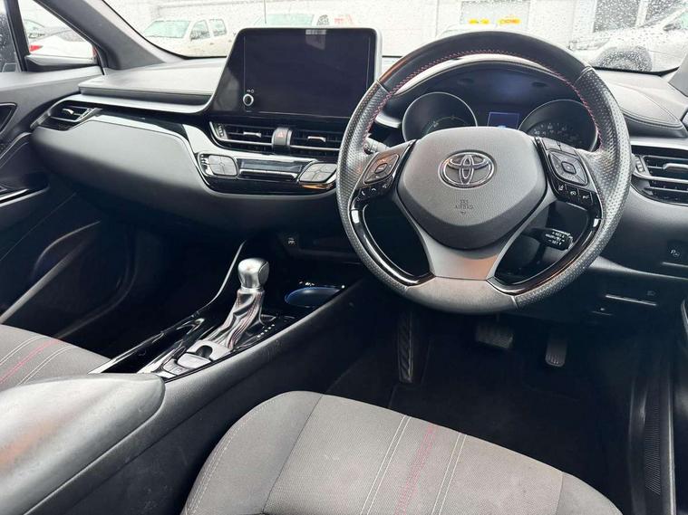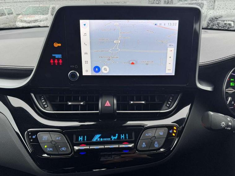 4.2" coloured TFT screen for multi-information display, Adaptive cruise control, Bluetooth connectivity, E-call, Electric power steering, Hybrid system indicator, Lane departure alert with steering control, Lane trace assist, Push button tailgate release, Remote boot door release in cabin, Remote boot door release in key, Reversing camera, Road sign assist - RSA, Simple Intelligent parking assist, Smart voice assist, Touch 2 Go navigation system, Trip computer, Voice recognition, Wireless smartphone integration, Vehicle Stability Control (VSC), 6 speakers, AM/FM radio, DAB Radio (Digital Audio Broadcasting), Toyota touch 2 multimedia system with 8" display, USB connector, Wi-fi connectivity, Adaptive front light system, Adaptive LED Headlights, Anti-jam protection on power windows, Auto high beam, Auto up and down function on all power windows, Automatic headlight levelling, Automatic headlights, Automatic headlights cut-off, Black and body coloured rear bumper, Black upper front grille, Body colour door handles, Body colour door mirrors, Body coloured front bumper, Boot door release with push button, Chrome front lower bumper, Electric heated door mirrors, Follow me home headlights, Front and rear power windows, Front spoiler lip in black, Headlight cut off reminder, Honeycomb lower front grille, LED daytime running lights, LED fog lights, LED front light guide, LED High mounted stop light, LED rear brake lights, LED rear combination lights, Noise reduction layer on front windows and windscreen, Power adjustable door mirrors, Privacy glass, Rain sensor, Rear sequential indicators, Rear side wing doors, Rear spoiler, Rear tailgate, Rear window defogger, Rear window wiper, Shark fin antenna, UV-filter on driver and passenger windows, UV-filter on rear windows, 12v power outlet - front, 3 rear headrests, 3 seat bench in 2nd row, 3 spoke perforated leather steering wheel, 60/40 split folding rear seat, Adjustable rear headrests, Adjustable speed limiter switch on steering wheel, Assist grips front and centre pillar, Audio and telephone switches on steering wheel, Black front door assist grips, Blue ambient lighting on front cup holders, Blue ambient lighting on front doors, Boot light, Chrome interior door handles, Cloth upholstery, Driver and front passenger personal light, Driver and front passenger Whiplash Injury Lessening seats, Driver and passenger seatback pockets, Dual zone automatic air conditioning, Floor mats, Front cupholders, Front head restraints, Front sports seats, Glovebox with internal light, Hard tonneau cover, Heated driver and front passenger seats, Hooks for luggage holding net, Humidifying Nanoe air purifier, Illuminated entry system, Isofix attachments on outer rear seats, Leather gearshift, Light on driver sun visor, Light on passenger sun visor, Manual telescopic steering wheel, Manual tilt steering wheel, Manually height adjustable driver seat, Manually height adjustable front passenger seat, Manually reclining driver seat, Manually reclining front passenger seat, Manually sliding driver seat, Manually sliding front passenger seat, Microphone on front personal light, Mirror on driver sun visor, Mirror on passenger sun visor, Multimedia switches on steering wheel, Pollen filter, Power adjustable lumbar support on driver seat, Shopping bag hooks, Single front passenger seat, Slow opening on lower glovebox, Voice recognition switch on steering wheel, Tech with parking sensor pack - C-HR, 16 Disk front wheel brake, 3x3 point rear seatbelts, ABS+EBD+Brake assist, Electronic parking brake, Front and rear seatbelt reminder, Front passenger airbag on/off switch, Hill start assist control (HAC), Pre collision system with pedestrian detection, Pre-tensioners and force limiters, Rear door child safety locks, SRS Airbags - Driver + Front passenger, front side, front and rear curtain and driver's knee airbags, Toyota safety sense, Tyre pressure monitoring system, Tyre pressure warning system, Acoustic vehicle alert system (AVAS), Glass-breaking alarm sensors, Immobiliser, Intrusion alarm, Intrusion sensor, Motion sensor alarm, Power door locks, Power passenger window lock, Remote central locking, Black lower dashboard, Black upper dashboard, Piano black console, Silver deco line on upper dashboard, 19" Black machined alloy wheels, Tyre repair kit,