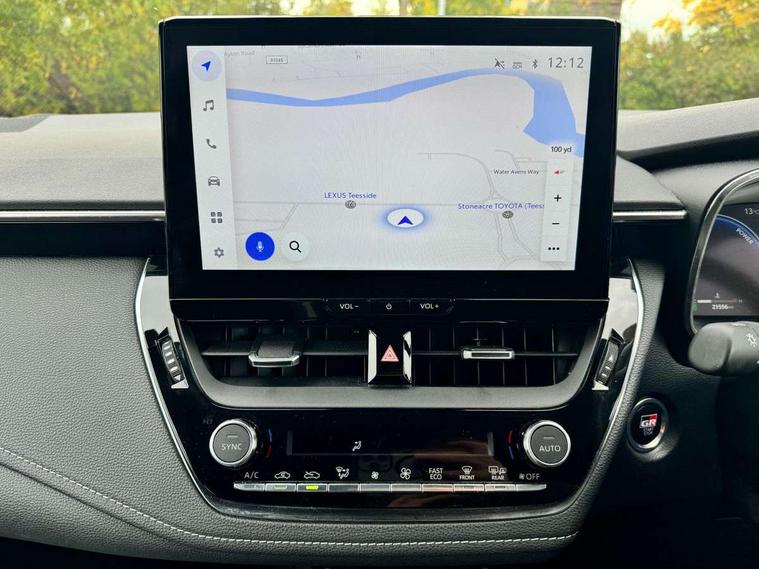 10.5" Multimedia display screen, Attention assist, Bluetooth telephone connectivity, Connected car functionality upgrade, tracker, remote status and e-care, Drive mode select (Eco, Normal), E-call, Electrically assisted power steering, EV drive indicator, Front and rear parking sensors with auto brake, Full Digital 12.3" TFT Digital Combimeter, Key reminder warning, Lane Departure Alert (LDA) switch on steering wheel, Memory on adjustable speed limiter, MyT connected services, Proactive driving assist (PDA), Reversing camera, Smart entry and push button start with GR Logo, Smartphone integration with Apple CarPlay and wired android auto, Tailgate, Toyota remote services, Toyota smart connect navigation, Wireless charger, Gasoline particulate filter, Vehicle Stability Control (VSC), 6 speakers, AM/FM radio, DAB Digital radio, Front USB-C in centre console, Front USB-C in dashboard, Smart voice assist/ Voice recognition, USB and Aux in connectors + 12V front outlet, Anti-jam protection on power windows, Auto up and down function on all power windows, Automatic folding mirrors, Automatic headlights with high beam assist, Black centre and side air vents, Black toyota logo in front, Body coloured bumpers, Body coloured door mirrors, Body coloured outside door handles, Dark chrome lower grille, Electrochromatic mirror, Follow me home headlights, GR Sport dark chrome front mesh grille and black rear grille, GR Sport exclusive under guard, GR sport scuff plates, LED daytime running lights, LED dual beam projector headlights, LED front fog lights, LED High mounted stop light, LED rear combi lights with LED lightguide, Manual headlight levelling system, New grille pattern, Noise reduction layer on windscreen, Piano black diffuser, Power adjustable heated door mirrors, Power front windows, Power rear windows, Privacy glass with UV filter, Rain sensing wipers, Rear side wing doors, Rear window defogger, Rear window wiper, Reverse tilting door mirrors, Rocker and door lower moulding, Roof spoiler, Satin chrome insert on front air vents, Satin chrome insert on front door assist grips, Satin silver front spoiler, Shark fin antenna, Tailgate release with push button, Time adjustment on intermittent wiper, Turning signal integrated indicators in door mirrors, Unique lower skirt, Unique side rocker with black insert, UV-filter on driver and passenger windows, 2 Shopping bag hooks in luggage compartment, 3 rear headrests, 3 seat bench in 2nd row, 3 spoke leather steering wheel with satin insert/red stitching + gear knob, 4 tie down hooks in luggage compartment, 60/40 split folding rear seat, Adaptive cruise control (ACC) switch on steering wheel, Adjustable speed limiter switch on steering wheel, Audio, multimedia and telephone switches on steering wheel, Black armrest on centre console box, Black gear shift console, Boot light, Boot underfloor storage, Centre room light, Driver and front passenger personal light, Driver and passenger assist grip, Driver and passenger seatback pockets, Driver and passenger sun visor with mirror and light, Dual zone automatic air conditioning with ECO mode switch, Fabric/synthetic leather upholstery, Front and rear cup and bottle holders, Front door pockets, Front head restraints, Front passenger seat, Front sliding synthetic leather armrest, GR Sports seats with partial leather bolsters, Heated seats, Illuminated entry system in room lamp, ISOFIX seat fixing (2 fixings on rear outer seats), Manual height adjustable for driver and front passenger seat, Manually tilt with sliding driver and front passenger seat, Paddle shifts, Parcel shelf, Pollen filter, Power window switches with satin chrome inserts, Rear armrest with 2 cupholders, Rear passenger coat hooks (2), Red stitching on gear shift, Remote air conditioning, Satin chrome inside door handles, Satin chrome surround on speedometer, Sliding armrest on centre console box, Slow opening glovebox with lights, Textile floor mats, Tilt/telescopic steering column, Voice recognition switch on steering wheel, Whiplash Injury Lessening (WIL) feature (active headrest) for seats, White ambient lighting on open tray and front cup holder, Toyota safety sense 3 pack - Corolla, 3x3 point rear seatbelts, Adjustable driver and front passenger seat belt extender to top anchor point, Anti lock braking system + Electronic brake force distribution, Brake assist function, Child locks on rear doors, Downhill Assist Control (DAC), Electronic parking brake, Emergency brake light signal (EBS), Front passenger airbag on/off switch, Front seatbelt reminder, HAC-Hill-start Assist Control, Rear seat belt reminder, Seatbelt pretensioners and force limiters, Supplemental restraint system (SRS) 7 airbags - dual driver, dual side curtain, side impact and driver knee airbags, Traction control, Tyre pressure warning system, Acoustic vehicle alert system (AVAS), Alarm with motion sensor and immobilizer, Power passenger window lock, Remote central locking + deadlocks, GR Sport interior and exterior styling, Satin chrome dash trim, Soft touch texture on upper dashboard, Stitching on lower dashboard, 18" black machined face 10 spoke alloy wheels, Tyre repair kit, Unique wheel finish with red wheel cap,