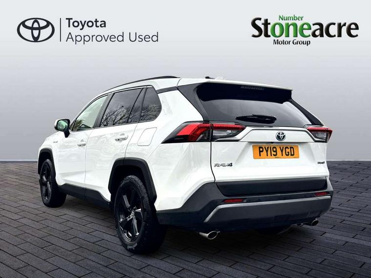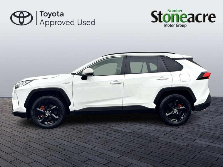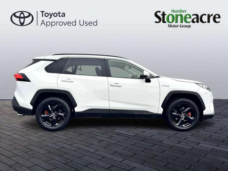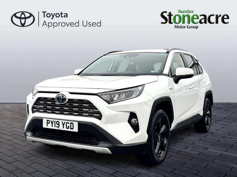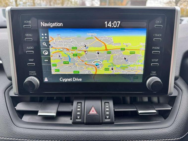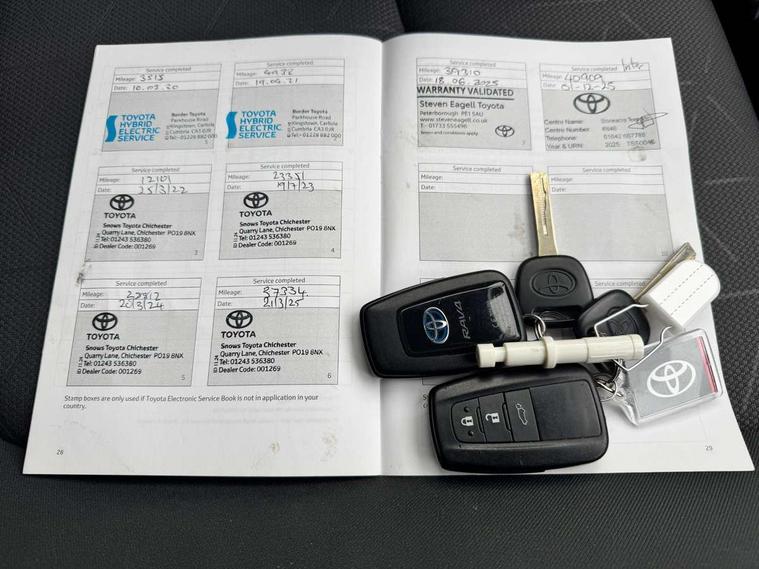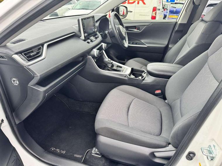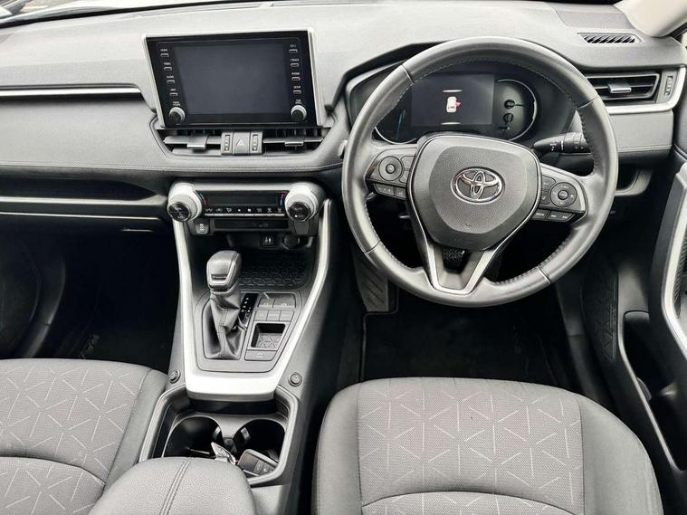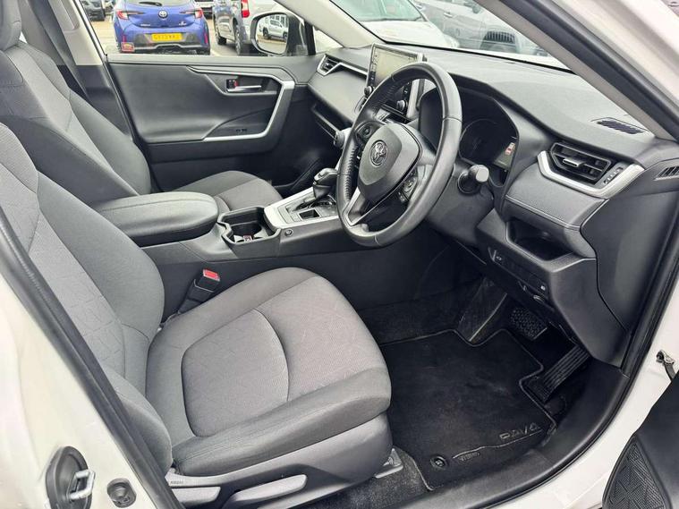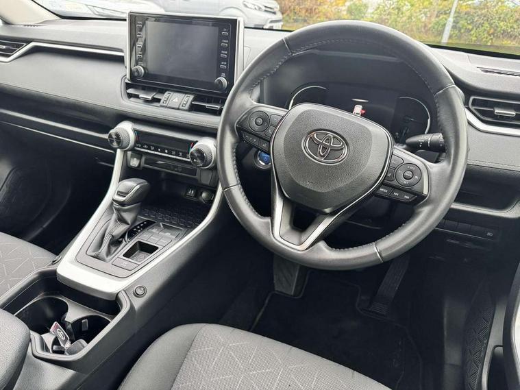 7" colour TFT display, Adaptive cruise control with lane trace assist, Adjustable speed limiter, Bluetooth system, Cyclist Detection, Drive mode selector, eCall emergency call system, ECO-driving indicator, Electric power steering, Hybrid system indicator, Lane departure warning system, Lights on warning, Night Time Pedestrian Detection, Pedestrial detection, Power boot opening and closing, Rear parking camera, Rear parking sensors, Remote boot door release in cabin, Tachometer, Touch 2 Go navigation system, Traffic sign recognition, Trip computer, Voice control system, Vehicle Stability Control (VSC), 6 speakers, 8" Multimedia display touch screen, Auxiliary socket for external MP3 player, DAB audio, Steering wheel mounted audio controls, Toyota touch media system, USB connection, Auto dimming interior mirror, Auto high beam, Automatic headlamp levelling, Automatic headlights, Automatically retractable door mirrors, Black roof rails, Body colour door handles, Body colour door mirrors, Body colour rear spoiler, Body coloured bumpers, Body coloured Shark-fin antenna, Electric adjustable door mirrors, Emergency brake-light signal (EBS), Follow me home headlights, Front fog lights, Headlight cleaners, Heated door mirrors, LED daytime running lights, LED High mounted stop lamp, LED rear lights, Meshed upper front grille, Parabola LED headlights, Power front windows, Power rear windows, Privacy glass, Rear screen wiper - intermittent, Rear windscreen defogger, Silver front under-run, Silver rear under-run, Trailer sway control, Turning signal integrated indicators in door mirrors, 3 rear headrests, 60/40 split fold rear seat back, Boot light, Clean air filter, Cloth upholstery, Driver and front passenger personal light, Driver and front passenger Whiplash Injury Lessening seats, Driver and passenger sunvisors with illuminated vanity mirrors, Dual sided deck board in boot, Dual zone automatic air conditioning, Floor mats, Folding rear centre armrest, Front and rear bottle holders, Front centre armrest, Front footwell lights, Front headrests, Front/rear roof mounted assist grips, Grey roof lining, Isofix child seat preparation, Leather gear shift with chrome surround, Manual telescopic and tilt 3-spoke leather steering wheel with Chrome insert, Manually height-adjustable sliding and reclining driver seat, Manually reclining and sliding front passenger seat, Pollen filter, Rear coat hooks, Rear door armrests, Rear passenger air vents, Reclining rear seats, Satin chrome interior door handles, Sunglasses holder, Parking pack - Rav4, 3x3 point rear seatbelts, ABS/EBD, Adjustable front driver and passenger seat belt extender, Brake assist function, Child proof door locks, Collision mitigation braking system, Driver/Front Passenger airbags, Driver/front passenger side airbags, Drivers knee airbag, Electronic parking brake, Electronic Stability Programme (ESP), Emergency brake light system (EBS), Front and rear curtain airbags, Front and rear seatbelt reminder, Hill start assist, Passenger airbag cut-off device, Seatbelt pretensioners with load limiters, Traction control, Tyre pressure warning, Alarm/immobiliser, Glass-breaking alarm sensors, Light - on and Key in reminder, Remote central locking, Smart entry + Smart start, Speed sensitive auto door locking, Tilt detection sensors, Piano black centre console with silver insert, Soft-touch black lower dashboard, Soft-touch black upper dashboard with silver insert, Full size spare wheel,