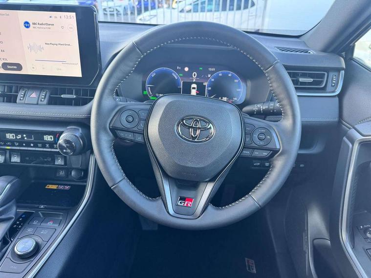 12.3" Digital Combimeter, 360 degree panoramic view monitor, Analog tachometer, Android Auto, Blind spot monitoring with rear cross traffic alert with brake assist, Bluetooth system, Cyclist Detection, Digital speedometer, Drive mode selector, Driver attention alert system, eCall emergency call system, ECO-driving indicator, Electric power steering, EV audible alert, Full range intelligent adaptive cruise control, Head up Display, Hybrid system indicator, Intelligent front and rear parking sensors and intelligent clearance sonar with automatic braking, Lane departure alert with steering control, Lane trace assist, Lights on warning, Memory on adjustable speed limiter, MirrorLink, My T Connected services, Night Time Pedestrian Detection, Power boot opening and closing, Remote boot door release in cabin, Remote boot door release in key, Road sign assist - RSA, Smartphone hazard lights notification, Tailgate, Toyota safety sense 2.5, Toyota smart connect navigation, Traffic sign recognition, Trip computer, Voice control system, Wireless Mobile Phone Charger, 6.6 kw fast charger, 7.5m cable with home charging plug, AWD - i, Vehicle Stability Control (VSC), 10.5" Toyota smart connect multimedia with wireless smartphone integration incl apple car play, 6 speakers, Auxiliary socket for external MP3 player, Digital audio broadcast (DAB)+, Gloss black surround on multimedia display, Multimedia Road Events, Rear USB connection, Toyota touch media system, USB in front armrest, Adaptive automatic high beam, Anti-jam protection on power windows, Auto dimming interior rear view mirror, Auto up and down function on power windows, Automatic headlights, Automatic wipers, Automatically retractable door mirrors, Black painted upper front grille, Black roof rails, Body colour door handles, Body colour rear roof spoiler, Body coloured door mirrors, Body coloured Shark-fin antenna, Door mirror puddle lights, Dual exhaust pipes, Electric adjustable door mirrors, Electric heated door mirrors, Emergency brake-light signal (EBS), Follow me home headlights, Front wipers with variable intermittent facility, Glass black protection moulding on side doors, GR sport badge on upper front grille, GR SPORT Badging on tailgate, GR Sport black front and rear bumper, GR Sport LED front fog lights, GR sport upper front grille, Gunmetal front and rear under-run, LED daytime running lights, LED dual beam projector headlights, LED front light guide, LED High mounted stop lamp, LED Indicators, LED rear brake lights, LED rear combination lights, PHEV badge in rear, Power front windows, Power rear windows, Privacy glass, Rear screen wiper - intermittent, Rear side wing doors, Rear windscreen defogger, Smartphone remote power window operation, Trailer sway control, Turning signal integrated indicators in door mirrors, 1.5L front and rear bottle holder, 12 volt front socket, 12V power outlet - Boot, 220v power socket in boot, 2x Rear coat hooks, 3 rear headrests, 3 seat bench in 2nd row, 60/40 split fold rear seat back, Adjustable speed limiter switch on steering wheel, Array microphone, Black roof lining, Clean air filter, Driver and front passenger personal light, Driver and front passenger Whiplash Injury Lessening seats, Driver and passenger seatback pockets, Driver and passenger sunvisors with illuminated vanity mirrors, Driver seat memory function, Dual sided deck board in boot, Dual zone automatic air conditioning, Energy saving heat pump, Folding rear centre armrest, Front and rear cup holders, Front centre armrest, Front headrests, Front leather armrest, Front/rear roof mounted assist grips, GR sport floor mats, Heated driver and front passenger seats, Heated rear seats, Heated steering wheel, Illuminated entry system, Isofix child seat preparation, Leather gear shift with chrome surround, LED boot light, LED centre room light, Lockable glovebox, Luggage area tonneau cover, Manual telescopic and tilt 3-spoke leather steering wheel with Chrome insert, Multimedia switches on steering wheel, Paddle shifter, Pollen filter, Power height-adjustable sliding and reclining for front passenger seat, Power height-adjustable sliding reclining and lumbar support for driver seat, Rear console box, Rear door armrests, Rear passenger air vents, Rear view display in display audio screen with dynamic guide lines, Reclining rear seats, Remote air conditioning, Retractable tonneau cover, Satin chrome interior door handles, Single front passenger seat, Suede/synthetic leather upholstery with sport seats, Sunglasses holder, Telephone and voice recognition switches on steering wheel, White ambient lighting in footwell, White ambient lighting on front cup holders, White ambient lighting on open tray, 3x3 point rear seatbelts, ABS/EBD, Acoustic vehicle alerting system, Adjustable front driver and passenger seat belt extender, Brake hold function, Child proof door locks, Collision mitigation braking system, Driver/Front Passenger airbags, Driver/front passenger side airbags, Drivers knee airbag, Electronic parking brake, Electronic Stability Programme (ESP), Front and rear curtain airbags, Front and rear seatbelt reminder, Front passenger airbag detector, Hill start assist, Passenger airbag cut-off device, Pedestrian detection, Pre collision system, Seatbelt pretensioners with load limiters, Supplemental restraint system (SRS) airbags, Traction control, Tyre pressure warning, Glass-breaking alarm sensors, Immobiliser, Intrusion alarm, Light - on and Key in reminder, Motion sensor alarm, Power door locks, Remote central locking, Smart entry and GR push button start, Smartphone remote door lock, Speed sensitive auto door locking, Tilt detection sensors, Black centre air vent surround, Gloss black centre console, Open tray on passenger dashboard, Soft-touch black upper dashboard with silver insert, Soft-touch texture on lower dashboard, 19" 5-double spoke GR Sport black alloy wheels, Tyre repair kit,