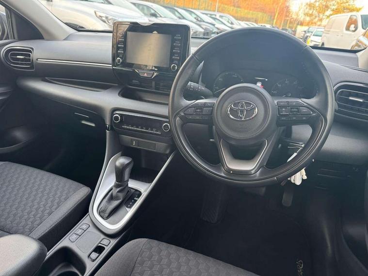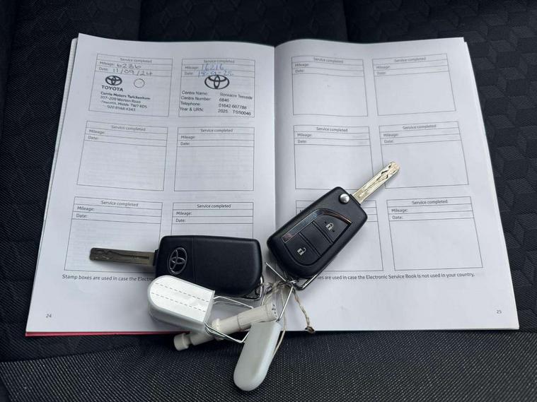 4.2" coloured TFT multi information display with analogue speedometer, Adaptive cruise control, Adjustable speed limit with speed warning, Bluetooth connectivity, E-call, Electric power steering, Hybrid energy display, Multi information display switches on steering wheel, Reversing camera, Smartphone integration with Apple CarPlay and Android auto, Tailgate, Voice recognition, Vehicle Stability Control (VSC), 4 speakers, 7" Multimedia display touch screen, Toyota Touch 2 with DAB, USB connection, Acoustic windscreen glass, Auto windscreen wipers, Automatic headlights, Body coloured door mirrors, Bulb indicators, Chequered front grille, Daytime running lights, Electric adjustable heated door mirrors, Follow me home headlights, Front auto power windows with anti jam protection, Halogen projector headlights, LED High mounted stop lamp, Manual headlight levelling, Rain sensor, Rear side wing doors, Rear spoiler, Rear wiper, Shark fin antenna, Turning signal integrated indicators in door mirrors, Variable front intermittent wipers, 3 adjustable rear headrests, 3 seat bench in 2nd row, 3 spoke leather steering wheel, 60/40 split folding rear seat, Active headrests, Adjustable boot height, Auto air conditioning, Coat hooks in rear grab handles, Cup holders (2 front & door), Data Communication Module (DCM) connected services, Fabric upholstery, Front armrest, Glovebox, Grey roof lining, Height adjustable driver's seat, Isofix seat fixing, Leather gearshift, Pollen filter, Shopping bag hooks, Single front passenger seat, Tilt/telescopic steering column, 3 point seatbelts on all rear seats, ABS+EBD+Brake assist, Electronic parking brake, Emergency brake light system (EBS), Front passenger airbag on/off switch, Front seatbelt reminder, Hill start assist control (HAC), Rear child proof door locks, Rear seat belt reminder, Supplemental Restraint System (SRS) 8 airbags: Driver & passenger's airbags, dual side curtain airbags, side impact airbags, front centre airbag, Toyota Safety Sense 2, Precollison + Night time Pedestrian & Cyclist Detection, Lane Trace Assist, Auto High Beam, Intelligent ACC & Road Sign Assist, Tyre pressure warning system, 2x Master key, Alarm/immobiliser, Remote powered central double locking doors, Soft touch instrument panel, Space saver spare wheel,