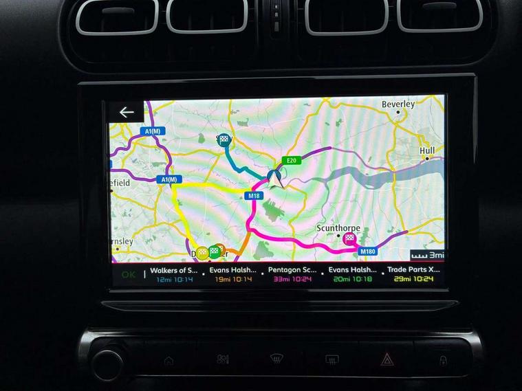 9" Touchscreen display, Citroen Connect Nav with 3D navigation, Coffee Break Alert, Cruise control with speed limiter, Driver instrument cluster including trip computer and rev counter with white text LCD display and white needles and chrome decor, eCall emergency call system, Lane departure warning system, Mirror screen with Apple CarPlay and Android auto, Outside temperature sensor, Tailgate, Traffic signs and speed limit recognition and recommendation, Variable assistance power steering, Voice recognition for radio, navigation and telephone features, Bluetooth hands free and media streaming with USB socket, Citroen connected DAB radio with 6 speakers, Steering wheel mounted controls for stereo and telephone, 3D effect LED rear lights, Automatic Eco LED headlights, Automatic lights and windscreen wipers, Black roof bars, Body colour painted door handles, Chrome chevrons front grille, Electric front windows + one touch + anti-pinch, Electric rear windows with one touch/anti-pinch, Electrically adjustable door mirrors, Electrically folding door mirrors, Fog lights integrated into front bumper, Front and rear body coloured bumpers, Heated door mirrors, Integrated roof spoiler, LED daytime running lights, LED third brake light, Painted door mirrors to match colour pack, Rear side wing doors, Rear wiper, Roof aerial, Tinted rear windows and rear quarterpanel glass, Variable front intermittent wipers, 12V socket in rear of vehicle, 60/40 split folding rear seat, Automatic air conditioning, Boot light, Centre console with closed storage and chrome insert, Driver and front passenger cup holders, Driver and passenger sunvisor with courtesy mirror, Flex load/Pull out boot floor, Front and rear courtesy reading lights, Front and rear door storage, Front head restraints, Gloss black air vent surrounds and steering wheel insert, Glovebox with closable lid, Height adjustable driver's seat, Height and reach adjustable steering wheel, Manual handbrake with chrome insert, Passenger compartment headlight adjustment, Rear isofix mounting points (outside seats) with top tether, Row 2 - Three seats with individually adjustable head rests, Satin chrome interior door handles, Single front passenger seat, 3 point, height adjustable, pre tensioned front seatbelts, ABS with Electronic brakeforce distribution and Emergency braking assistance, Automatic illumination of hazard warning lights, Curtain airbags, Driver airbag, Drivers/passengers and rear seats unfastened seat belt warning, ESC (Electronic Stability Control), Front lateral airbags, Front passenger airbag, Front passenger airbag deactivation switch, Hill start assist function, Mono-tone horn, Rear door child safety locks, Three 3 point rear seatbelts, Tyre pressure monitor, Automatic door and boot locking when moving off with automatic unlocking in case of impact, Automatic locking of the vehicle (after 30 seconds if door or boot unopened), Immobiliser, Perimetric and volumetric anti theft alarm, Remote central locking + deadlocks, Vehicle locater function (headlights illuminate when button on key pressed), Compressor with puncture repair kit,
