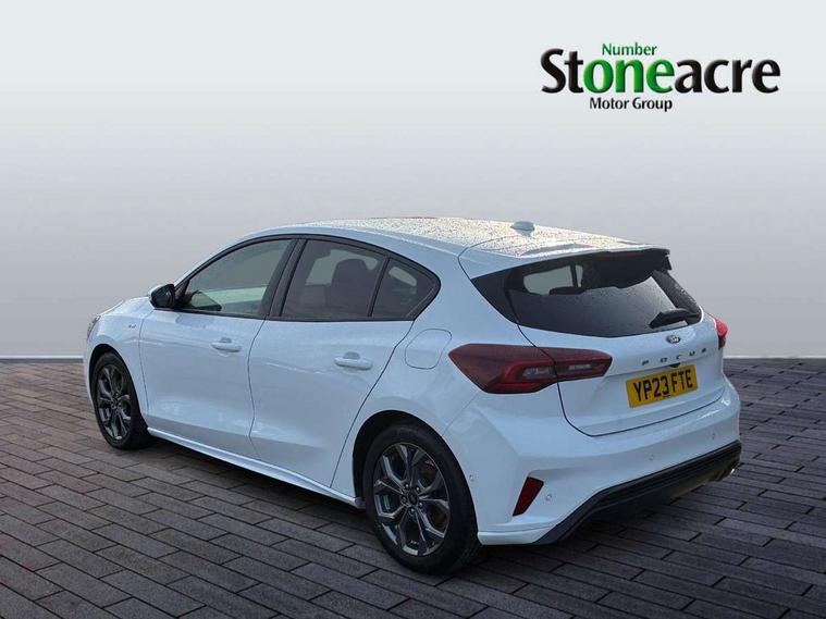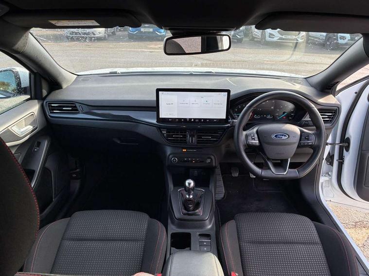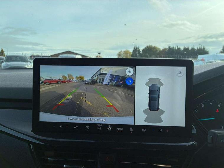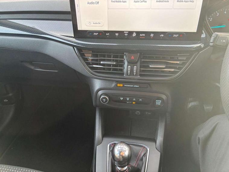 4.2" Colour TFT Ice blue illumination analogue cluster with trip computer, Bluetooth system, Digital clock, Easy fuel capless refuelling system, Eco mode, Ford SYNC 4 Navigation with 13.2'' touchscreen, DAB radio, Emergency Assistance, Apple Carplay & Android Auto, 6 speakers & FordPass Connect, Lane keeping system - lane keeping alert and lane keeping aid, PAS, Rev counter, Selectable drive mode, Service interval indicator, Sports tuned suspension, 2 USB ports, Auto headlamps (on/off), Body coloured door handles, Electrically operated front and rear windows with one touch opening and closing, Electrically operated heated power fold door mirrors with puddle lamp with side indicators, Front variable intermittent wipers with electric wash, Full fixed LED headlamps, Heated rear window, LED daytime running lamp, LED rear lamps, LED third brake light, Polished twin tailpipe, Privacy glass, Quickclear heated windscreen, Rain sensor, Rear side wing doors, Tailgate wash/wipe, Unique ST-Line grille, full bodystyling kit, and large body coloured rear spoiler, 3 rear headrests, 3 seat bench in 2nd row, Cloth upholstery, Dual zone electronic air temperature control, Height adjustable front headrests, Isofix child seat preparation, Reach + rake adjustable steering column, Single front passenger seat, 3x3 point rear seatbelts, ABS+Electronic Brake force Distribution, Auto hold function, Driver airbag, EDL traction control, Electronic parking brake, Electronic stability control, Front and rear seatbelt reminder, Front inertia reel height adjustable seatbelts with pre-tensioners, Front passenger airbag, Front side airbags, Passenger airbag deactivate switch, Post collision braking, Pre collision assist with autonomous emergency braking and pedestrian/cyclist detection, Remote/power child rear door locks, Side curtain airbags, Three rear inertia reel lap/diagonal seatbelts, Tyre pressure monitoring system, Keyless entry and keyless start, MyKey system, Remote central locking & engine immobiliser, Thatcham alarm with power door dead locks, 17" 5 spoke Rock mettalic finish alloy wheels with mini spare wheel,