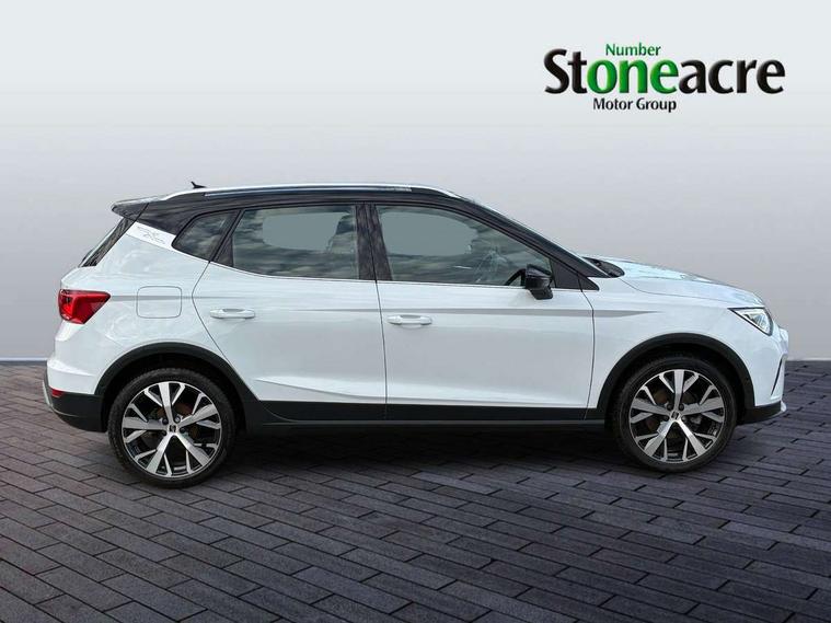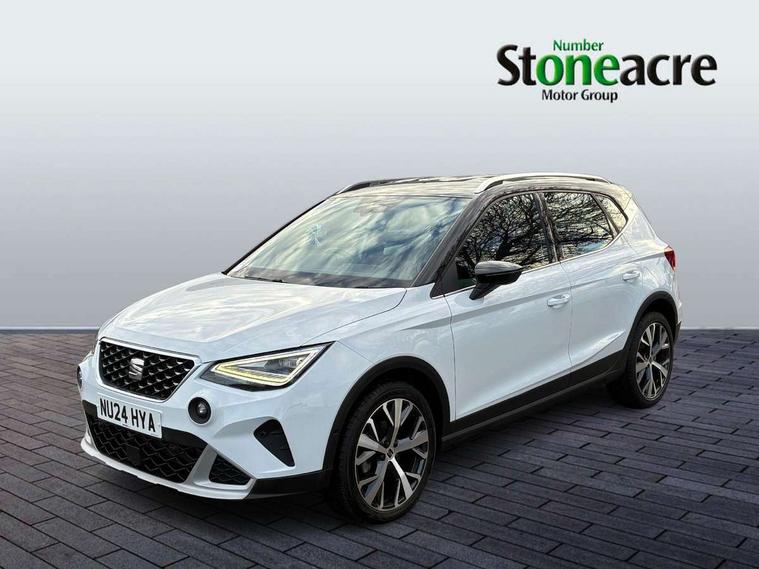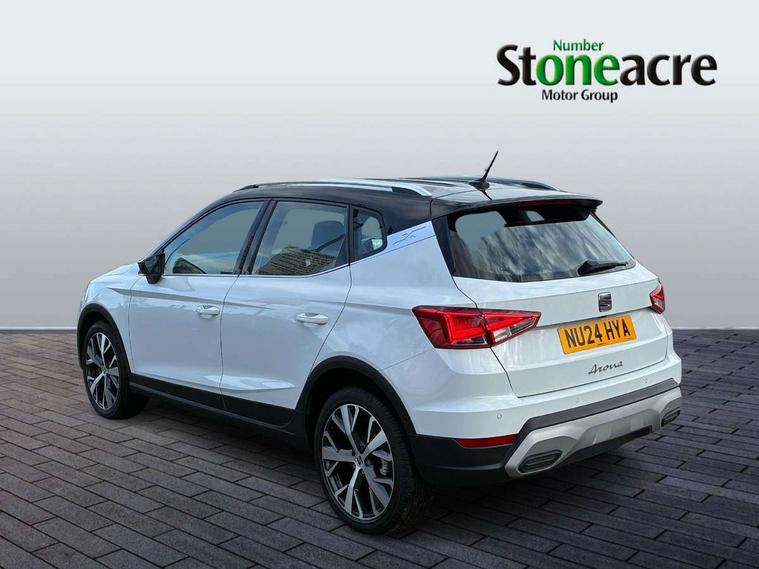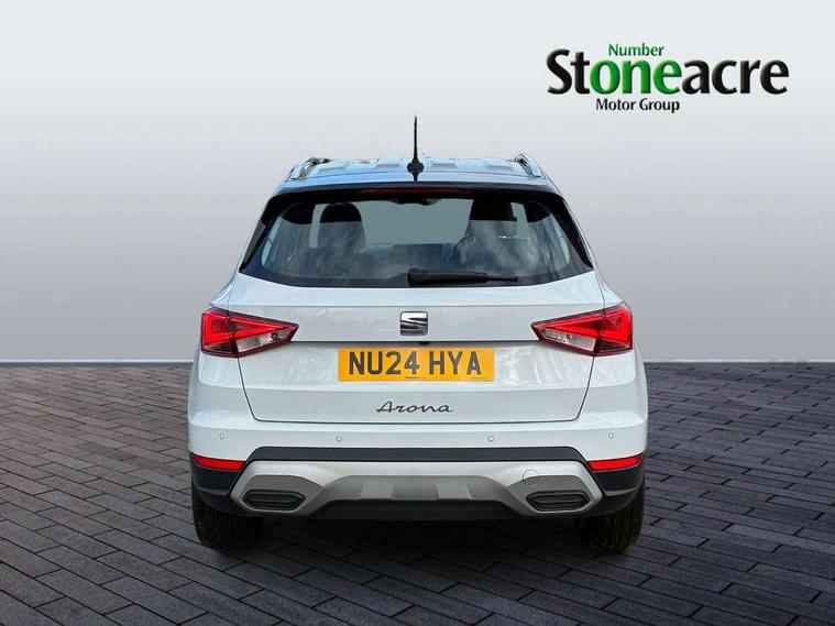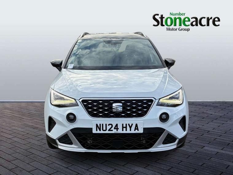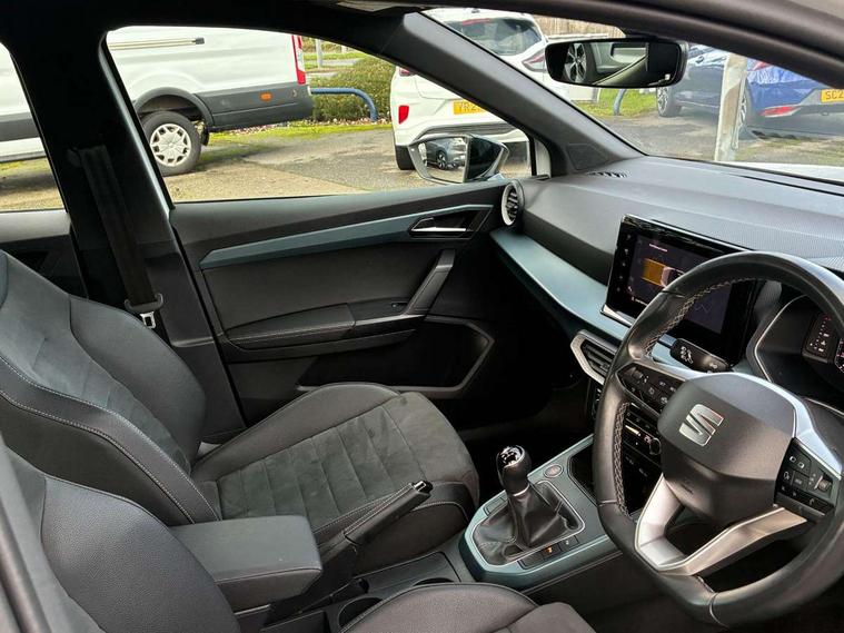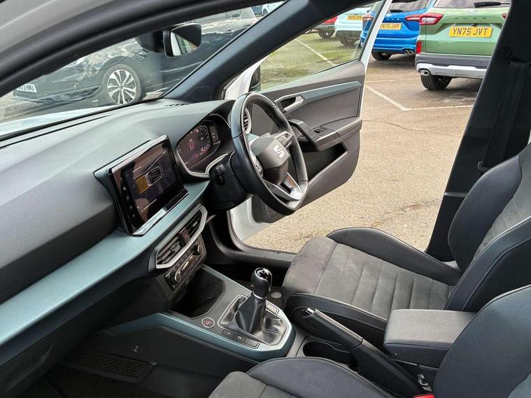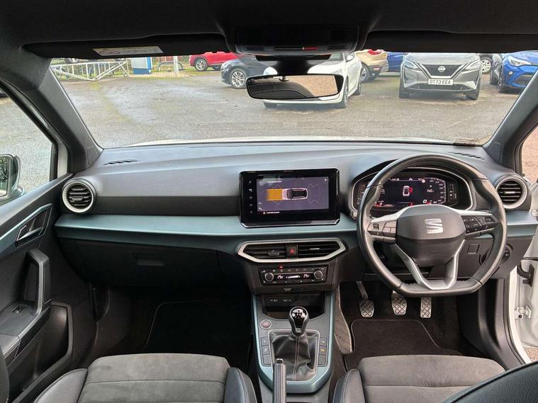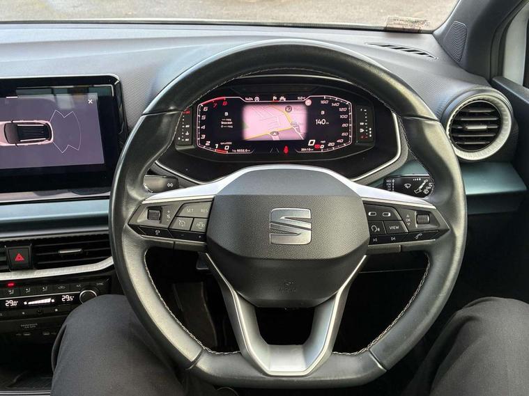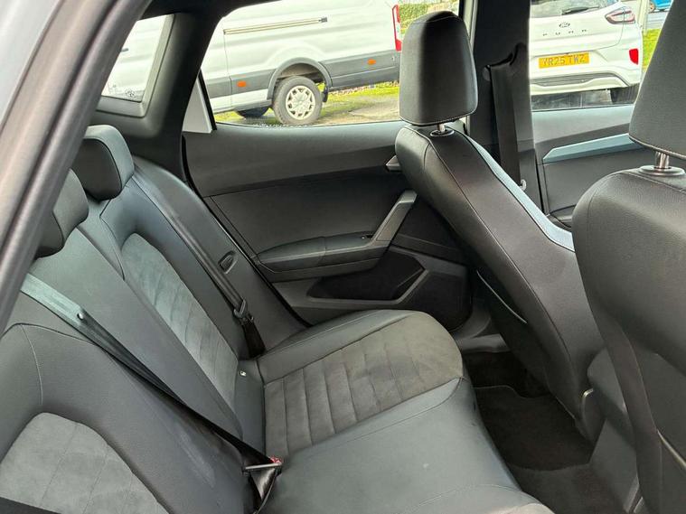 'Lights On' Reminder warning buzzer, 10" Digital cockpit, Digital clock, E-call, Electric speed sensitive power steering, Front parking sensor, Full Link Smartphone Integration with Mirror Link, Apple Car Play, Google Android Auto with USB Type C cable for Apple and Android compatibility, Lane keeping system, Low fuel warning light, Outside temperature display, Park assist system, Rear parking sensor, Rear view camera, RPM counter, Seat connect with safety, service, remote and online, Trip computer, Wireless phone charger, 9.2" colour touchscreen with navigation system, voice control and USB port (type c), Bluetooth interface for hands free and audio streaming, DAB digital radio and AM/FM radio, Steering wheel mounted audio controls, Anti theft roof antenna, Auto dimming interior rear view mirror, Automatic activation of hazard warning lights, Body coloured bumpers, Body coloured door handle inserts, Chrome roof rails and window surrounds, Electric front/rear windows, Electrically adjustable, heated and folding door mirrors, Front fog lights with cornering function and rear fog light, FULL LED automatic headlights with dynamic headlight range control, coming and leaving home, LED daytime running lights, Hidden exhaust pipe, LED rear tail lights and licence plate lights, Protective side mouldings, Rain sensing wipers, Rear side wing doors, Rear spoiler, Rear window wash/wipe, Roof colour door mirrors, Third brake light, Visible VIN plate, Windshield wiper with intermittent control and potentiometer, 2 cupholders, 3 seat bench in 2nd row, 60/40 split folding rear seat, Aircare filter, Black interior roof, Double boot floor, Driver sunvisor with covered mirror + card holder, Dual zone climate control, Flat bottomed leather steering wheel/gear knob/handbrake, Front comfort seats, Front courtesy light with front reading lights, Front seat back storage pockets, Gear shift indicator, Heated front seats, Height adjustable front seats, Height/reach adjustable steering column, Illuminated boot, Instrument lighting with brightness control, Interior ambient lighting, Interior light in footwell, central console and door panel, ISOFIX points in outer rear seats with top tether anchorage points, Leather steering wheel/gear knob/handbrake, Microsuede cloth upholstery, Passenger sunvisor with vanity mirror, Single front passenger seat, Storage net on centre console, Two front and three rear height adjustable headrests, Interior chrome pack - Arona, Safety and driving pack (M) - Arona, Storage pack - Arona, 3 point seatbelts on all rear seats, ABS, Active front headrests, Child locks on rear doors, Driver and front passenger airbags with front passenger airbag de activation, front side and curtain airbags, Electronic stability control, Emergency Brake Assist (EBA) and front assist, Front and rear seatbelt reminder, Hill hold control, Multi-Collision braking, Tiredness recognition system, Traction control, Tyre pressure monitoring system, Alarm with back-up horn, Electronic engine immobiliser, KESSY Keyless entry and go, Locking wheel bolts, Remote central locking + deadlocks, Tow away protection, Titan black dashboard, 18" Performance Nuclear grey alloy wheels,