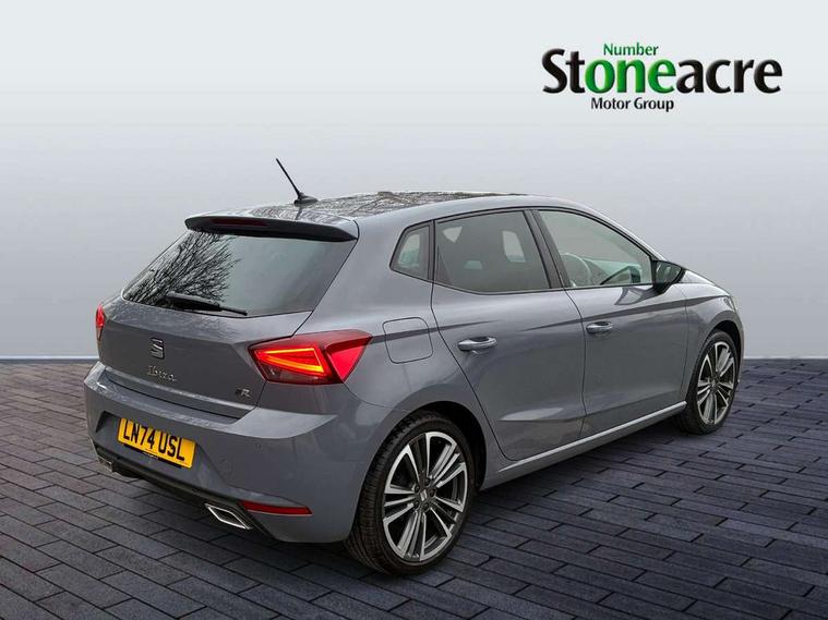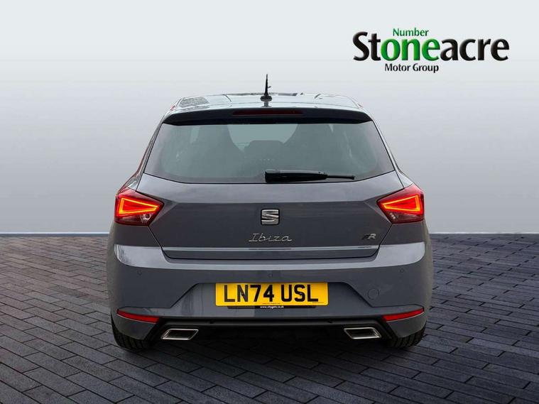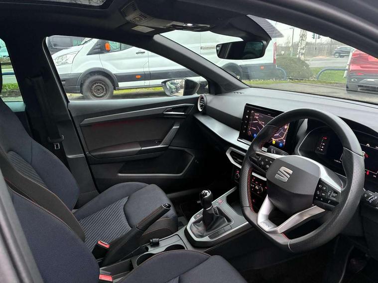 'Lights On' Reminder warning buzzer, 10" Digital cockpit, 9.2" touchscreen navigation system with type C USB socket, Voice control and DAB/AM/FM radio, Auto start and stop system, Bluetooth audio streaming with handsfree system, Digital clock, E-call, Full link smartphone integration with mirror link, wireless apple carplay, Google android auto + USB Type C cable for apple and android devices, Lane assist, Low fuel warning light, Outside temperature gauge, Power Steering, Rear parking sensor, Seat connect plus with safety, service, remote and online, SEAT logo boot release, Speed limiter, Traffic sign recognition, Trip computer, Sports suspension, Auxiliary input socket, Beats audio system with 18" space saver spare wheel and luggage compartment lining, Radio/MP3 player, SD card slot, Steering wheel mounted controls, Anti theft roof antenna, Auto dimming rear view mirror, Automatic rain sensing wipers, Black door mirror caps, Body colour bumpers, Body colour door handles, Brilliant black window surrounds, Dark tinted rear windows, Doorstep with anniversary limited edition, Electric adjustable/heated/folding door mirrors, Electric front windows, Electric headlight adjustment, Electric rear windows, Front/rear fog lights, FULL LED automatic headlights with dynamic headlight range control, coming and leaving home, LED daytime running lights, Lassered lettering Anniversary Edition in B pillar, LED tail lights, Rear roof spoiler with FR twin exhausts, Rear side wing doors, Rear wiper, Third brake light, 3 seat bench in 2nd row, 60/40 split folding rear seat, Ambient interior lighting, Chrome detailing and black headlining, Dual zone climate control with combination filter, Front courtesy lights, Front cupholders x 2, Front reading lights, Gear shift indicator, Glovebox, Grey interior air vents, Grey interior styling, Height adjustable front and rear headrests (five), Height adjustable front seats, Height/reach adjust steering wheel, Illuminated air vent surrounds, Illuminated boot, Instrument lighting with brightness control, Isofix, Leather multifunction flat bottomed sports steering wheel, Microsuede cloth upholstery, Passenger sunvisor, Single front passenger seat, Sports bucket seats, Storage pockets on back of front seats, Sunvisors with mirror and driver side card holder, Safety and driving pack (S) - Ibiza, 3 point seatbelts on all 3 rear seats, ABS, Active front headrests, Child locks on rear doors, Electronic stability control, Energy recovery system, Front driver and passenger side airbags with curtain airbag and front passenger airbag deactivation, Hill hold control, Multi-Collision braking, Seat belt reminder for front and rear seats, Tiredness recognition system, Tyre pressure monitoring system, Electronic engine immobiliser, KESSY Keyless entry and go, Locking wheel bolts, Perimeter alarm and interior monitoring inc.backup horn, tow away protection and electronic engine immobiliser, Remote central locking + deadlocks, 18" graphene alloy wheels in cosmo grey,