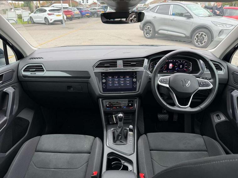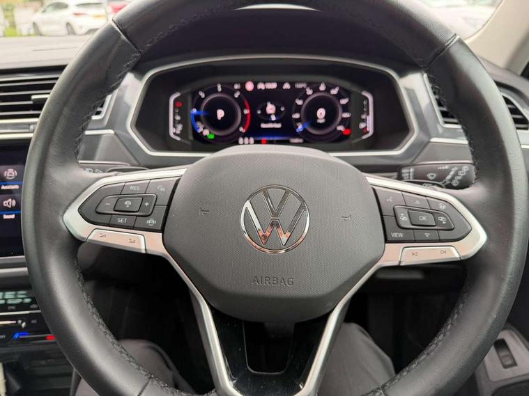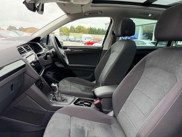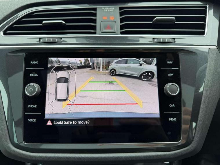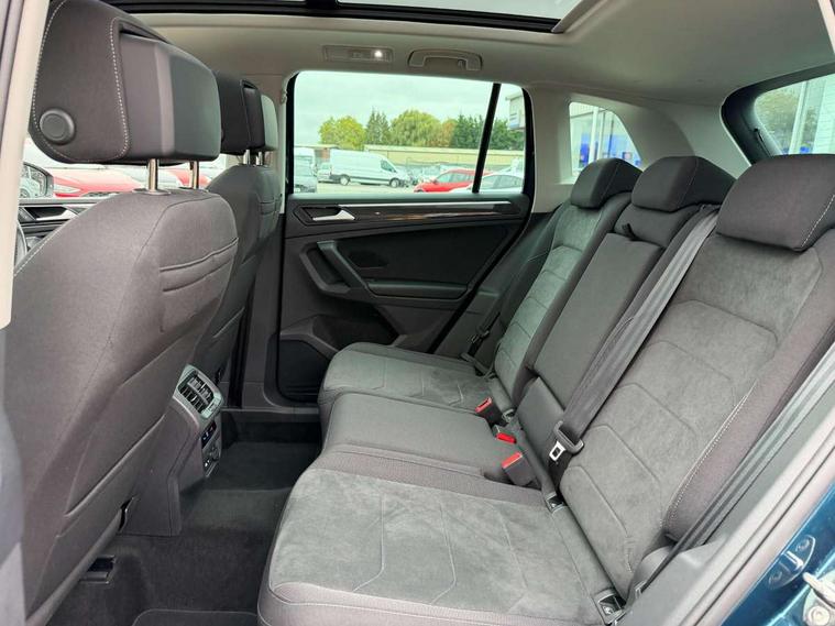 Adaptive cruise control ACC stop and go including speed limiter, App-Connect incl. App-Connect Wireless for Apple CarPlay and Android Auto, Bluetooth phone integration system, Distance control assist, Driver alert system, Driver profile selection, Dynamic road sign display, eCall emergency call system, Electromechanical speed sensitive power steering, Engine start/stop button, Lane keeping system Lane Assist, Lights on warning, Motorised electric tailgate operated via key fob, drivers door and foot movement under tailgate, Multifunction front facing camera, Outside temperature display, Premium multifunction display with multi colour display, Remote control boot opening, Rev counter, Revision / skills operating concept travel assistant, Service interval indicator, Speed limit display, Start/stop system with regenerative braking, Tailgate/trunk lid unlocking from outside, Trip computer, Warning sound and light for doors and tailgate open, Battery regeneration during braking, Diesel particulate filter, Misfuel prevention device for diesel engine, Selective Catalytic Reduction, XDS electronic differential lock for improved traction and handling, 4 X 20 watt output, 8 Speakers, Diversity antenna for FM reception, Radio, SD card slot, Simultaneous pairing of 2 compatible mobile devices, SMS functionality - read, compose and send SMS messages using touch-screen display, Title and cover art display, USB C ports, Aluminium door sill protectors, Auto dimming interior rear view mirror, Automatic headlight control system, Body colour door handles, Body coloured bumpers, Body coloured door mirrors with integrated indicators, Coming/leaving home lighting function, Dynamic headlight range control, Front and rear electric windows, Heated rear window, High level 3rd brake light, IQ light-Adv high beam, Dynamic light assist for LED matrix headlamp+LED separate DRL+DCL, dark red rear LED tech, Poor weather light+ cornering light, Laminated safety glass windshield, heat and sound insulating, LED rear number plate lights, Poor weather light and cornering light, Privacy glass for rear side windows and rear window, Rain sensor windscreen wipers, Rear exhaust tailpipe, Rear fog lamp, Rear side wing doors, Rear windscreen washer and wiper with interval delay, Side and rear windows in heat insulating glass, Tilting and sliding panoramic sunroof with rear panoramic sunroof, Trailer Stability Programme, Windscreen wipers/ intermittent wipe + 4 position delay, 12V outlet in center console rear and in luggage compartment, 12V outlet in front and tray, 2 cup holders in front, 2 LED front reading lights, 2 LED rear reading lights, 3 bench rear seats in 2nd row, 3 rear headrests, 4 load lashing points, 40:20:40 split folding rear seats, Air Care Climatronic 3 zone automatic climate control with enhanced air filter and controls in the rear, Backrest release for left front seat, Climate control unit rear with touch function, Door and side trim panel in foam film and woven fabric, Front centre armrest, Front footwell illumination, Front seats head restraints (x-adjustment), Height adjustable front seats, Height/reach adjust steering wheel, Instrument lighting white adjustable panel illumination, Interior light with delay, Isofix Preparation 2 Rear child seats, Leather gear knob, Lockable cooled glovebox, Luggage compartment lighting, Luggage net, Rear bench seat asymetrically split folding, longitudinally movable and folding with load-through hatch and center armrest, Remote unlocking for rear seat backrest, Removable luggage cover, Removable rear headrests, Safety optimised front head restraints, Single front passenger seat, Sliding/reclining rear seats, Standard rear seat release, Storage compartment in driver's door, Storage compartment in passenger's door, Storage compartment in rear doors, Storage compartments in luggage area left and right, Storage tray on dashboard, Sun visors with illuminated vanity mirrors, Top front comfort seats, Variable boot floor, height adjustable and removable, Easy open and close pack with safelock - Tiguan, 3 point seat belt for centre rear seats, 3 point seat belts with seat belt pretensioners for the outer rear seats, Active bonnet, Curtain airbags for front and rear passengers, Driver/Front Passenger airbags, Drivers knee airbag, Electronic parking brake with auto hold, Electronic Stability Control with driver steering recommendation, ABS, ASR, EDL, EDTC and trailer stabilization, Front assist with autonomous emergency braking (for Adaptive Cruise Control ACC up to 130 mph), Front disc brakes, Front passenger airbag deactivation, Front side airbags, Height adjustable front 3 point seatbelts + pretensioners, Hill hold control, Manual child proof rear door locks, Pedestrian monitoring system, Power assisted brakes, Proactive passenger protection system in combination with front assist, Rear disc brakes, Rigid safety cell with front and rear crumple zones, Two tone horn, Warning sound and light for front seat belts if unfastened, Anti theft alarm system with interior monitoring, backup horn and towing protection, Anti theft wheel bolts, Central locking system with safelock radio remote control and 2 remote control folding keys, Electronic engine immobiliser, Tool kit,
