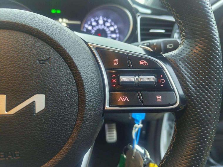 10.25" touchscreen satellite navigation, 4.2" supervision colour cluster display, Apple car play/Android Auto with voice control, Bluetooth with Voice Recognition & Music Streaming, Drive mode select (Normal and Sport), Driver attention warning + (DAW) with leading vehicle departure warning, Emergency call service, Emergency stop signalling system, Forward Collision-Avoidance Assist (FCA) - City/Pedestrian/Cyclist, Kia connect UVO, Lane Following Assist (LFA), Lane keep assist, Manual speed limit assist, Motor driven power steering, Rear parking sensor, Reversing camera system with dynamic guidelines (Integrated into centre fascia screen), Smart cruise control with stop/go functionality, Trip computer, Intelligent Stop and Go, 6 speaker audio system, DAB Radio with MP3, Illuminated USB ports, Steering wheel mounted controls, USB Fast Charger in Front Centre Console, USB type A port, All-round Electric Windows with Front Auto Up & Down Function, Auto dimming rear view mirror, Automatic defog system, Automatic headlights control, Body colour bumpers, Body colour exterior door handles, Body coloured and dark chrome rear skid plate, Body coloured side sill mouldings, Dark chrome window surround, Electric adjustable/heated/folding door mirrors with LED Indicators, Heated rear window with timer, High beam assist, High gloss black and dark chrome radiator grille, High gloss black door mirrors, High Gloss Black rear spoiler - roof, LED daytime running lights, LED front fog lights, LED Headlights, LED High-mounted Brake Light, LED honeycomb rear light, LED rear combination lights, LED rear fog light, Privacy glass (rear side windows and tailgate), Rain sensing front wipers, Rear side wing doors, Rear wash/wipe, Satin chrome dual exhaust trim, Tinted glass, Wide view drivers door mirror, Windscreen Washer Level Warning, 1 x Front 12V socket, 12V power socket in luggage compartment, 3 seat bench in 2nd row, 3 x passenger assist grips, 60/40 split folding rear seat, All-round height adjustable headrests, Aluminium pedals, Black headlining, Centre console storage box/armrest, Cloth/faux leather upholstery, Cupholders in centre console, Cupholders in rear armrest, Dash illumination dimmer switch, Door courtesy lamps, Driver & Front Passenger Sunvisors with Vanity Mirror Illumination & Ticket Holder, Driver + front passenger electric lumbar support, Driver's seat height adjuster, Dual Height Luggage Area Floor, Dual zone automatic air conditioning, Faux leather door centre trim, Front and rear door storage, Front cabin map light with sunglasses case, Front Passenger Seat Height Adjuster, Front seat back pockets, Heated front seats, Heated steering wheel, Interior door lock/unlock function, ISOFIX Child seat top tethers and anchor fixings, Leather D-Cut steering wheel, Leather handbrake, Luggage area light, Luggage area parcel shelf, Luggage hooks, Rear centre armrest, Rear coat hooks, Single front passenger seat, Tilt/telescopic adjustable steering wheel, All round 3-point seatbelts, Anti-lock braking system (ABS), Brake assist system, Dual front side airbags, Dual horn, EBD - Electronic brakeforce distribution, Electronic parking brake, Electronic stability control (ESC) and vehicle stability management (VSM), Front passenger airbag cut-off switch, Height adjustable front seatbelts, Hill start assist control (HAC), Impact sensing auto door unlocking, Rear door child safety locks, Seatbelt reminder warning, Twin curtain airbags, Twin front airbags, Tyre pressure monitoring system, Alarm system, Engine Immobiliser & Deadlocks, Locking wheel nuts, Remote central door locking with fold away key, Speed sensitive auto door locking, Satin Chrome Fascia Trim, 17" GT-Line alloy wheels, Tyre mobility kit,