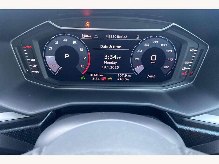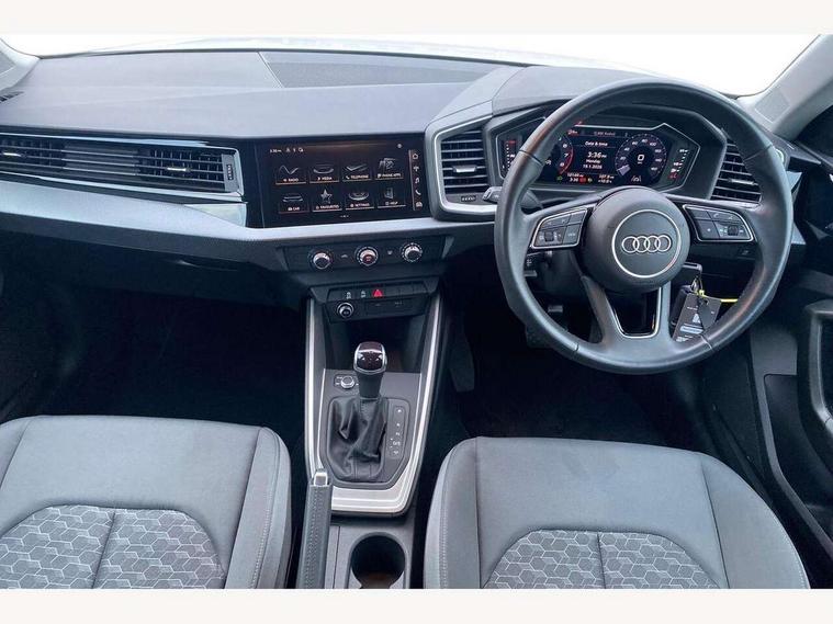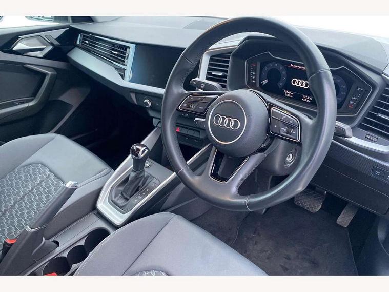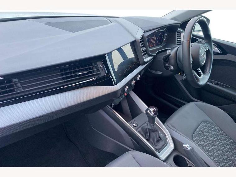 10.25" Digital instrument cluster display classis style instrument dials + speed, odometer, time, outside temperature, telephone menu + fuel level warning, Audi smartphone interface with connect compatible smartphone via USB directly MMI display + Nav, music, third party apps controlled via MMI controller, Automatic start/stop system, Bluetooth interface, Cruise control, Driver's information system, Electromechanical power steering, Emergency e-call, Lane departure warning system, Rear parking sensor, Service interval indicator, Speed limiter, Voice control system, Washer fluid level indicator, Dynamic suspension, 2 x USB type C connection points, 6 passive loudspeakers, DAB Digital radio, MMI radio plus with 10.1" colour MMI display screen and MMI touch, Auto dimming rear view mirror, Body coloured bumpers, Body coloured door mirrors, Electric front and rear windows, Electrically adjustable, heated, folding door mirrors with integrated LED side indicator, Front side air inlets in grained matt black and C frame in anthracite black, Heat insulating glass windscreen and side windows, Heated rear windscreen, High level LED brake light, LED headlights with LED rear lights + dynamic rear indicators + headlight adjustment and high beam, turning light + LED daytime running lights, Radiator grille and rear diffuser in matt anthracite black, Radiator protective grille frame in matt aluminium silver, Rain and light sensors, Rear fog lights, Rear side wing doors, Rear wiper, Side front spoiler lips in grained matt black, 12V socket in centre console with two cup holders, 3 rear seats with headrests, 3 seat bench in 2nd row, 3 spoke leather multifunction plus steering wheel, 40:60 Split folding rear seat or folded fully, Black front and rear floor mats, Door sill trims with aluminium inlay, Driver and passenger seat with manual height adjust with forward and backwards adjustment, Front head restraints, Front passenger seat, Grey cloth headlining, Height and reach adjustable steering wheel, ISOFIX child seat mounting for front passenger and outer rear seats including top tether attachment point of outer rear seats, Leather gear knob with aluminium trim, Leather handbrake grip, Luggage compartment light with front and rear reading lights, Manual air conditioning, Manually adjustable lumbar support in front seats, Novum cloth upholstery with front sport seats, Luggage compartment pack - A1, 3x3 point rear seatbelts, Audi pre-sense front with pedestrain and cyclist recognition, Brake assist function, Driver and front passenger airbag with front side and head airbags, Electronic Stability Control including ABS, EBD, ASR and EDL, Front passenger airbag deactivation switch, Hill hold assist, Manual rear child locks, Seatbelt height adjustment for front seats, Seatbelt monitoring, Tyre pressure warning light, Warning triangle and first aid kit, Anti theft alarm, Anti theft wheel bolts and loose wheel warning, Immobiliser, Remote central locking with 2 foldaway keys, Aluminium trim for control switches, air vents and digital instrument cluster, Black dashboard, Silver grey accent areas including air vents, door handle recesses and centre console in diamond paint finish, Slate grey inlays polygon structure in fine paint finish,