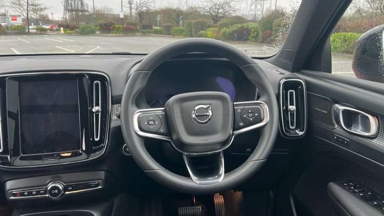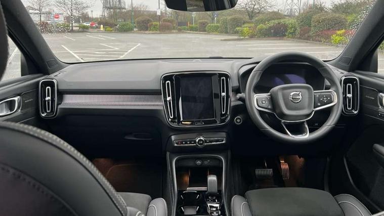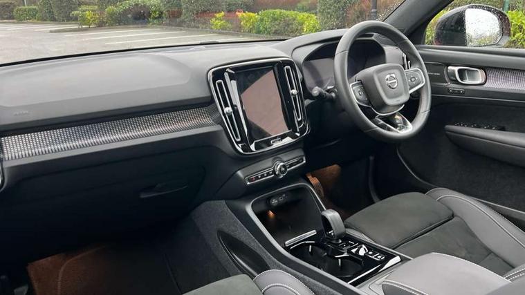12.3" Progressive Driver Display, 360 degree surround view parking camera with side proximity sensors, 9" centre console portrait touch screen, Adjustable steering wheel force, Bluetooth hands free telephone kit, E-call, Front park assist, Google automatic services - Nav with google maps, apple carplay/android auto, voice recognition with google assistant, Hands free power tailgate, Lane keep assist with driver alert control, Oncoming Lane Mitigation, Rear park assist, Speed limiter, Speed sensitive steering, Wireless/Inductive Mobile Phone Charging, Dynamic chassis, DAB Digital radio, Premium Sound by Harman Kardon, Dolby Pro Logic II Surround Sound, Dirac Unison, 12 speakers/600W and subwoofer, Steering wheel mounted remote controls, Active bending pixel LED headlights with adaptive shadow technology, Active high beam incorporating daytime running lights, Adaptive brake lights with high level LED brake lights, Auto dimming interior mirror, Automatic headlamp levelling, Dark tinted windows for rear door side windows and cargo compartment, Front aluminium tread plates, Front and rear electric windows, Headlight cleaning system, High gloss black front and rear skid plate, High gloss black mesh front grille with high gloss black surround, High gloss black window trim, Home safe and approach lighting, Integrated roof rails in high gloss black, LED front fog lights, Power glass tilt and slide panoramic sunroof with sun curtain, Puddle lights, Rain sensor with automatic windscreen wiper activation, Rear side wing doors, Rear wiper, Roof antenna, Roof spoiler, Visible VIN plate, 12V socket in front tunnel console and luggage compartment, 2-Zone electronic climate control with CleanZone air quality system and pollen filter, 3 seat bench in 2nd row, 3 Spoke tailored steering wheel with chrome trim, 60/40 versatile split folding rear seat, A-pillar parking ticket holder, Ambient front door and instrumental panel lighting, Centre console cupholders and storage, Flexible load floor and grocery bag holder, Floor mats, Front door pocket and front cupholder illumination, Front footwell illumination, Front headrests, Front reading light and theatre lighting, Front seat cushion extensions, Front tunnel pocket, Glovebox bag hook, Heated front seats, Height adjustable passenger seat, Height/reach adjustable steering column, High gloss centre tunnel deco, Illuminated glovebox, Illuminated luggage compartment, Illuminated tailgate, Illuminated vanity mirrors, Integrated waste bin, Isofix attachments on outer rear seats, Load protection net, Multi directional lumbar support, Power driver seat with memory + exterior mirrors memory, Power folding rear headrests, Power passenger seat, Rear armrest / integral cup holders / storage tray, Rear reading and courtesy lights, Single front passenger seat, Underfloor cargo storage, Climate pack without heated front seats - XC40, Driver assist pack - XC40, 3x3 point rear seatbelts, City safety with steering support with Pedestrian + cyclist + front collision warning with full auto brake and rear auto brake, Drivers knee airbag, Dual stage driver/passenger airbags, Electronic parking brake with auto hold, First aid kit, Front and outer rear seatbelt reminder and pretensioners, Front seats SIPS airbags, Hill descent control, Hill start assist, Inflatable curtain, Passenger airbag cut-off device, Power child locks on rear doors, Road sign information display, Run off Road Mitigation, Run off Road Protection, SIPS (Side Impact Protection System), Slippery road and hazard light alert, Stability and Traction Control with Spin control, Engine Drag Control and Corner Traction Control, Tyre pressure monitoring system, Vehicle deceleration control with Anti-lock Brake System, Electronic Brake Distribution and Emergency Brake Assist, Warning triangle, WHIPS whiplash protection system - front, Anti-theft alarm including immobiliser/volume sensor + level sensor, Key integrated remote control central locking + fuel flap with deadlocking system and auto open/close power windows, Keyless drive includes keyless entry and keyless start, Locking wheel nuts,