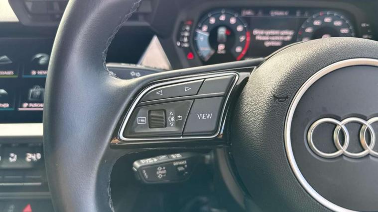 Audi drive select (Auto, Comfort, Dynamic and Individual), Audi smartphone interface, Audi Virtual Cockpit - 10.25" digital and colour instrument cluster, Automatic start/stop system with recuperation, Bluetooth interface, Camera based traffic sign recognition, Collision avoidance assistant, e-Call (emergency call), Electromechanical power speed sensitive steering, Lane departure warning system, MMI Navigation Plus with high resolution 10.1" colour touch screen display, Service indicator, Trip computer, Voice control system with natural language interaction, Standard suspension, 2xUSB-C connection with data and charging functions, 6 passive loudspeakers, DAB Digital radio, 3rd brake light, Acoustic glass windscreen, Aluminium window trim, Auto dimming frameless rear view mirror, Body colour exterior mirrors, Body colour roof spoiler, Electrically adjustable/heated/folding/auto dimming door mirrors with integrated LED indications + kerb view function for passenger side, Front electric windows, LED daytime running lights, LED headlights and halogen rear lights, Light and rain sensors, Rear electric windows, Rear side wing doors, Rear window, rear door windows and rear side windows in clear glass, Rear wiper, 12V socket and storage compartment in front centre console, 3 seat bench in 2nd row, 3 spoke leather multifunction steering wheel with paddle shift, 4 way electrically adjustable lumbar support for driver and front passenger, 60/40 split folding rear seat bench, Dual zone electronic climate control, Front and rear headrests, Front centre armrest, Front door sill trims with aluminium inlay, Front/rear floor mats, Height and reach adjustable steering wheel, Interior lighting - Front and rear roof module including reading lights, glove compartment light and right hand side, Interior lighting - glove compartment light and right hand side, Luggage compartment floor covering, Manual boot compartment lid, Manually adjustable front seats, Routine cloth upholstery with front sports seats, Seat side bolsters, Single front passenger seat, Steel grey cloth headlining, Aluminium interior elements pack - A3 Sportback, LED interior lighting pack - A3 Sportback, Sport styling pack - A3 Sportback, 3x3 point rear seat belts, Driver and front passenger airbag with passenger airbag deactivation, Electronic Stabilisation Control (ESC) including ABS, ASR and EDL, First aid kit with warning triangle and 2 safety vests, Front side airbags with head airbags and interaction airbag, Pre-sense front with pedestrian and cyclist detection, Seatbelt monitoring, Tyre pressure loss indicator, Anti theft alarm, Anti-theft wheel bolts, Electronically operated child locks, Immobiliser, Remote control central locking, Inlays with silk effect paint in platinum grey,