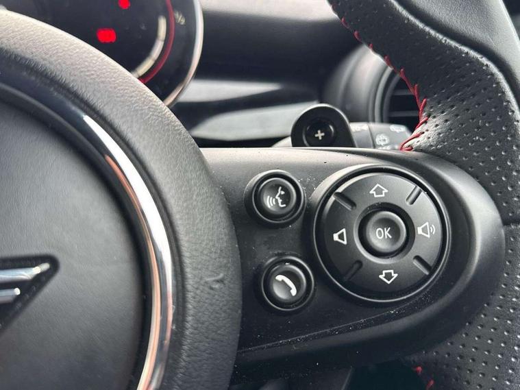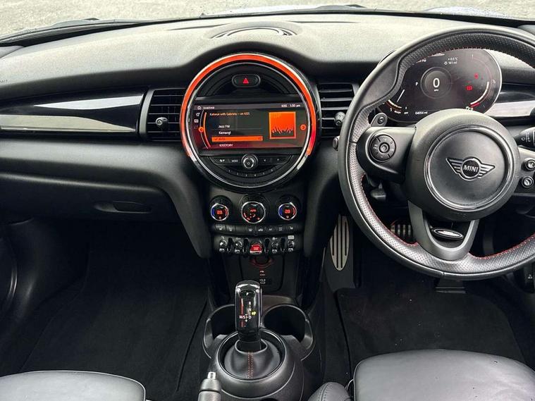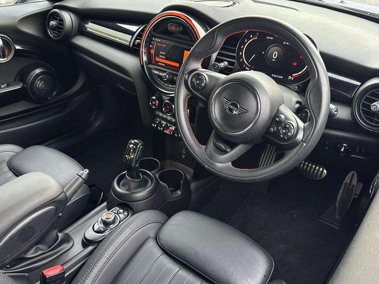 Automatic start/stop function with brake energy recuperation, Compatible mobile phone bluetooth with audio streaming, Electro-mechanical speed dependant steering assistance, Instrument cluster, MINI Driving Modes - centre toggle switch to control driving setting (sport, mid and green), Mini E-call, MINI TeleServices, On board computer, Service interval indicator, Double Vanos system, Eight speed steptronic sport transmission, with gearshift paddles, Fully variable valve control, Gear change indicator display, High precision injection, Performance Control, 6.5" touchscreen with LED ring, FM tuner and DAB digital radio, Automatic headlight activation switch, Bonnet scoop, Chrome door handles, Chrome plated fuel cap, Dynamic brake lights, Electric front+rear windows, Heated rear window, Heated windscreen washer jets, John Cooper Works - aerodynamic kit (front and rear apron, spoiler), front and rear sport bumpers and part-painted side sills with door sill finishers, John Cooper Works rear spoiler, LED headlight with closed ring and daytime driving lights, Metal look door sill finishers, Piano black border radiator grille with honeycomb structure in black matt and John Cooper Works logo with upper individual grille strut in chilli red, Piano black exterior, Rain sensor window wipers, Rear fog lights, Rear LED lights with union jack design, Rear window wiper, Side scuttle with MINI John Cooper Works logo in black high-gloss with red border, Sun/heat protection glass, Two central exhaust tailpipes with chrome finisher, White indicator lenses, 12V Accessory socket in centre console, 4 lashing eyes in luggage compartment, 60/40 split folding rear seat, Carbon Black colour line, knee roll and door armrests, Chrome interior highlights, Cupholders, Front and rear head restraints, Front and rear isofix with front passenger airbag deactivation, Glove compartment, Height and length steering column adjustment, Interior lighting with 12 basic colours selectable via toggle switch in roof, Internal chrome door handles, John Cooper Works Logo in seat, John Cooper Works sport leather steering wheel, Leather gearshift lever and handbrake gaiters, LED reading lights, vanity mirror lights, front foot well light and spotlight on front seats, Manual air conditioning, Mechanical seat adjustment, driver seat height adjust, forward/back and front seats backrest, Mini logo projection on floor from drivers exterior mirror, Multifunction steering wheel, Stainless steel pedals with rubber inserts, Storage compartments in doors, Sunvisors with vanity mirrors, 17" front sport brake with 4 piston fixed calliper, 3 point seatbelts on all four seats, 6 Airbags - front, side, head and seat belt tensioners, Anti-lock braking system (ABS), DSC - Dynamic Stability Control, Front and rear disc brakes, Hill start assist, Red brake callipers with John Cooper Works logo, Two tone horn, Tyre pressure monitoring system, Alarm system with tilt sensor, monitoring doors, bonnet interior and tailgate, Electronic vehicle immobiliser, Start/stop toggle with keyless go, Tool kit,