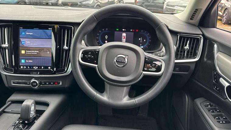 12.3" Progressive Driver Display, 360 degree surround view parking camera with side proximity sensors, 9" centre console touch screen, Adjustable steering wheel force, Apple carplay (wired), Bluetooth handsfree system, Driver alert control with lane keeping aid, Driver assistance (pilot assist and adaptive cruise control), Driver awareness - Blind spot system + steer assist, cross traffic alert with autobrake, rear collision warning and mitigation, E-call, Emergency assist, Front and rear park assist, Google automotive services enabled entertainment apps, navigation with google maps, voice recognition with google assistant, Handsfree bootlid opening/closing, Oncoming Lane Mitigation, Power operated tailgate/boot lid, Speed limiter, Speed sensitive steering, Volvo on call app, Wireless/Inductive Mobile Phone Charging, 8 speed automatic transmission with start/stop + manual change functions, Dynamic chassis, DAB Radio (Digital Audio Broadcasting), Premium Sound by Harman Kardon, dirac unison, dolby pro logic II surround sound, 13 speakers/600W output and fresh air subwoofer, Steering wheel remote infotainment controls, Adaptive brake lights with high level LED brake lights, Auto dimming interior + exterior mirrors, Automatic headlight levelling system, Automatic LED Headlights + Active high beam incorporating daytime running lights, Chrome window surround, Colour coordinated auto folding and heated power door mirrors, Front and rear power windows, Heated windscreen, High gloss black door mirrors and window surround, High gloss black front and rear bumper decoratives, High gloss black mesh front grille and surround, Home safe and approach lighting, Integrated roof rails in high gloss black, LED front fog lights, Puddle lights, Rain sensor with automatic windscreen wiper activation, Rear LED lights with sequential indicators, Rear side wing doors, Rear wiper, Roof antenna, Roof spoiler, Variable front intermittent wipers, Visible VIN plate, 3 seat bench in 2nd row, 3 Spoke tailored steering wheel with chrome trim, 4 Zone electronic climate control, A-pillar parking ticket holder, Air purifier particulate matter (PM) filter, Ambient door and instrument panel lighting, B Pillar ventilation, Boot lid/tailgate illumination, Bright metal luggage compartment threshold, Cargo divider with grocery bag holder, Centre console cupholder and storage, Charcoal carpets and floor mats, Driver and front passenger seat power height adjustment, Extended front seat cushions, Front 12V socket tunnel console and cargo area, Front and rear footwell and side step illumination, Front and rear reading lights and centre armrest Storage Illumination, Front headrests, Front/rear door pockets and front cupholder illumination, Glovebox compartment with illumination, Heated front seats, Heated steering wheel, Height/reach adjustable steering column, Illuminated front and rear aluminium tread plates, Illuminated luggage compartment, Illuminated vanity mirrors + ticket holder, Integrated sun curtains in rear doors, ISOFIX attachment on outer rear seats, Leather upholstery, Load cover, Load protection net, Multi directional lumbar support, Power driver seat with memory for seat and exterior mirrors, Power folding rear headrests, Rear armrest with cupholder, Single front passenger seat, Underfloor cargo storage, Versatile split folding rear seat - 60/40, 3x3 point rear seatbelts, Active bonnet, City safety with steering support with Pedestrian + cyclist + front collision warning with full auto brake and rear auto brake, Drivers knee airbag, Dual stage driver/passenger airbags, Front seats SIPS airbags, Hill start assist, IC (Inflatable Curtains) - Full Length, Passenger airbag cut-off switch, Power child locks on rear doors, Power parking brake with auto hold function, Road sign information display, Run off Road Mitigation, Run off Road Protection, Seatbelt reminder and pretensioners for all seats, SIPS (Side Impact Protection System), Slippery road and hazard light alert, Stability and Traction Control with Spin control, Engine Drag Control and Corner Traction Control, Tyre pressure monitoring system, Vehicle deceleration control with Anti-lock Brake System, Electronic Brake Distribution and Emergency Brake Assist, Warning triangle and first aid kit, WHIPS whiplash protection system - front, 2x Key integrated remote control central locking + fuel flap with deadlocking system and auto open/close power windows, Anti-theft alarm including immobiliser/volume sensor + level sensor, Care key with user defined top speed, Keyless drive includes keyless entry and keyless start, Locking wheel nuts, Private locking for tailgate, Tailored Instrument Panel and Door Tops with Contrast Stitching, 19" 5 Spoke diamond cut/ black alloy wheels,