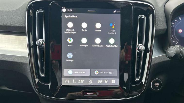 12.3" Progressive Driver Display, 360 degree surround view parking camera with side proximity sensors, 9" centre console touch screen, Adjustable steering wheel force, Apple CarPlay and Android Auto, Bluetooth handsfree system, Drive mode settings, Driver alert control with lane keeping aid, Driver assistance (pilot assist and adaptive cruise control), Driver awareness - Blind spot system + steer assist, cross traffic alert with autobrake, rear collision warning and mitigation, E-call, Emergency assist, Front and rear park assist, Google automotive services - Enabled entertainment apps, navigation with google maps, voice recognition with google assistant, Handsfree bootlid opening/closing, Intelligent speed assistance, Oncoming Lane Mitigation, Power operated tailgate/boot lid, Speed sensitive steering, Volvo on call app, 6m 3 phase 16amp Type 2 / mode 3 charge cable, 8 speed automatic transmission with start/stop + manual change functions, Dynamic chassis, Electric rear axle drive, Lithium-Ion Battery 18.8kWh, On board charger - 6.4 kW 2 phase/3.7kW single phase, Recharging port located in nearside front wing, DAB Radio (Digital Audio Broadcasting), Low speed exterior sound speaker, Premium Sound by Harman Kardon, dirac unison, dolby pro logic II surround sound, 13 speakers/600W output and fresh air subwoofer, Steering wheel remote infotainment controls, Adaptive brake lights with high level LED brake lights, Auto dimming interior + exterior mirrors, Automatic headlight levelling system, Automatic LED Headlights + Active high beam incorporating daytime running lights, Front and rear power windows, Heated windscreen, High gloss black door mirrors and window surround, High gloss black front and rear bumper decoratives, High gloss black mesh front grille and surround, Home safe and approach lighting, Integrated roof rails in high gloss black, Power heated autofolding door mirrors, Puddle lights, Rain sensor with automatic windscreen wiper activation, Rear LED lights with sequential indicators, Rear side wing doors, Rear wiper, Roof antenna, Roof spoiler, Variable front intermittent wipers, Visible VIN plate, 2 zone electronic climate control with Clean zone air quality system + pollen filter, 3 seat bench in 2nd row, 3 Spoke tailored steering wheel with chrome trim, Air purifier particulate matter (PM) 2.5 filter, Ambient door and instrument panel lighting, B Pillar ventilation, Boot lid/tailgate illumination, Bright metal luggage scuff plate, Cargo divider with grocery bag holder, Centre console cupholder and storage, Charcoal carpets and floor mats, Driver and front passenger seat power height adjustment, Extended front seat cushions, Front 12V socket tunnel console and cargo area, Front and rear cabin courtesy light, Front and rear door pocket lights, Front and rear footwell and side step illumination, Front and rear reading lights and centre armrest Storage Illumination, Front headrests, Glovebox compartment with illumination, Heated front seats, Heated rear seats outer positions, Heated steering wheel, Height/reach adjustable steering column, Illuminated luggage compartment, Illuminated recharge aluminium tread plates, Illuminated vanity mirrors + ticket holder, Illumination front tunnel storage, Inner door release handle illumination, Integrated sun curtains in rear doors, ISOFIX attachment on outer rear seats, Leather upholstery, Load cover, Load protection net, Luggage compartment load hooks, Memory function for drivers seat and exterior mirrors, Multi directional lumbar support, Power folding rear headrests, Rear armrest with cupholder, Single front passenger seat, Underfloor cargo storage, Versatile split folding rear seat - 60/40, 3x3 point rear seatbelts, Active bonnet, City safety with steering support with Pedestrian + cyclist + front collision warning with full auto brake and rear auto brake, Driver and front passenger airbags, Drivers knee airbag, Front seats SIPS airbags, Hill start assist, IC (Inflatable Curtains) - Full Length, Passenger airbag cut-off switch, Power child locks on rear doors, Power parking brake with auto hold function, Road sign information display, Run off Road Mitigation, Run off Road Protection, Seatbelt reminder and pretensioners for all seats, SIPS (Side Impact Protection System), Slippery road and hazard light alert, Stability and Traction Control with Spin control, Engine Drag Control and Corner Traction Control, Tyre pressure monitoring system, Vehicle deceleration control with Anti-lock Brake System, Electronic Brake Distribution and Emergency Brake Assist, Warning triangle and first aid kit, WHIPS whiplash protection system - front, 2x Key integrated remote control central locking + fuel flap with deadlocking system and auto open/close power windows, Anti-theft alarm including immobiliser/volume sensor + level sensor, Care key with user defined top speed, Keyless drive includes keyless entry and keyless start, Locking wheel nuts, Private locking for tailgate, Tailored Instrument Panel and Door Tops with Contrast Stitching, 19'' 8 spoke diamond cut black alloy wheels, Tyre sealant kit and compressor,