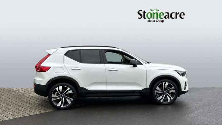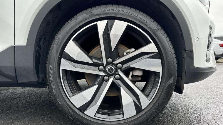 12.3" Progressive Driver Display, 360 degree surround view parking camera with side proximity sensors, 9" centre console portrait touch screen, Adjustable steering wheel force, Apple carplay (wired), Bluetooth handsfree system, Driver alert control, Driver assistance (pilot assist and adaptive cruise control), Driver awareness - Blind spot information system with steer assist, cross traffic alert with autobrake and rear collision warning and mitigation, E-call, Google automotive services - Enabled entertainment apps, navigation with google maps, voice recognition with google assistant, Hands free power tailgate, Intelligent speed assistance, Lane keeping aid, Oncoming Lane Mitigation, Speed sensitive steering, Volvo cars services with app - Driving journal, emergency and breakdown call, engine remote start, remote door locking/unlocking and vehicle dashboard, Wireless/Inductive Mobile Phone Charging, Automatic transmission with start/stop and manual change functions, Dynamic chassis, DAB Digital radio, Premium Sound by Harman Kardon, Dolby Pro Logic II Surround Sound, Dirac Unison, 12 speakers/600W and subwoofer, Steering wheel mounted remote controls, Active bending pixel LED headlights with adaptive shadow technology, Active high beam incorporating daytime running lights, Adaptive brake lights with high level LED brake lights, Auto dimming feature for exterior door mirrors, Auto dimming interior mirror, Automatic headlamp levelling, Dark tinted windows - rear side windows and rear screen, Front aluminium tread plates, Front and rear electric windows, Headlight cleaning system, High gloss black front and rear skid plate, High gloss black front bumper deco, High gloss black mesh front grille with high gloss black surround, High gloss black window trim, Home safe and approach lighting, Integrated roof rails in high gloss black, LED front fog lights with cornering function, Power glass tilt and slide panoramic sunroof with sun curtain, Puddle lights, Rain sensor with automatic windscreen wiper activation, Rear side wing doors, Rear wiper, Roof antenna, Roof spoiler, Visible VIN plate, 12V socket in front tunnel console and luggage compartment, 2-Zone electronic climate control with CleanZone air quality system and pollen filter, 3 seat bench in 2nd row, 3 Spoke tailored steering wheel with chrome trim, 60/40 versatile split folding rear seat, Centre console cupholders and storage, Flexible load floor and grocery bag holder, Floor mats, Front cabin courtesy lights, Front door pocket, front cupholder, ambient front door, rear reading, rear courtesy, instrument panel and tailgate lighting, Front footwell illumination, Front headrests, Front reading lights, Front seat cushion extensions, Front side step illumination (under door), Glovebox bag hook, Heated front seats, Height/reach adjustable steering column, High gloss centre tunnel deco, Illuminated glovebox, Illuminated luggage compartment, Illuminated vanity mirrors + ticket holder, Integrated waste bin, Isofix attachments on outer rear seats, Load cover, Load protection net, Multi directional lumbar support for driver and passenger seat, Power driver seat with memory + exterior mirrors memory, Power folding rear headrests, Power passenger seat, Rear armrest with cupholders, Single front passenger seat, Underfloor cargo storage, Climate pack without heated front seats - XC40, 3x3 point rear seatbelts, City safety with steering support with Pedestrian + cyclist + front collision warning with full auto brake and rear auto brake, Driver and passenger airbags, Drivers knee airbag, Electronic parking brake with auto hold, First aid kit, Front and outer rear seatbelt reminder and pretensioners, Front seats SIPS airbags, Hill descent control, Hill start assist, Inflatable curtain, Passenger airbag cut-off device, Power child locks on rear doors, Road sign information display, Run off Road Protection, SIPS (Side Impact Protection System), Slippery road and hazard light alert, Stability and Traction Control with Spin control, Engine Drag Control and Corner Traction Control, Tyre pressure monitoring system, Vehicle deceleration control with Anti-lock Brake System, Electronic Brake Distribution and Emergency Brake Assist, Warning triangle, WHIPS whiplash protection system - front, 2 x Key integrated remote control central locking including with deadlocking system and auto open/close windows and sunroof, Anti-theft alarm including immobiliser/volume sensor + level sensor, Keyless drive includes keyless entry and keyless start, Locking wheel nuts,