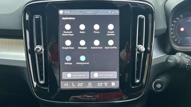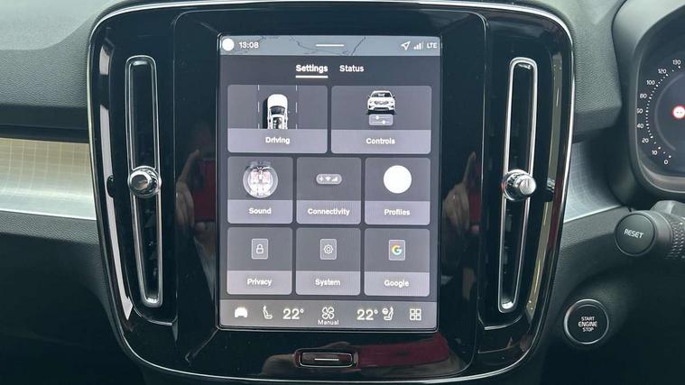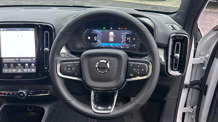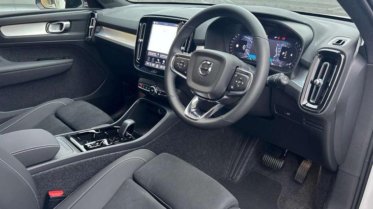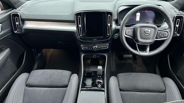 12.3" Progressive Driver Display, 9" centre console portrait touch screen, Adjustable steering wheel force, Android auto (Wired), Apple carplay (wired), Bluetooth handsfree system, Driver alert control, Driver assistance (pilot assist and adaptive cruise control), Driver awareness - Blind spot information system with steer assist, cross traffic alert with autobrake and rear collision warning and mitigation, E-call, Front and rear parking sensors, Front park assist, Google automotive services - Enabled entertainment apps, navigation with google maps, voice recognition with google assistant, Hands free power tailgate, Intelligent speed assistance, Lane keeping aid, Oncoming Lane Mitigation, Speed sensitive steering, Volvo cars services with app - Driving journal, emergency and breakdown call, engine remote start, remote door locking/unlocking and vehicle dashboard, Wireless/Inductive Mobile Phone Charging, Automatic transmission with start/stop and manual change functions, Dynamic chassis, DAB Digital radio, Steering wheel mounted remote controls, Adaptive brake lights with high level LED brake lights, Auto dimming feature for exterior door mirrors, Auto dimming interior mirror, Auto folding and heated power door mirrors, Automatic headlamp levelling, Automatic LED Headlights + Active high beam incorporating daytime running lights, Front aluminium tread plates, Front and rear electric windows, High gloss black front and rear skid plate, High gloss black front bumper deco, High gloss black mesh front grille with high gloss black surround, High gloss black window trim, Home safe and approach lighting, Integrated roof rails in high gloss black, LED front fog lights, Puddle lights, Rain sensor with automatic windscreen wiper activation, Rear side wing doors, Rear wiper, Roof antenna, Roof spoiler, Visible VIN plate, 12V socket in front tunnel console and luggage compartment, 2-Zone electronic climate control with CleanZone air quality system and pollen filter, 3 seat bench in 2nd row, 3 Spoke tailored steering wheel with chrome trim, 60/40 versatile split folding rear seat, Centre console cupholders and storage, Charcoal carpet and floor mats, Charcoal headlining, Connect suede textile/microtech upholstery, Flexible load floor and grocery bag holder, Front headrests, Front seat cushion extensions, Glovebox bag hook, Heated front seats, Height adjustable passenger seat, Height/reach adjustable steering column, High gloss centre tunnel deco, High level illumination - Front door pocket, front side step (under door), tailgate, instrument panel, front door inlay, rear courtesy&reading lights, Integrated waste bin, Isofix attachments on outer rear seats, Load cover, Load protection net, Mid level illumination - Front footwell, luggage & glovebox compartment, front cabin courtesy & reading lights, illuminated vanity mirrors+ticket holder, Multi directional lumbar support for driver and passenger seat, Power driver seat with memory + exterior mirrors memory, Rear armrest with cupholders, Rear headrests, Single front passenger seat, Underfloor luggage compartment storage, Climate pack without heated front seats - XC40, 3x3 point rear seatbelts, City safety with steering support with Pedestrian + cyclist + front collision warning with full auto brake and rear auto brake, Driver and passenger airbags, Drivers knee airbag, Electronic parking brake with auto hold, First aid kit, Front and outer rear seatbelt reminder and pretensioners, Front seats SIPS airbags, Hill descent control - Off-road drive mode, Hill start assist, IC (Inflatable Curtains) - Full Length, Passenger airbag cut-off device, Power child locks on rear doors, Road sign information display, Run off Road Protection, SIPS (Side Impact Protection System), Slippery road and hazard light alert, Stability and Traction Control with Spin control, Engine Drag Control and Corner Traction Control, Tyre pressure monitoring system, Vehicle deceleration control with Anti-lock Brake System, Electronic Brake Distribution and Emergency Brake Assist, Warning triangle, WHIPS whiplash protection system - front, 2 x Key integrated remote control central locking including with deadlocking system and auto open/close windows, Anti-theft alarm including immobiliser/volume sensor + level sensor, Keyless drive includes keyless entry and keyless start, Locking wheel nuts,