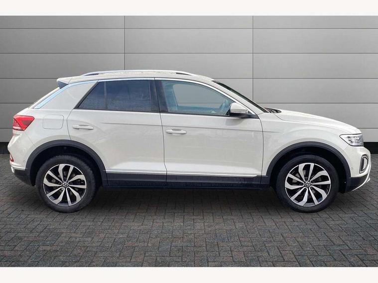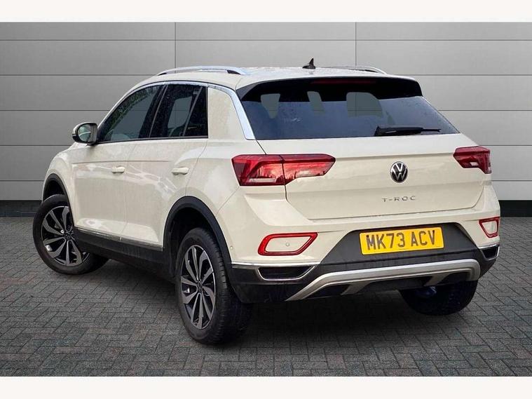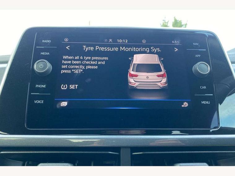 10.25" Digital cockpit pro, Bluetooth mobile phone interface, Driver alert system with fatigue detection, Driver tips and journey analysis, Dynamic road sign display, Emergency call service, Lane keeping system Lane Assist, Modified key software - reduce switch off time for key status change to Long no motion, Online services, Park assist including front and rear parking sensors, Power assisted speed sensitive steering, Service interval indicator, Tailgate/trunk lid release from outside, Think blue trainer driver tips and journey analysis, Warning sound and light for front seatbelts unfastened, Wireless app connect, Battery regeneration during braking, Front shock absorption, Rear shock absorption chassis with increased ride height, Start/stop function with battery regeneration, Diversity antenna for FM reception, Music playback - MP3, WMA and AAC files, Premium USB cable in choice of either Apple or Android smartphone compatibility, SD card slot, Simultaneous pairing of 2 compatible mobile devices, Title and cover art display, We Connect and We Connect Plus functionality, 3rd brake light, Auto dimming interior rear view mirror, Automatic hazard lights activation under emergency braking, Automatic headlight control with LED separate daytime running lights with coming/leaving home function, Body colour sports bumpers with silver metallic underbody fascia, Dynamic headlight range control with self adjusting whilst driving, Extended roof spoiler, Exterior mirrors aspherical on driver side, convex on front passenger side, External USB type C socket and charging sockets, Front windscreen wiper with intermittent wipe and 4 position delay, Heated rear window, LED rear combination lamps, LED rear number plate lights, LED tail lamp rear comination lamps, Light mode for poor weather, rain, fog or snow, Power windows with comfort operation and circuit breaker, Rain sensor, Rear exhaust tailpipe, Rear fog light on one side and reversing lights on both sides, Rear side wing doors, Rear wash/wipe with intermittent wipe setting, Remote electrically foldable door mirrors, puddle lights and reverse activated passenger's door mirror, 12V power socket in centre console, 3 rear head restraints, 3 seat bench in 2nd row, 4 load lashing points in luggage compartment, Air care climatronic air conditoning system with active combination filter and 2-zone temperature control, Chrome plated radiator grille inserts, air vent surrounds and light switch surrounds, Door and side trim panel with leatherette insert, Drawer under drivers seat, Front + rear carpet mats, Front centre armrest, Front comfort sports seats, Front cupholders x 2, Front footwell illumination, Instrument lighting, white adjustable panel illumination, Interior ambient lighting and surround lighting, Interior light delay, Isofix child seat preparation, Leather gearshift handle, LED interior light with switch off delay/dimmer and 2 front/rear LED reading lights, Load-through provision with cup holder when folded down ('Unsplit rear seat bench, split folding backrest, with centre armrest), Luggage compartment lighting, Non-folding front passenger seat backrest, Single front passenger seat, Storage compartment in left and right luggage area, Storage compartment in rear doors, Storage compartments in driver and front passenger doors, Sunvisors with illuminated vanity mirrors, Variable boot floor, height adjustable and removable, Driver assistance pack without proactive passenger protection - T-Roc, 3 point height adj front seatbelts + pretensioners, 3 point seatbelts in outer rear with ECE label, ABS, Child locks on rear doors, Driver and front passenger airbag with front passenger airbag deactivation, Driver and front passenger safety-optimised head restraints, Drivers seatbelt reminder, Electronic parking brake, Electronic Stability Control (ESC) inc EDL (Electronic Differential Lock) and ASR (Traction Control), Front and rear passengers curtain airbag system including front side airbags, Front assist with city emergency braking and pedestrian monitoring, Front disc brakes, Front seat side impact airbags, Predictive pedestrian protection, Rear disc brakes, Single tone horn, Tyre pressure loss indicator, Volkswagen roadside assistance, Anti-theft alarm system with interior monitoring, backup horn, and towing protection, Remote central locking with SAFELOCK, radio remote control with 2 remote control folding keys, Trims for alloy wheels,