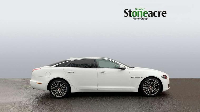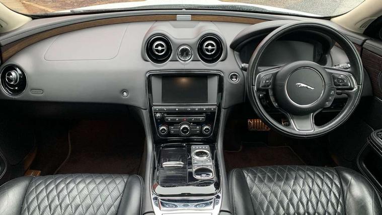8" touch screen, Analogue clock, Auto speed limiter, HDD Navigation System with touch-screen and traffic message channel, Incontrol pro service, InControl remote premium, Jaguar Voice front, LCD instrument dials, Multi function trip computer, Power boot opening and closing, Speed sensitive variable PAS, Adaptive dynamics, Diesel particulate filter, Self levelling rear air suspension, Bluetooth connectivity including audio streaming, DAB digital radio module, Digital TV, InControl app, InControl protect, Media interface, Meridian 1300W reference audio system with 26 premium speakers and conversation assist, Radio + MP3 compatible CD/DVD player with hard drive, Approach Illumination, Auto dimming rear view mirror, Auto high beam, Auto-dipping door mirrors in reverse gear, Automatic headlamp activation, Body coloured bumpers, Chrome radiator grille and surround, Chrome side power vents, Chrome window side surrounds, Electric adjustable door mirrors, Electric folding auto dimming door mirrors with memory, Electric front/rear windows/one touch operation, Electric panoramic sunroof with electric sunblind, Headlight washers, Heated door mirrors, Heated front windscreen and timer, Heated rear window with timer, Laminated front side windows, Laminated windscreen, LED tail lights, Rain sensor windscreen wipers, Solar control glass, Tinted rear windows, Twin exhaust tailpipes with chrome finishers, 18 way electrically adjustable front seats with massage function, driver/passenger memory and heated/cooled front/rear seats, Door puddle lights, Driver and passenger sunvisors with illuminated vanity mirrors, Driver's footrest, Electric sunblinds for rear side window, Footwell courtesy lights front and rear, Front centre armrest with power point and storage, Gear shift indicator, Heated steering wheel, Illuminated glovebox, Illuminated rear vanity mirrors, Interior mood lighting, ISOFIX on outer rear seats, Jaguar sense, JaguarDrive selector, Leather headlining, Multifunction steering wheel, Premium carpet mats, Reach/rake electric adjustable steering column + entry/exit tilt away, Rear centre armrest with 2 cupholders + storage, Rear coat hooks, Semi-aniline leather upholstery, Softgrain leather trim to upper facia/door top roll/door pannier/door armrest/centre console lid, Sports pedals, Steering wheel gearshift paddles, Twin front cupholders, Two 12V sockets in rear, Illumination pack - XJ, Premium rear seat pack - XJ, ABS/EBD, Active bonnet, Driver/Front Passenger airbags, Electronic parking brake, Front and rear curtain airbags, Front side airbags, Pedestrian contact sensing and deployable bonnet, Seatbelt warning, Three 3 point rear seatbelts, Trac DSC (Dynamic Stability Control with 3 setting levels), Tyre pressure monitoring system, WHIPS whiplash protection system - front, Alarm/immobiliser, Drive away door locking, Keyless entry, Keyless Start, Remote central locking + deadlocks, Contrast stitching, Alloy space saver spare wheel,