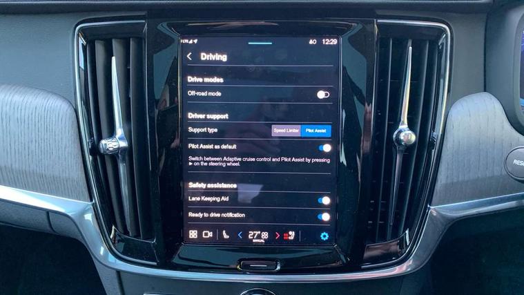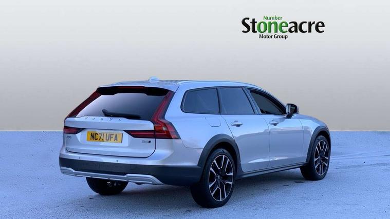 12.3" Progressive Driver Display, 9" centre console touch screen, Adjustable steering wheel force, Bluetooth Handsfree Phone Connection, Drive mode settings, E-call, Google automotive services - Enabled entertainment apps, navigation with google maps, voice recognition with google assistant, Lane keep assist with driver alert control, Oncoming Lane Mitigation, Power operated tailgate, Speed limiter, Speed sensitive steering, Volvo on call, Wireless/Inductive Mobile Phone Charging, 65mm additional ground clearance, 8 speed automatic transmission with start/stop + manual change functions, DAB Radio (Digital Audio Broadcasting), Steering wheel remote infotainment controls, Adaptive brake lights with high level LED brake lights, Auto dimming interior + exterior mirrors, Automatic headlamp levelling, Automatic LED Headlights + Active high beam incorporating daytime running lights, Charcoal lower grille, Charcoal wheel arch extensions, Colour coordinated auto folding and heated power door mirrors, Cross Country embossed rear bumper, Enlarged door mirrors, Front and rear power windows, High gloss black front grille with chrome details, High gloss black window trim, Home safe and approach lighting, Integrated roof rails in silver, Puddle lights in exterior door handles, Rain sensor with automatic windscreen wiper activation, Rear LED lights with sequential indicators, Rear side wing doors, Rear wiper, Roof antenna, Roof spoiler, Silver front and rear skid plate, Visible VIN plate, 3 seat bench in 2nd row, 3 spoke leather steering wheel with chrome trim, A-pillar parking ticket holder, Ambient door and instrument panel lighting, B Pillar ventilation, Blond headlining, Bright metal luggage threshold, Cargo divider with grocery bag holder, Center Console Cupholders and Storage, Driver's side lower dashboard storage compartment, Extended front seat cushions, Floor mats, Front 12V socket tunnel console and cargo area, Front centre armrest storage illumination, Front footwell and side step illumination, Front head restraints, Front/rear door pockets and front cupholder illumination, Front/rear reading lights, Heated front seats, Height/reach adjustable steering column, Illuminated front and rear tread plates, Illuminated glovebox, Illuminated luggage compartment, Illuminated tailgate, Illuminated vanity mirrors + ticket holder, Integrated sun curtains in rear doors, Isofix system on outer rear seats, Leather upholstery with unique stitching, Load cover, Load protection net, Off-black finish in steering wheel, Power driver seat with memory for seat and exterior mirrors, Power Folding Rear Seat Backrests and Headrests, Rear armrest with storage + cupholders, Rear footwell and side step illumination, Single passenger seat, Ski hatch, Underfloor cargo storage, Versatile split folding rear seat - 60/40, Driver assist pack - V90, 3x3 point rear seatbelts, Active bonnet, City safety with steering support with Pedestrian + cyclist + front collision warning with full auto brake and rear auto brake, Drivers knee airbag, Dual stage driver/passenger airbags, Front seats SIPS airbags, Hill descent control, Hill start assist, IC (Inflatable Curtains) - Full Length, Passenger airbag cut-off device, Power parking brake with auto hold function, Road sign information display, Run off Road Mitigation, Run off Road Protection, Seatbelt reminder and pretensioners for all seats, SIPS (Side Impact Protection System), Slippery road and hazard light alert, Stability and Traction Control with Spin control, Engine Drag Control and Corner Traction Control, Tyre pressure monitoring system, Vehicle deceleration control with Anti-lock Brake System, Electronic Brake Distribution and Emergency Brake Assist, Warning triangle and first aid kit, WHIPS whiplash protection system - front, Anti-theft alarm including immobiliser/volume sensor + level sensor, Care key with user defined top speed, Key integrated remote control central locking + fuel flap with deadlocking system and auto open/close power windows, Keyless drive with Keyless entry and start, Locking wheel nuts, Private locking for tailgate, Tailored Instrument Panel and Door Tops with Contrast Stitching,
