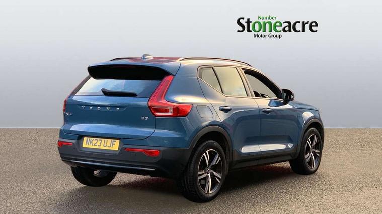 12.3" Progressive Driver Display, 360 degree surround view parking camera with side proximity sensors, 9" centre console portrait touch screen, Adjustable steering wheel force, Bluetooth hands free telephone kit, Cruise control, E-call, Front park assist, Google automatic services - Nav with google maps, apple carplay/android auto, voice recognition with google assistant, Hands free power tailgate, Lane keep assist with driver alert control, Oncoming Lane Mitigation, Rear park assist, Speed limiter, Speed sensitive steering, Wireless/Inductive Mobile Phone Charging, Dynamic chassis, DAB Digital radio, High performance sound, 8 speakers/250W, front USB and 2 rear type C USB, Steering wheel mounted remote controls, Adaptive brake lights with high level LED brake lights, Auto dimming feature for exterior door mirrors, Auto dimming interior mirror, Automatic headlamp levelling, Automatic LED Headlights + Active high beam incorporating daytime running lights, Front aluminium tread plates, Front and rear electric windows, High gloss black front and rear skid plate, High gloss black mesh front grille with high gloss black surround, High gloss black window trim, Home safe and approach lighting, Integrated roof rails in high gloss black, LED front fog lights, Puddle lights, Rain sensor with automatic windscreen wiper activation, Rear side wing doors, Rear wiper, Roof antenna, Roof spoiler, Visible VIN plate, 12V socket in front tunnel console and luggage compartment, 2-Zone electronic climate control with CleanZone air quality system and pollen filter, 3 seat bench in 2nd row, 3 Spoke tailored steering wheel with chrome trim, 60/40 versatile split folding rear seat, A-pillar parking ticket holder, Centre console cupholders and storage, Flexible load floor and grocery bag holder, Floor mats, Front door pocket, front cupholder, ambient front door, rear reading, rear courtesy, instrument panel and tailgate lighting, Front footwell illumination, Front headrests, Front reading light and theatre lighting, Front seat cushion extensions, Front tunnel pocket, Glovebox bag hook, Heated front seats, Height adjustable passenger seat, Height/reach adjustable steering column, High gloss centre tunnel deco, Illuminated glovebox, Illuminated luggage compartment, Illuminated vanity mirrors, Integrated waste bin, Isofix attachments on outer rear seats, Load protection net, Multi directional lumbar support, Power driver seat with memory + exterior mirrors memory, Rear armrest / integral cup holders / storage tray, Rear headrests, Single front passenger seat, Underfloor cargo storage, Climate pack without heated front seats - XC40, 3x3 point rear seatbelts, City safety with steering support with Pedestrian + cyclist + front collision warning with full auto brake and rear auto brake, Drivers knee airbag, Dual stage driver/passenger airbags, Electronic parking brake with auto hold, First aid kit, Front and outer rear seatbelt reminder and pretensioners, Front seats SIPS airbags, Hill descent control, Hill start assist, Inflatable curtain, Passenger airbag cut-off device, Power child locks on rear doors, Road sign information display, Run off Road Mitigation, Run off Road Protection, SIPS (Side Impact Protection System), Slippery road and hazard light alert, Stability and Traction Control with Spin control, Engine Drag Control and Corner Traction Control, Tyre pressure monitoring system, Vehicle deceleration control with Anti-lock Brake System, Electronic Brake Distribution and Emergency Brake Assist, Warning triangle, WHIPS whiplash protection system - front, Anti-theft alarm including immobiliser/volume sensor + level sensor, Key integrated remote control central locking + fuel flap with deadlocking system and auto open/close power windows, Keyless drive includes keyless entry and keyless start, Locking wheel nuts,