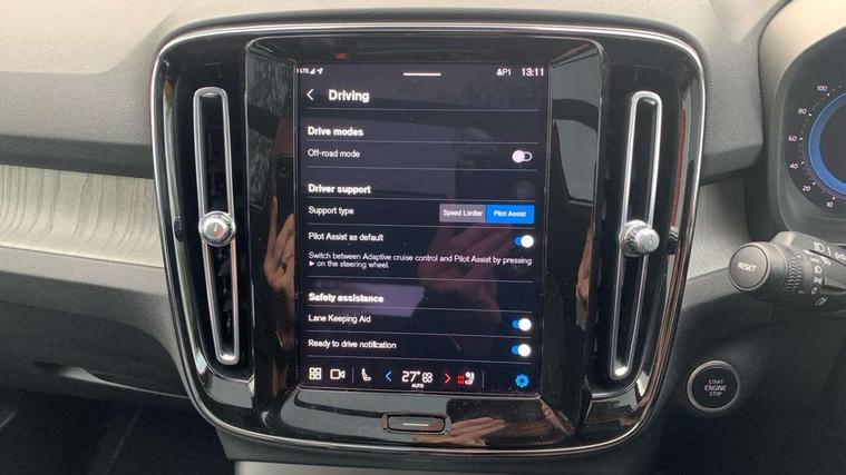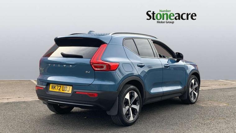 12.3" Progressive Driver Display, 360 degree surround view parking camera with side proximity sensors, 9" centre console portrait touch screen, Adjustable steering wheel force, Bluetooth hands free telephone kit, E-call, Front park assist, Google automatic services - Nav with google maps, apple carplay/android auto, voice recognition with google assistant, Hands free power tailgate, Lane keep assist with driver alert control, Oncoming Lane Mitigation, Rear park assist, Speed limiter, Speed sensitive steering, Wireless/Inductive Mobile Phone Charging, Dynamic chassis, DAB Digital radio, Premium Sound by Harman Kardon, Dolby Pro Logic II Surround Sound, Dirac Unison, 12 speakers/600W and subwoofer, Steering wheel mounted remote controls, Active bending pixel LED headlights with adaptive shadow technology, Active high beam incorporating daytime running lights, Adaptive brake lights with high level LED brake lights, Auto dimming interior mirror, Automatic headlamp levelling, Dark tinted windows for rear door side windows and cargo compartment, Front aluminium tread plates, Front and rear electric windows, Headlight cleaning system, High gloss black front and rear skid plate, High gloss black mesh front grille with high gloss black surround, High gloss black window trim, Home safe and approach lighting, Integrated roof rails in high gloss black, LED front fog lights, Power glass tilt and slide panoramic sunroof with sun curtain, Puddle lights, Rain sensor with automatic windscreen wiper activation, Rear side wing doors, Rear wiper, Roof antenna, Roof spoiler, Visible VIN plate, 12V socket in front tunnel console and luggage compartment, 2-Zone electronic climate control with CleanZone air quality system and pollen filter, 3 seat bench in 2nd row, 3 Spoke tailored steering wheel with chrome trim, 60/40 versatile split folding rear seat, A-pillar parking ticket holder, Ambient front door and instrumental panel lighting, Centre console cupholders and storage, Flexible load floor and grocery bag holder, Floor mats, Front door pocket and front cupholder illumination, Front footwell illumination, Front headrests, Front reading light and theatre lighting, Front seat cushion extensions, Front tunnel pocket, Glovebox bag hook, Heated front seats, Height adjustable passenger seat, Height/reach adjustable steering column, High gloss centre tunnel deco, Illuminated glovebox, Illuminated luggage compartment, Illuminated tailgate, Illuminated vanity mirrors, Integrated waste bin, Isofix attachments on outer rear seats, Load protection net, Multi directional lumbar support, Power driver seat with memory + exterior mirrors memory, Power folding rear headrests, Power passenger seat, Rear armrest / integral cup holders / storage tray, Rear reading and courtesy lights, Single front passenger seat, Underfloor cargo storage, Climate pack without heated front seats - XC40, Driver assist pack - XC40, 3x3 point rear seatbelts, City safety with steering support with Pedestrian + cyclist + front collision warning with full auto brake and rear auto brake, Drivers knee airbag, Dual stage driver/passenger airbags, Electronic parking brake with auto hold, First aid kit, Front and outer rear seatbelt reminder and pretensioners, Front seats SIPS airbags, Hill descent control, Hill start assist, Inflatable curtain, Passenger airbag cut-off device, Power child locks on rear doors, Road sign information display, Run off Road Mitigation, Run off Road Protection, SIPS (Side Impact Protection System), Slippery road and hazard light alert, Stability and Traction Control with Spin control, Engine Drag Control and Corner Traction Control, Tyre pressure monitoring system, Vehicle deceleration control with Anti-lock Brake System, Electronic Brake Distribution and Emergency Brake Assist, Warning triangle, WHIPS whiplash protection system - front, Anti-theft alarm including immobiliser/volume sensor + level sensor, Key integrated remote control central locking + fuel flap with deadlocking system and auto open/close power windows, Keyless drive includes keyless entry and keyless start, Locking wheel nuts,
