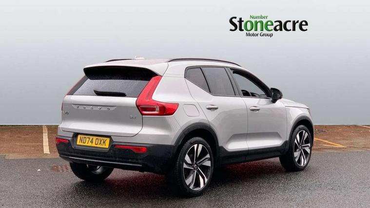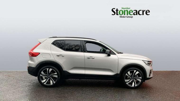 12.3" Progressive Driver Display, 360 degree surround view parking camera with side proximity sensors, 9" centre console portrait touch screen, Adjustable steering wheel force, Apple carplay (wired), Bluetooth handsfree system, Driver alert control, Driver assistance (pilot assist and adaptive cruise control), Driver awareness - Blind spot information system with steer assist, cross traffic alert with autobrake and rear collision warning and mitigation, E-call, Google automotive services - Enabled entertainment apps, navigation with google maps, voice recognition with google assistant, Hands free power tailgate, Intelligent speed assistance, Lane keeping aid, Oncoming Lane Mitigation, Speed sensitive steering, Volvo cars services with app - Driving journal, emergency and breakdown call, engine remote start, remote door locking/unlocking and vehicle dashboard, Wireless/Inductive Mobile Phone Charging, Automatic transmission with start/stop and manual change functions, Dynamic chassis, DAB Digital radio, Premium Sound by Harman Kardon, Dolby Pro Logic II Surround Sound, Dirac Unison, 12 speakers/600W and subwoofer, Steering wheel mounted remote controls, Active bending pixel LED headlights with adaptive shadow technology, Active high beam incorporating daytime running lights, Adaptive brake lights with high level LED brake lights, Auto dimming feature for exterior door mirrors, Auto dimming interior mirror, Automatic headlamp levelling, Dark tinted windows - rear side windows and rear screen, Front aluminium tread plates, Front and rear electric windows, Headlight cleaning system, High gloss black front and rear skid plate, High gloss black front bumper deco, High gloss black mesh front grille with high gloss black surround, High gloss black window trim, Home safe and approach lighting, Integrated roof rails in high gloss black, LED front fog lights with cornering function, Power glass tilt and slide panoramic sunroof with sun curtain, Puddle lights, Rain sensor with automatic windscreen wiper activation, Rear side wing doors, Rear wiper, Roof antenna, Roof spoiler, Visible VIN plate, 12V socket in front tunnel console and luggage compartment, 2-Zone electronic climate control with CleanZone air quality system and pollen filter, 3 seat bench in 2nd row, 3 Spoke tailored steering wheel with chrome trim, 60/40 versatile split folding rear seat, Centre console cupholders and storage, Flexible load floor and grocery bag holder, Floor mats, Front cabin courtesy lights, Front door pocket, front cupholder, ambient front door, rear reading, rear courtesy, instrument panel and tailgate lighting, Front footwell illumination, Front headrests, Front reading lights, Front seat cushion extensions, Front side step illumination (under door), Glovebox bag hook, Heated front seats, Height/reach adjustable steering column, High gloss centre tunnel deco, Illuminated glovebox, Illuminated luggage compartment, Illuminated vanity mirrors + ticket holder, Integrated waste bin, Isofix attachments on outer rear seats, Load cover, Load protection net, Multi directional lumbar support for driver and passenger seat, Power driver seat with memory + exterior mirrors memory, Power folding rear headrests, Power passenger seat, Rear armrest with cupholders, Single front passenger seat, Underfloor cargo storage, Climate pack without heated front seats - XC40, 3x3 point rear seatbelts, City safety with steering support with Pedestrian + cyclist + front collision warning with full auto brake and rear auto brake, Driver and passenger airbags, Drivers knee airbag, Electronic parking brake with auto hold, First aid kit, Front and outer rear seatbelt reminder and pretensioners, Front seats SIPS airbags, Hill descent control, Hill start assist, Inflatable curtain, Passenger airbag cut-off device, Power child locks on rear doors, Road sign information display, Run off Road Protection, SIPS (Side Impact Protection System), Slippery road and hazard light alert, Stability and Traction Control with Spin control, Engine Drag Control and Corner Traction Control, Tyre pressure monitoring system, Vehicle deceleration control with Anti-lock Brake System, Electronic Brake Distribution and Emergency Brake Assist, Warning triangle, WHIPS whiplash protection system - front, 2 x Key integrated remote control central locking including with deadlocking system and auto open/close windows and sunroof, Anti-theft alarm including immobiliser/volume sensor + level sensor, Keyless drive includes keyless entry and keyless start, Locking wheel nuts,
